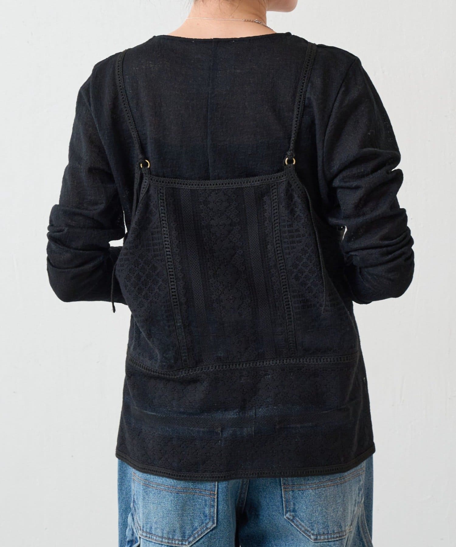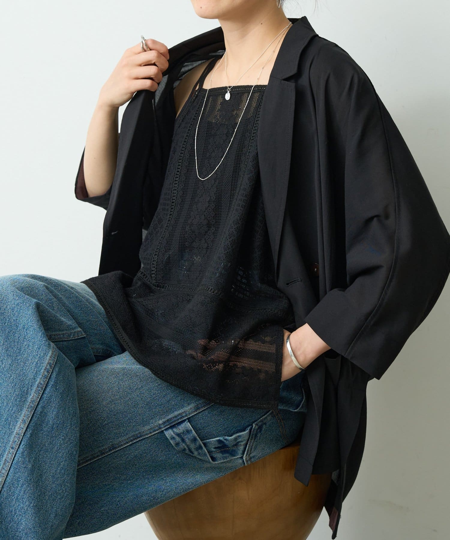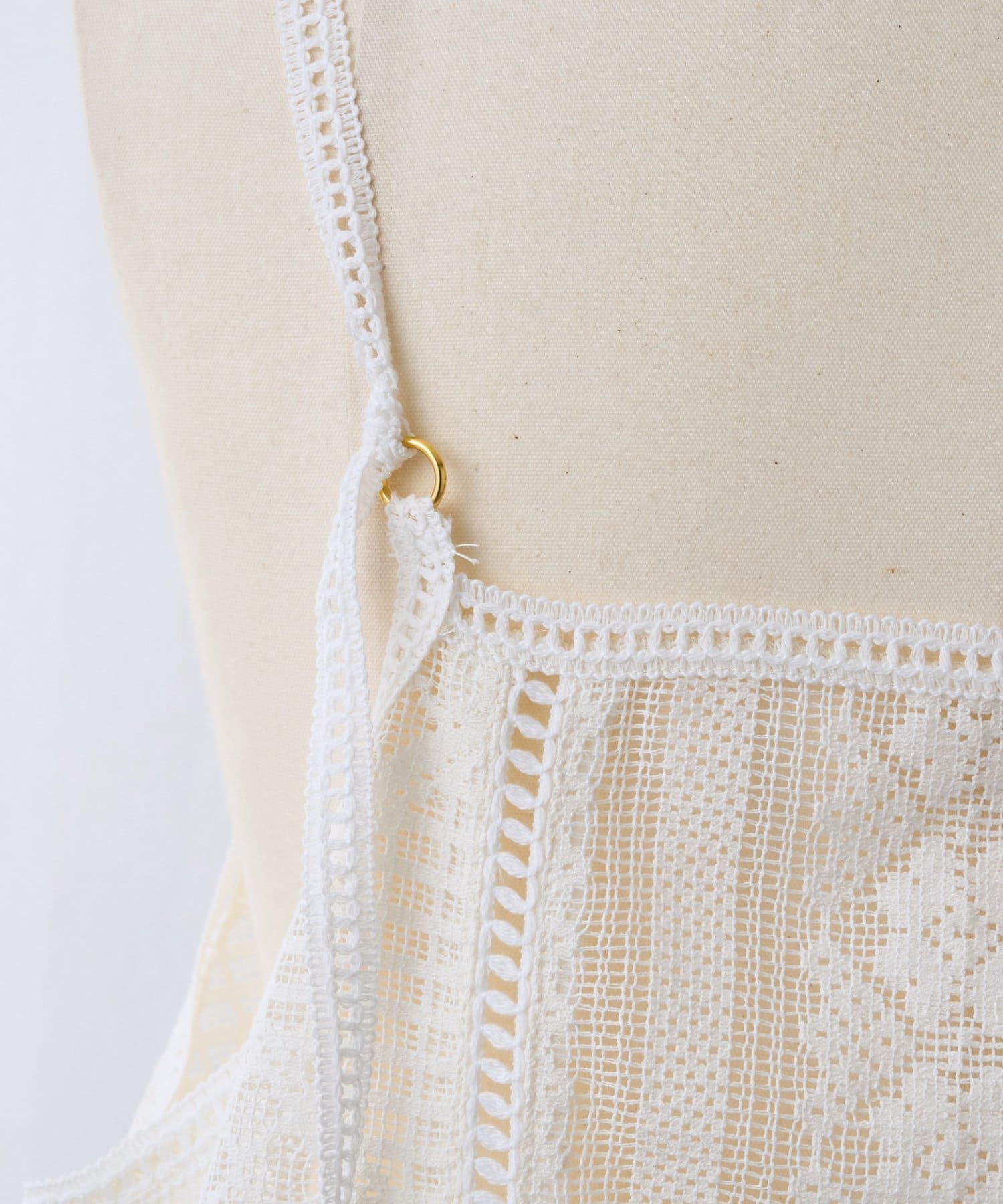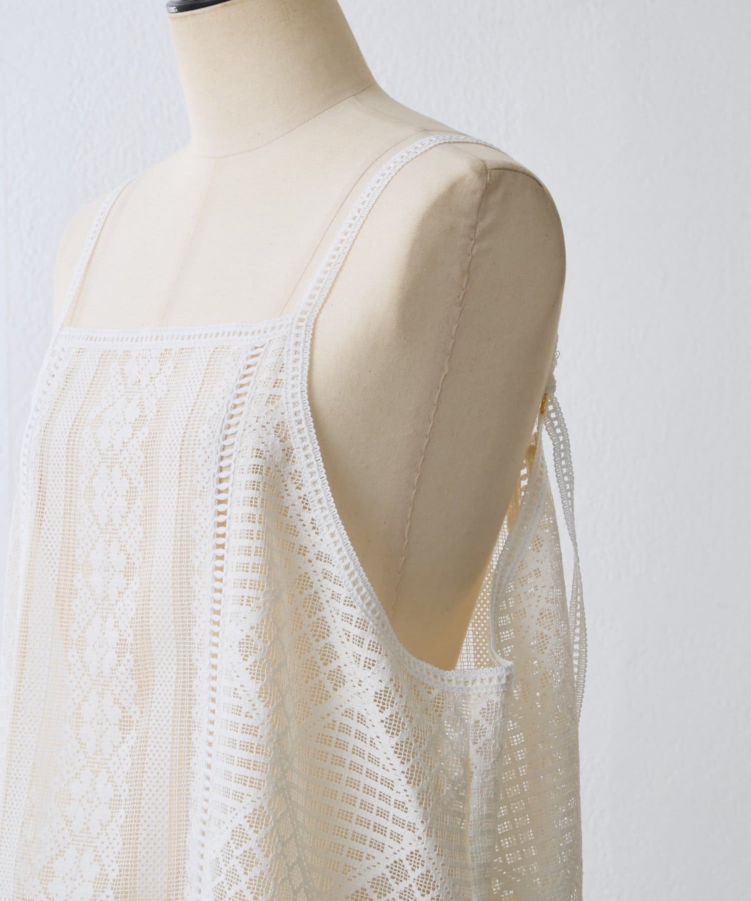 様々な模様のレースを組み合わせたパッチワークデザインが目を惹くキャミソール。