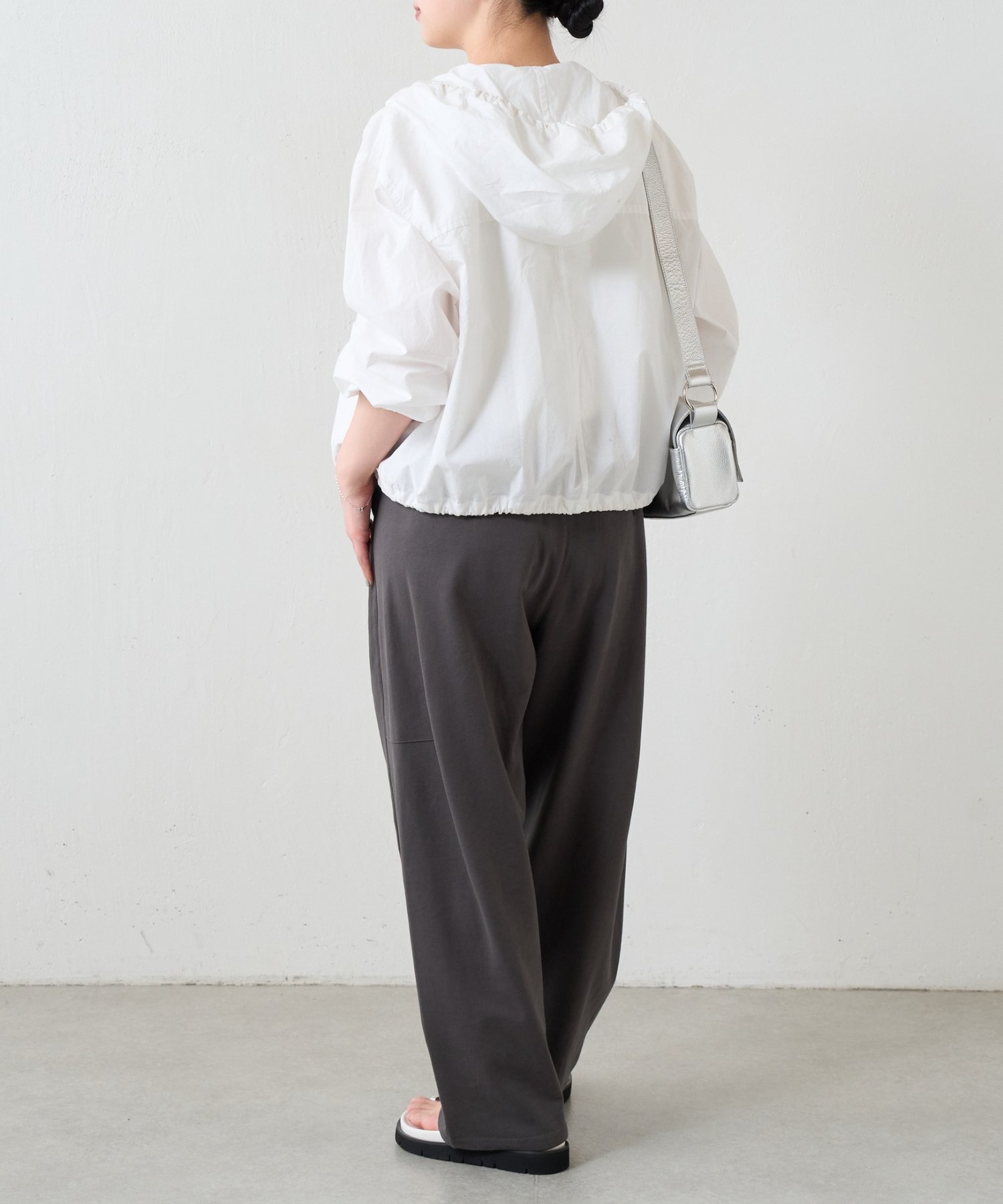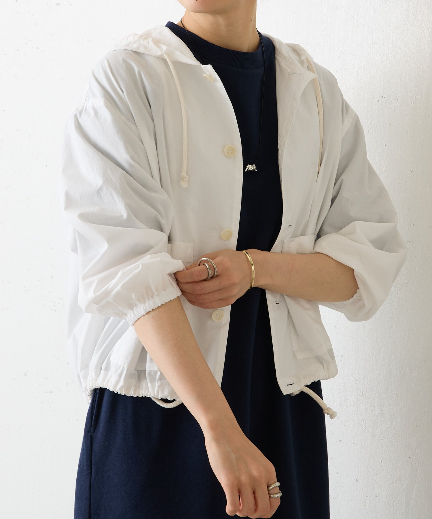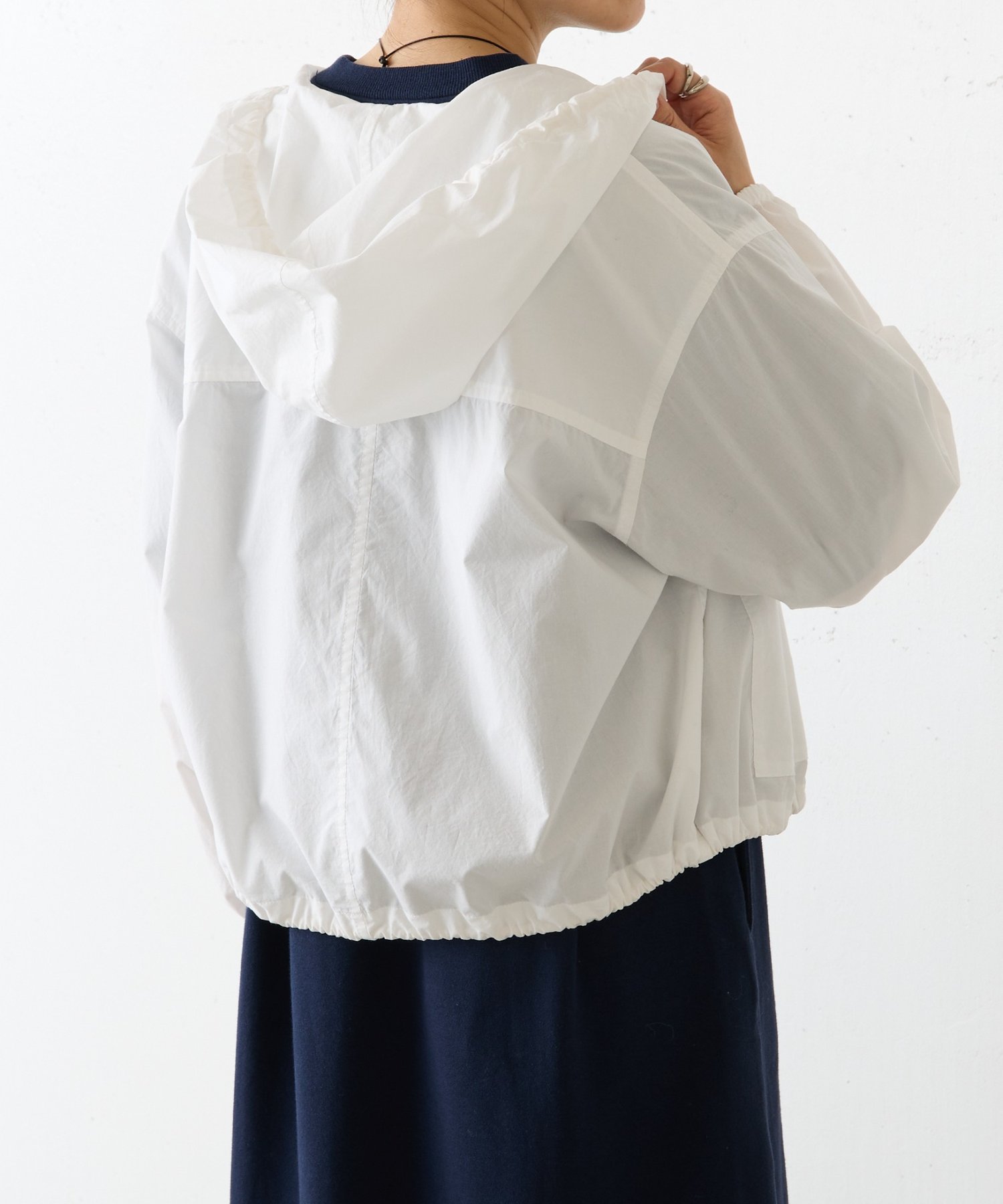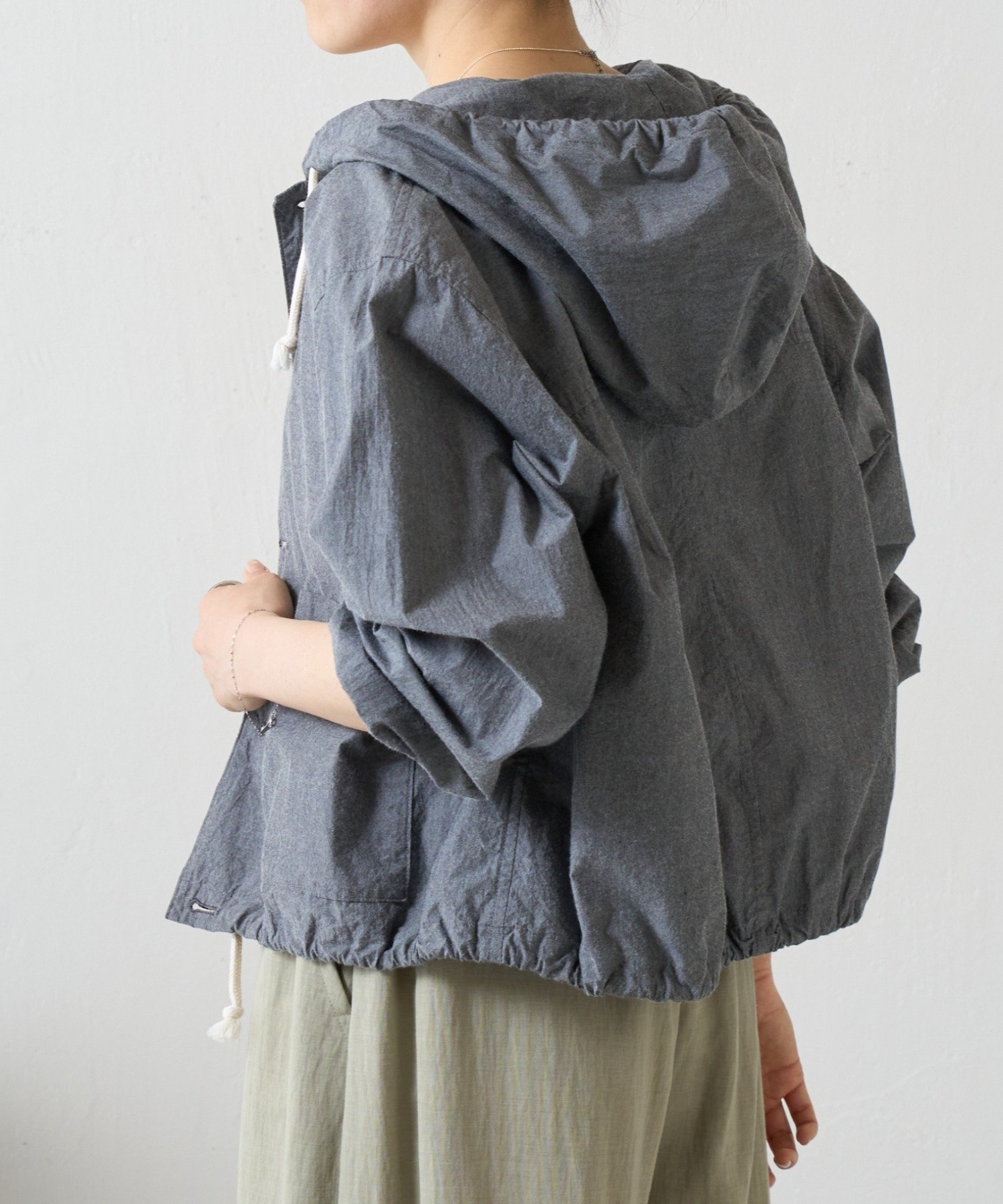 裾にはドローストリングを通し、絞り具合でシルエットの変化を楽しめるデザイン。