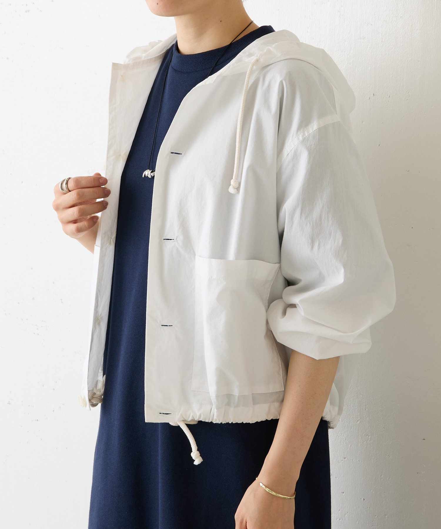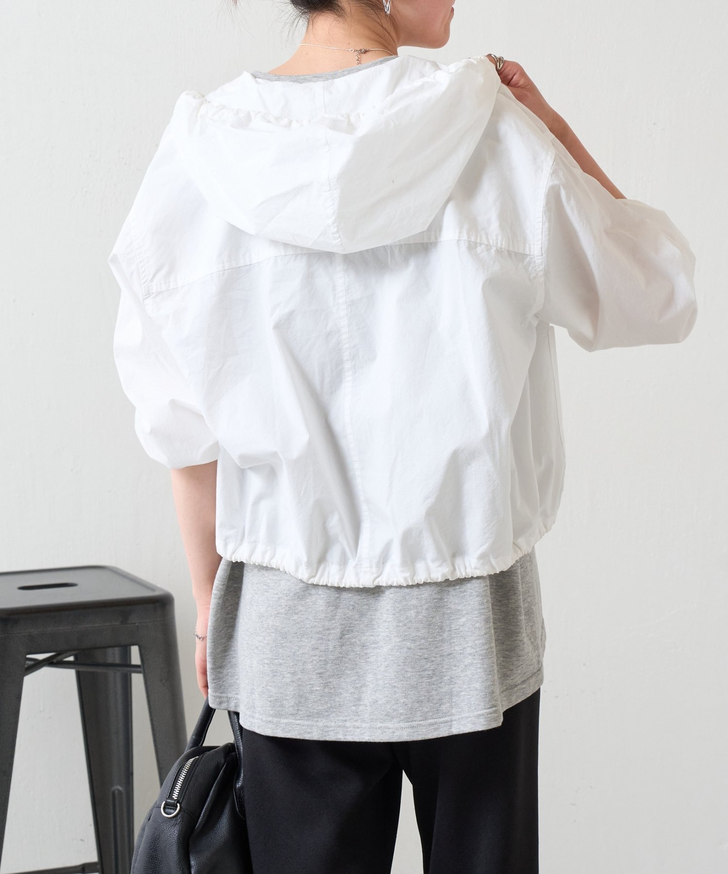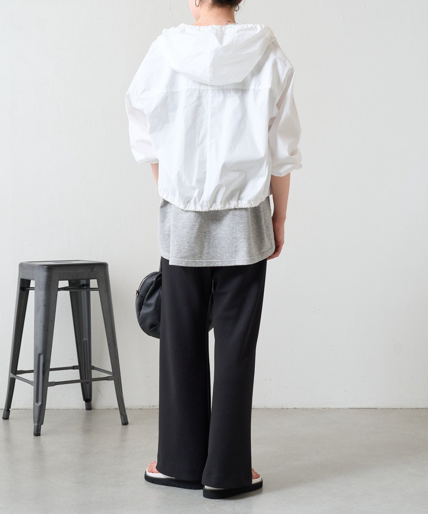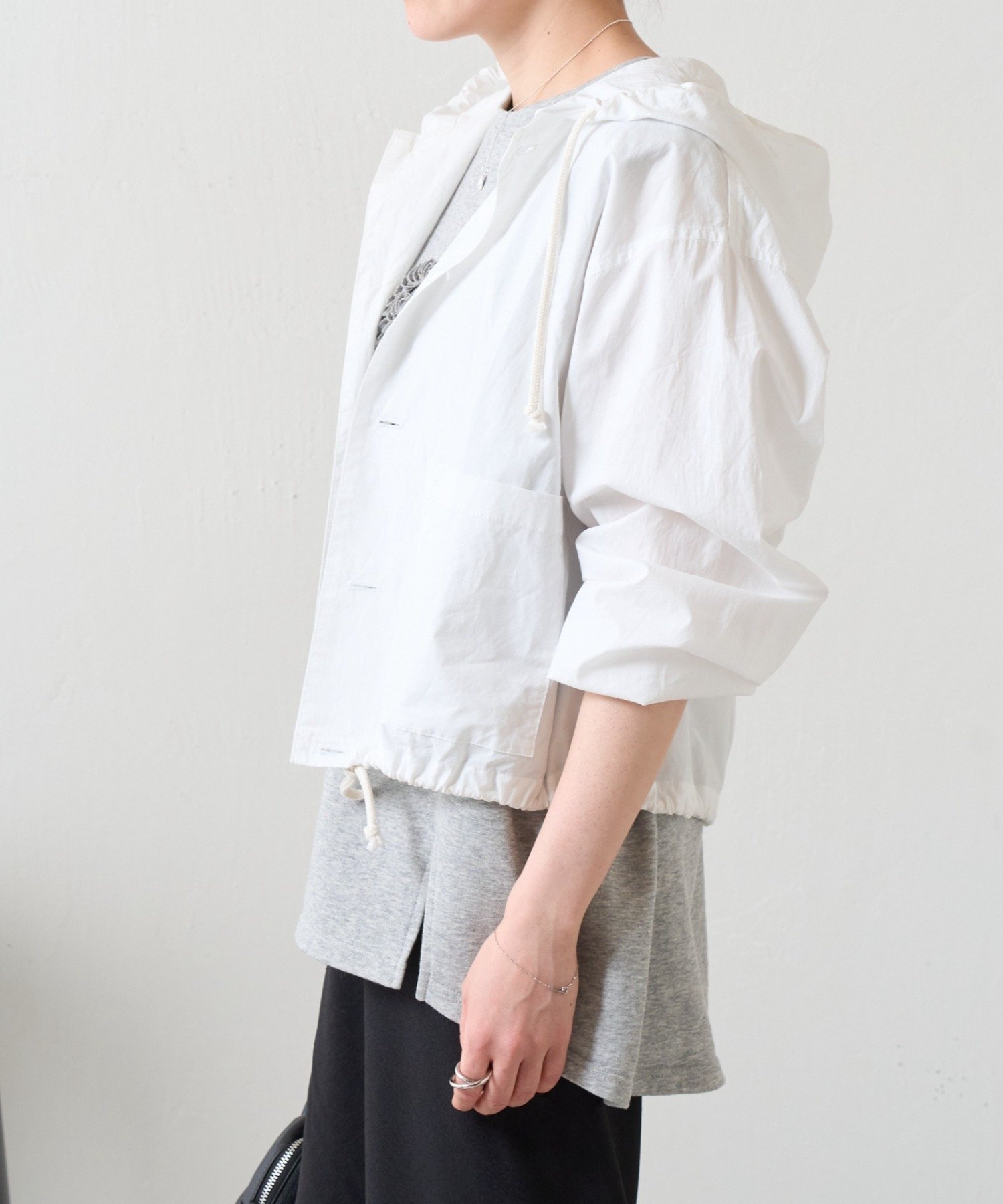 裾にはドローストリングを通し、絞り具合でシルエットの変化を楽しめるデザイン。