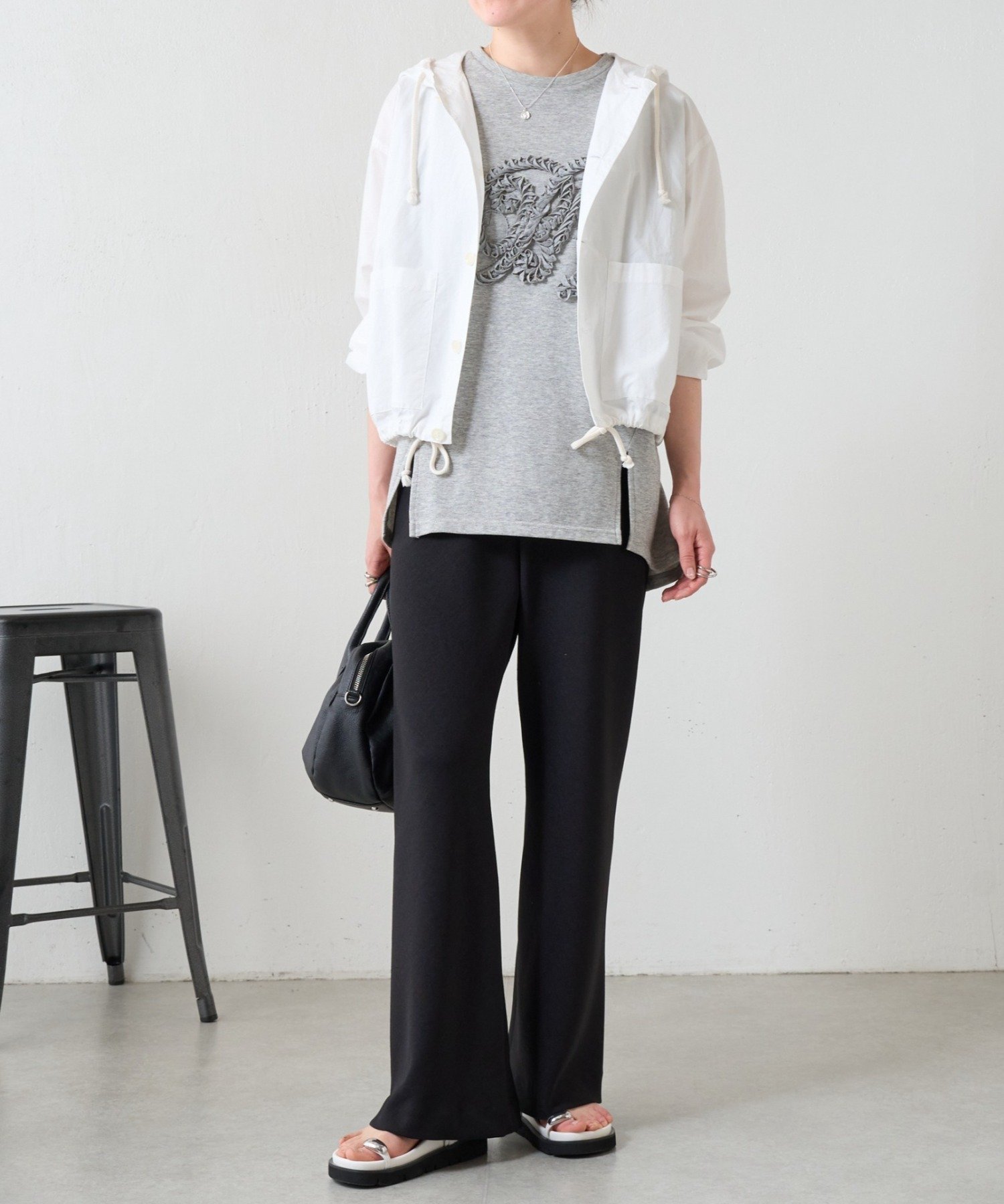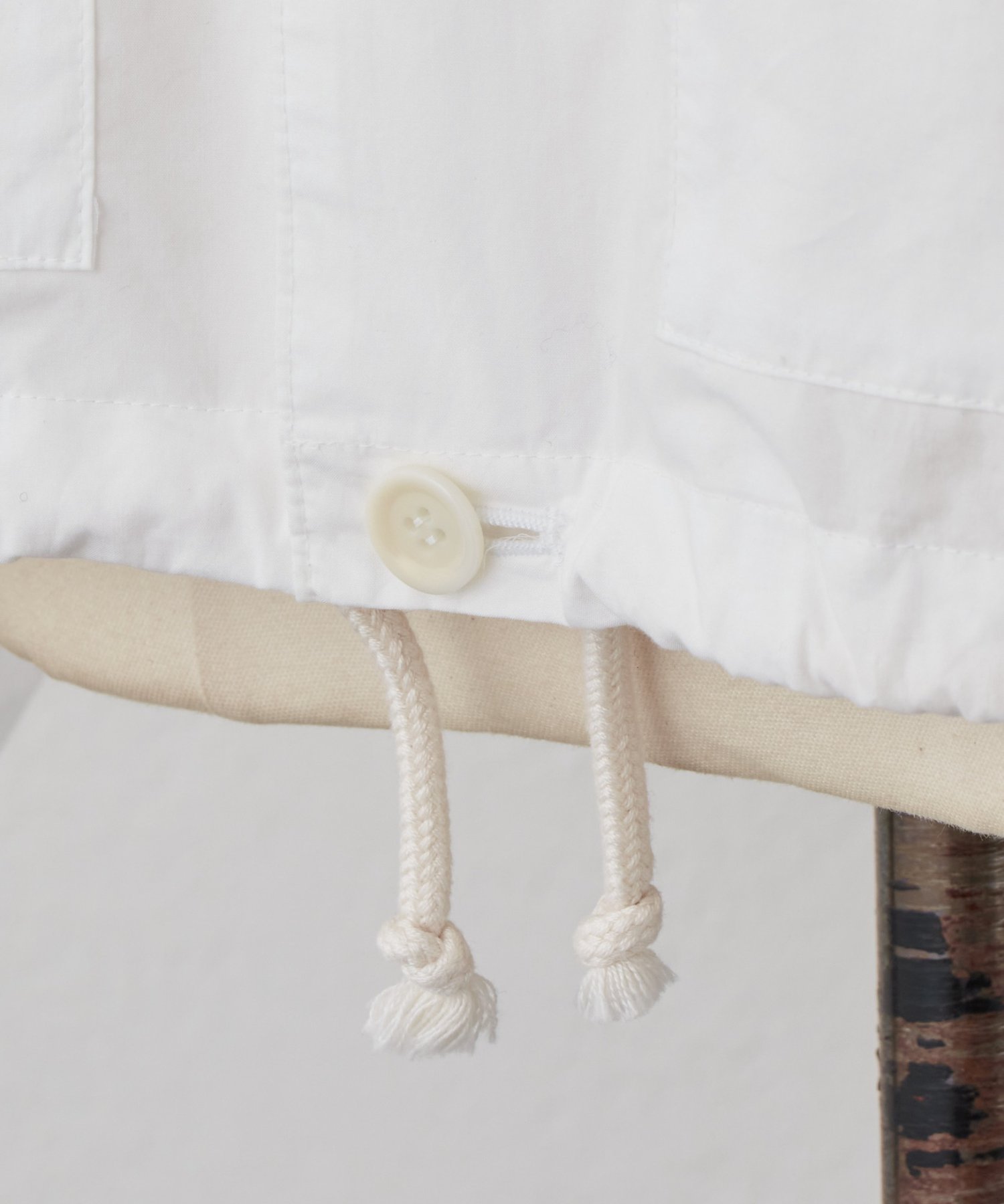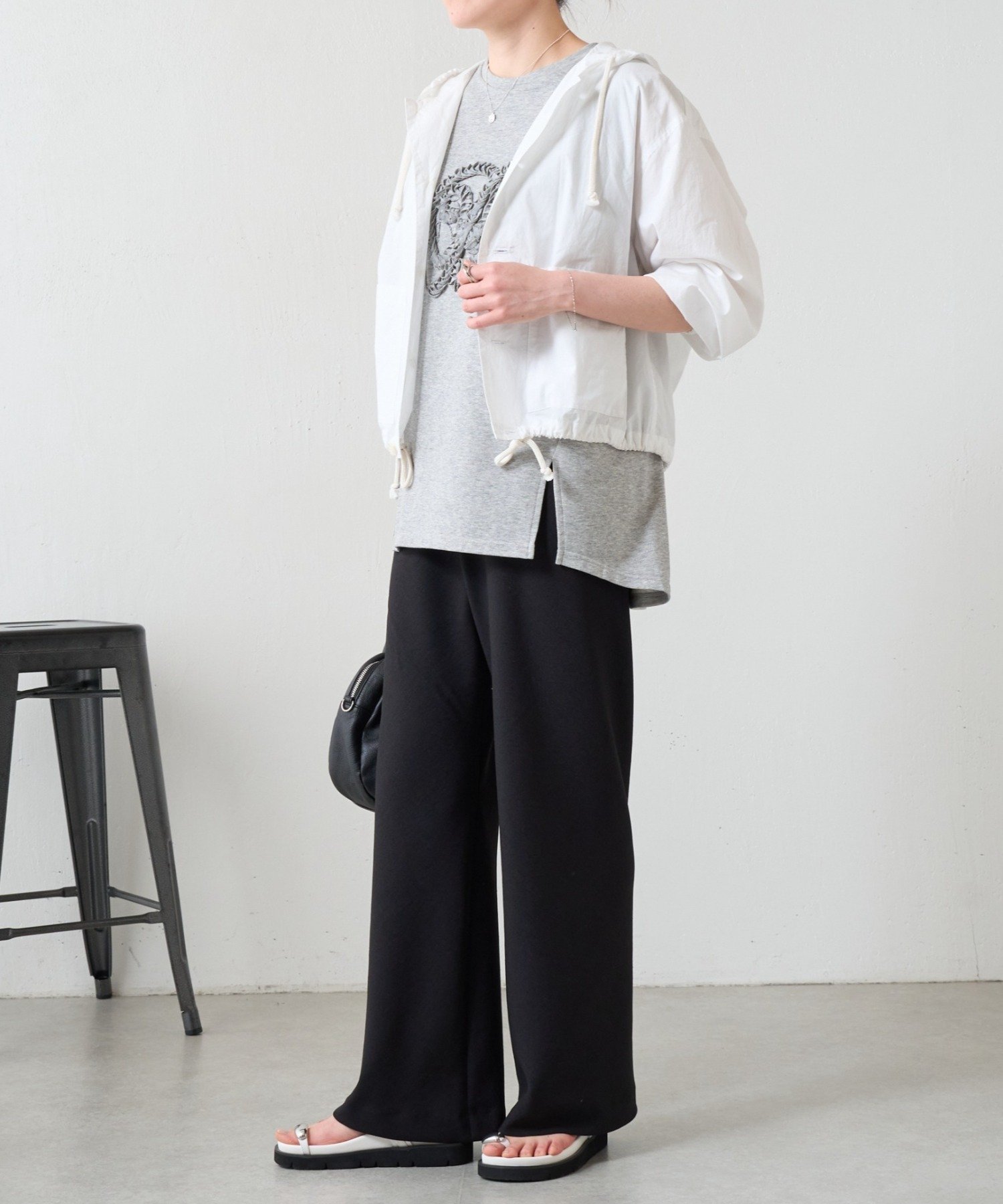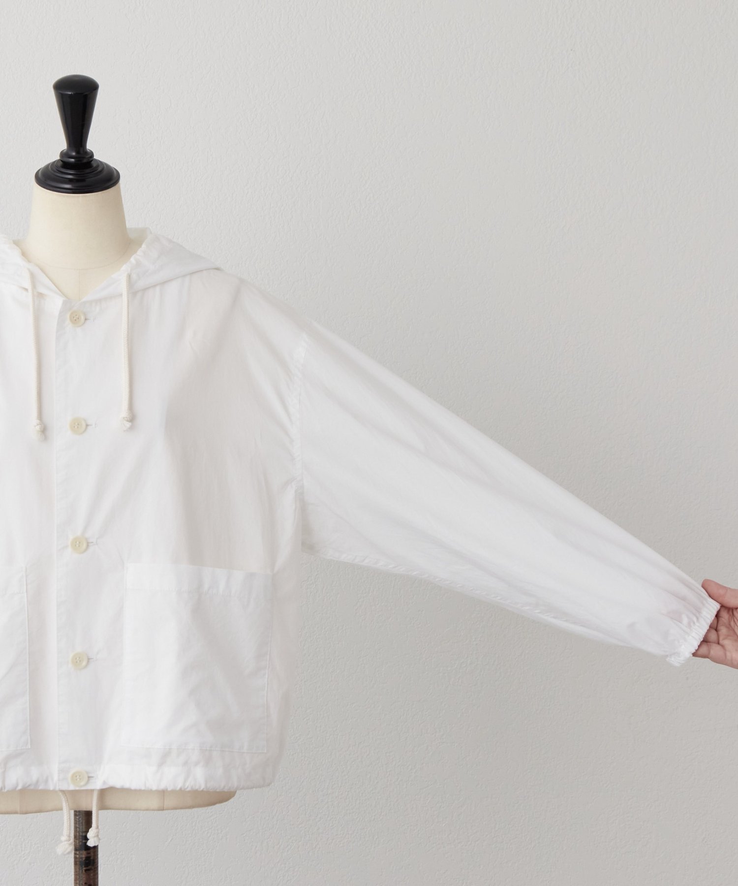 裾にはドローストリングを通し、絞り具合でシルエットの変化を楽しめるデザイン。