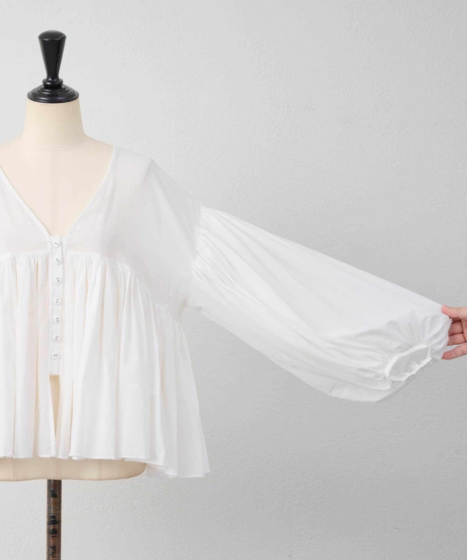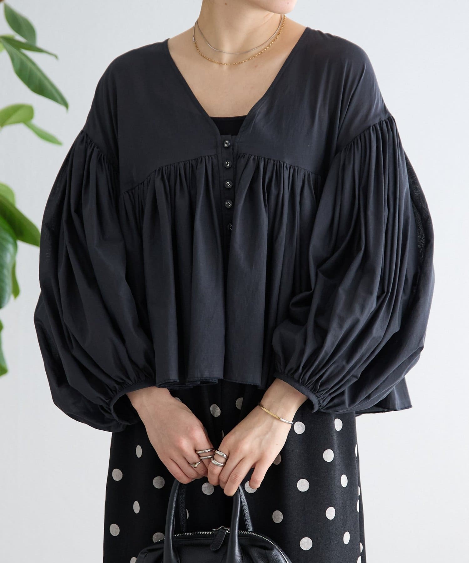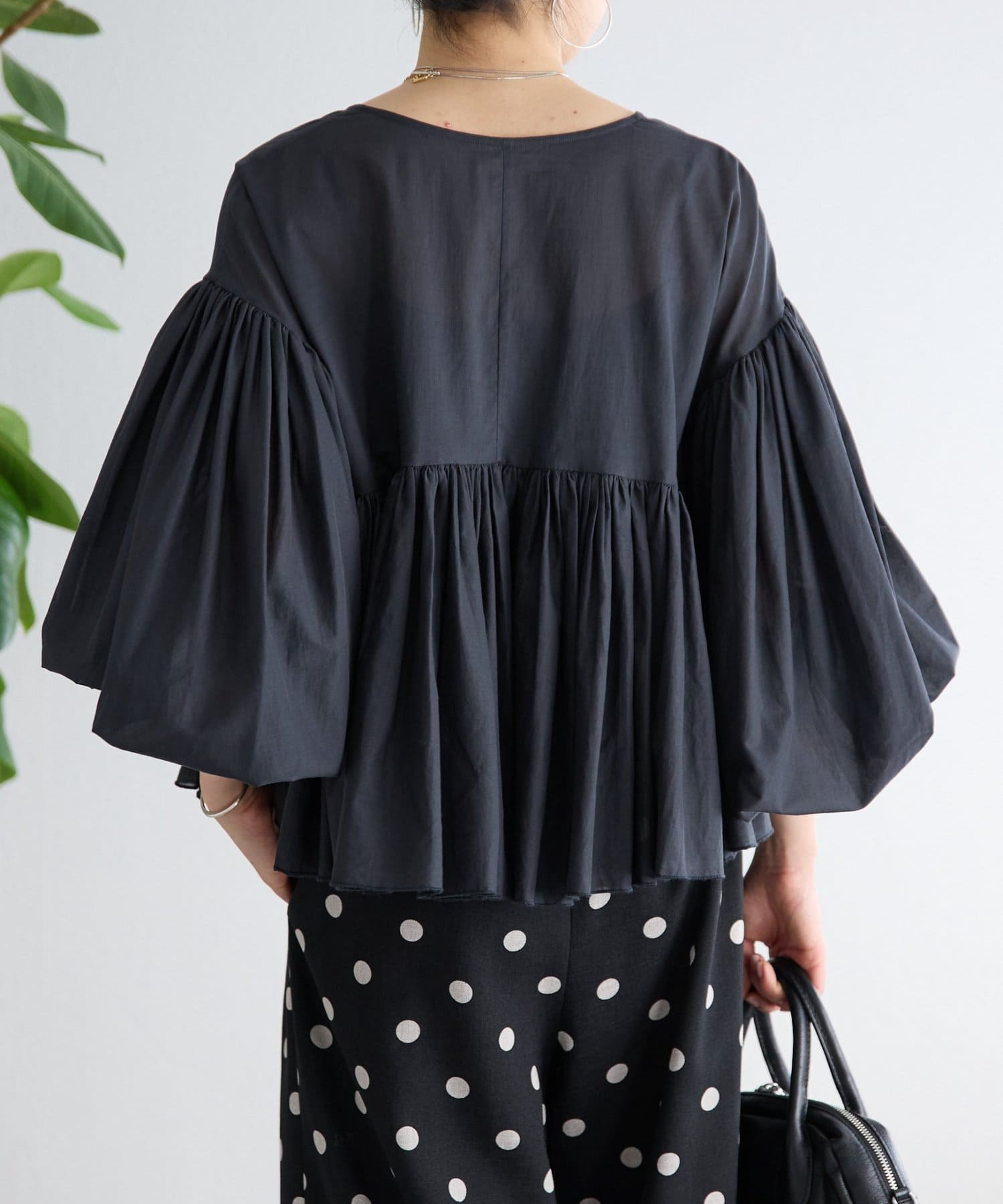 袖にもギャザーを施し、袖をまくることでバルーンスリーブのようなボリューム感を楽しめます。
