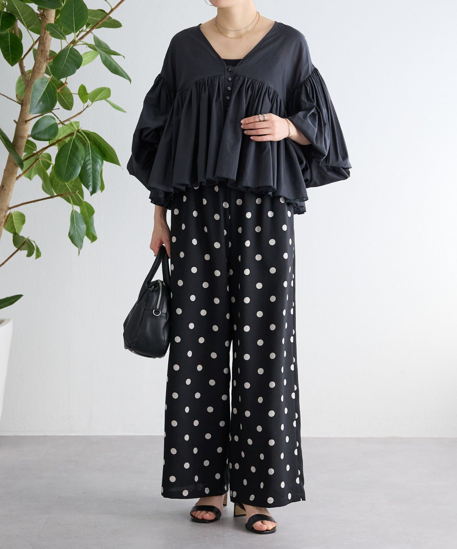 ギャザーをたっぷり入れつつも、肩幅が広く見えにくいのがポイントです。