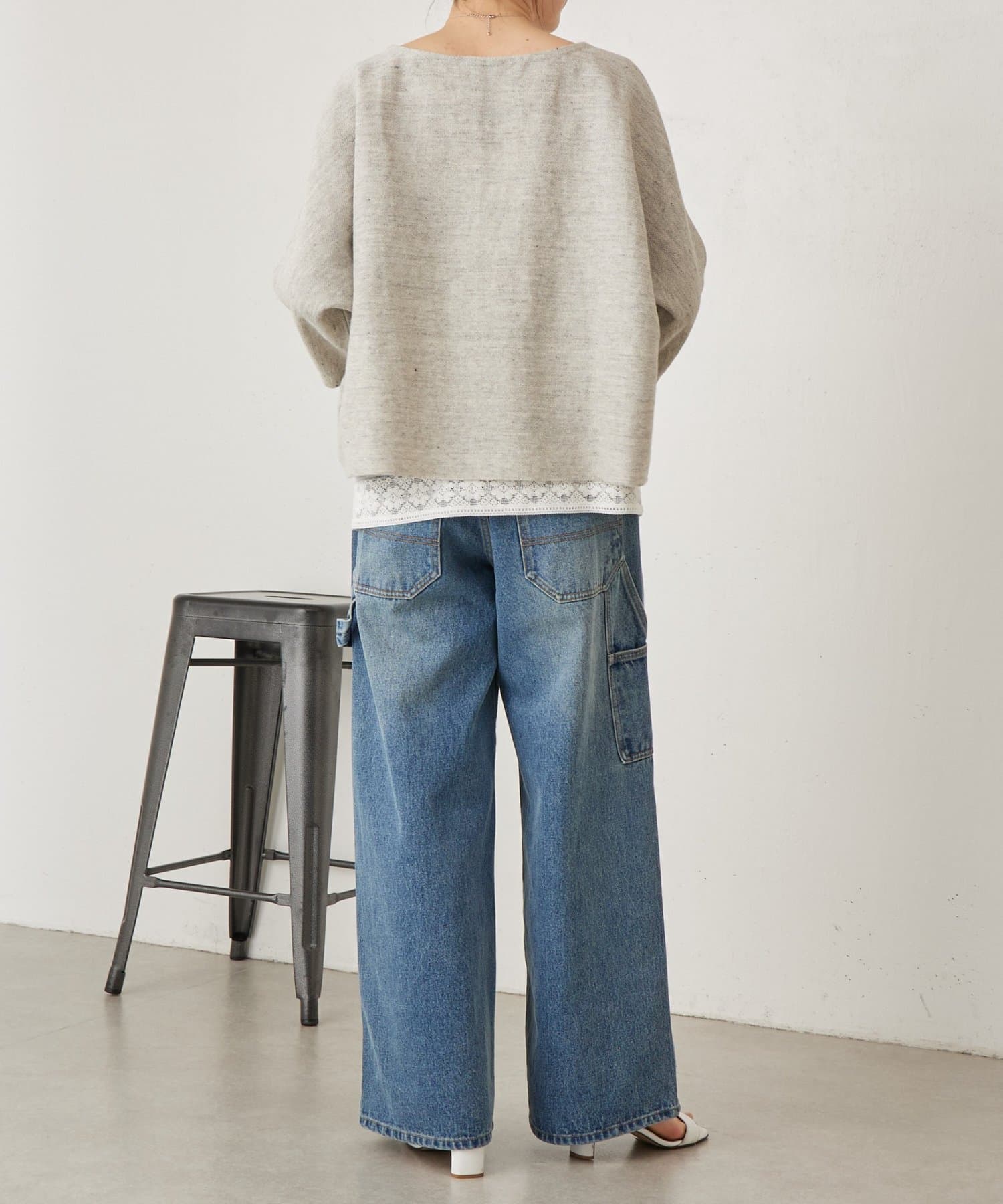 ゆったりとした身幅と落ち感のあるラインで、体のラインを拾いにくいのもポイント。