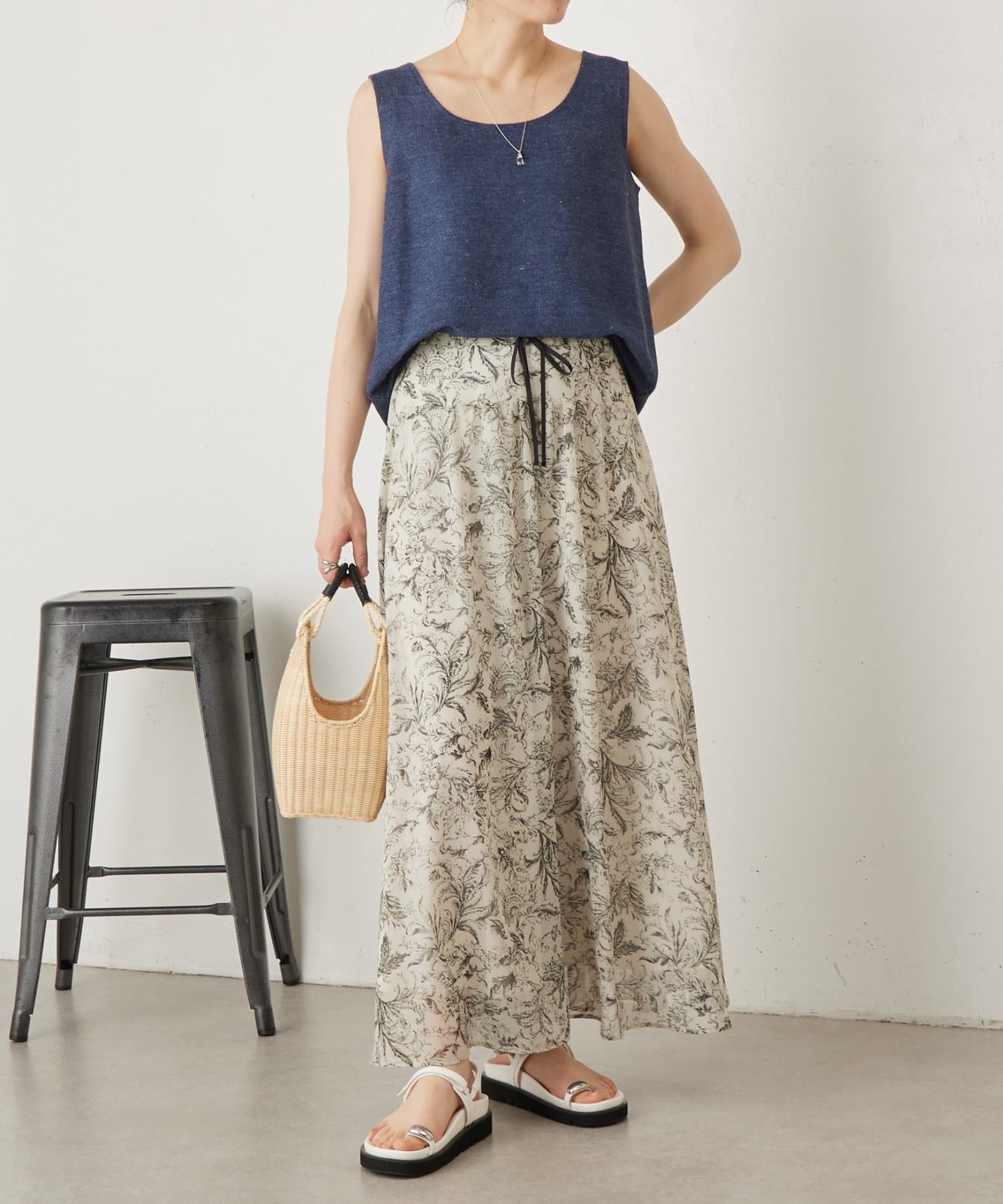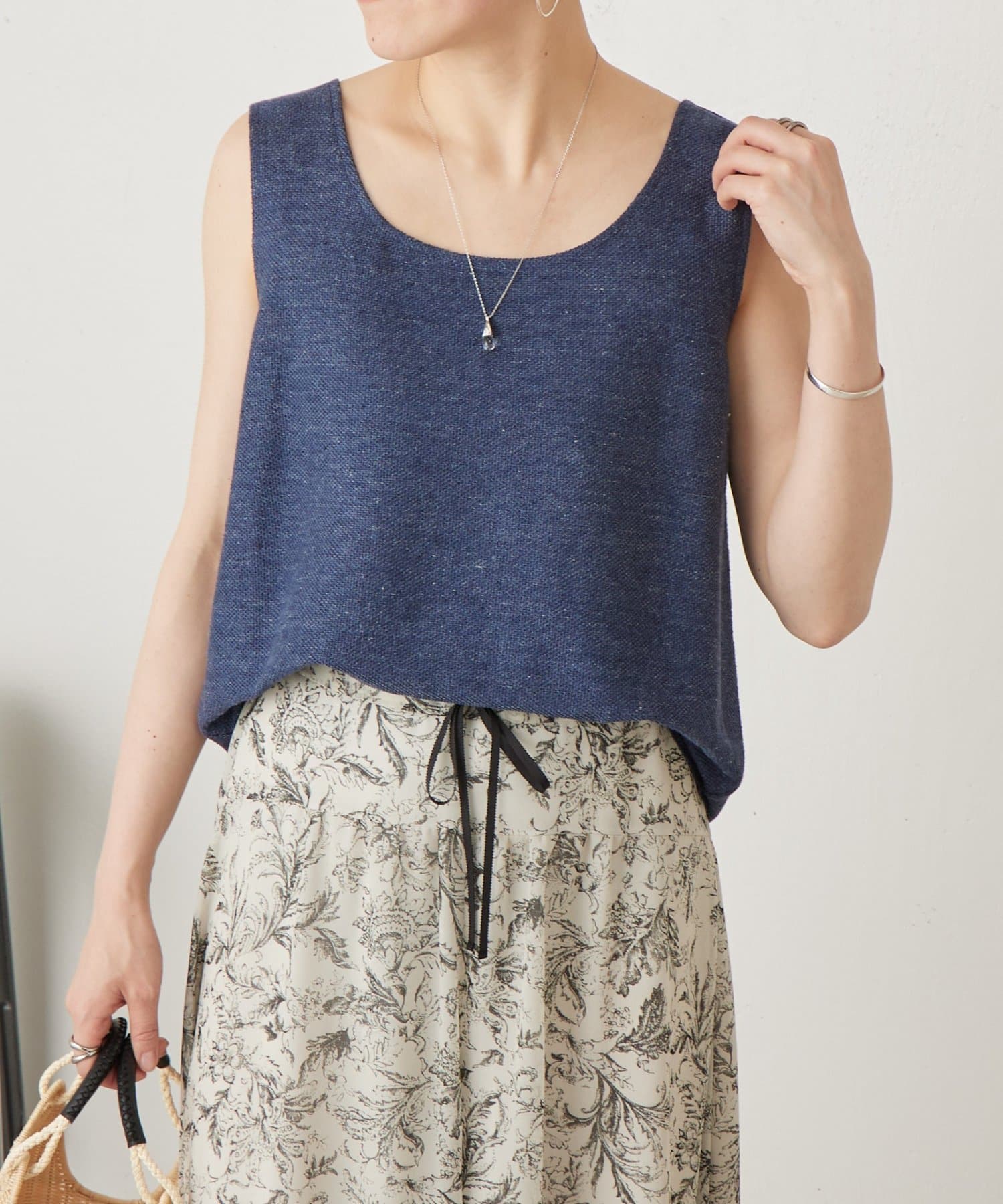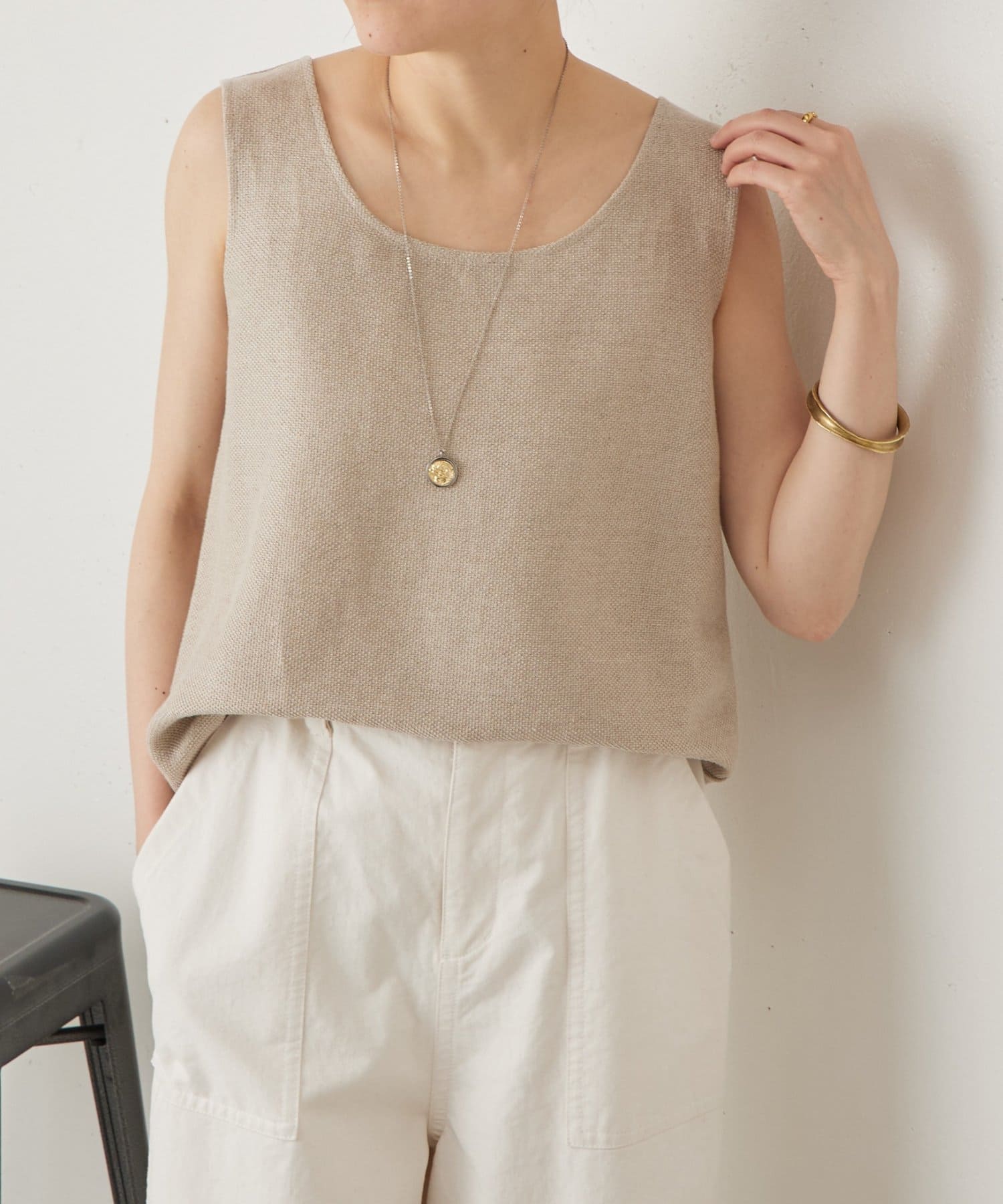 リネン100%のシンプルで上質感のあるタンクトップ。