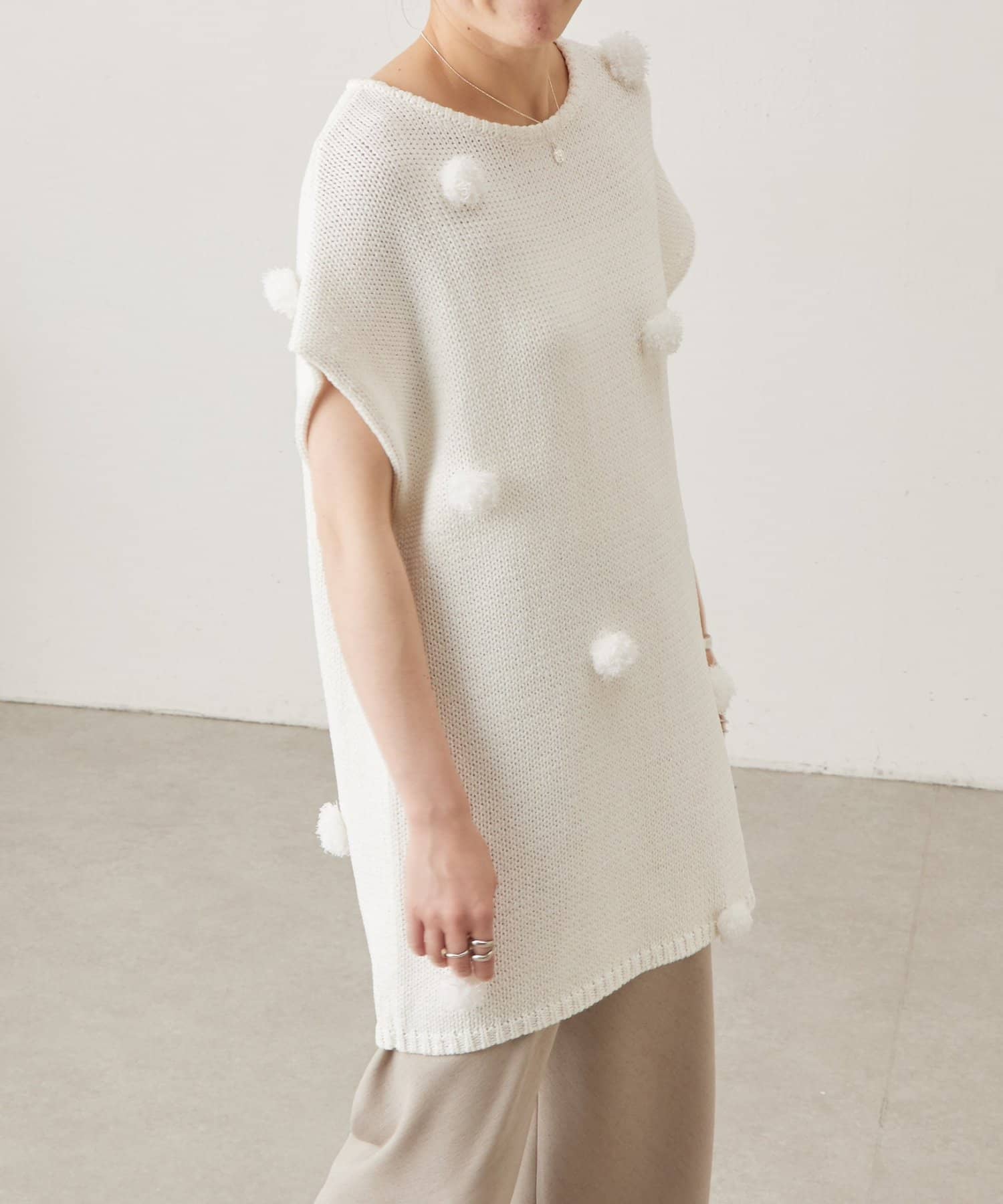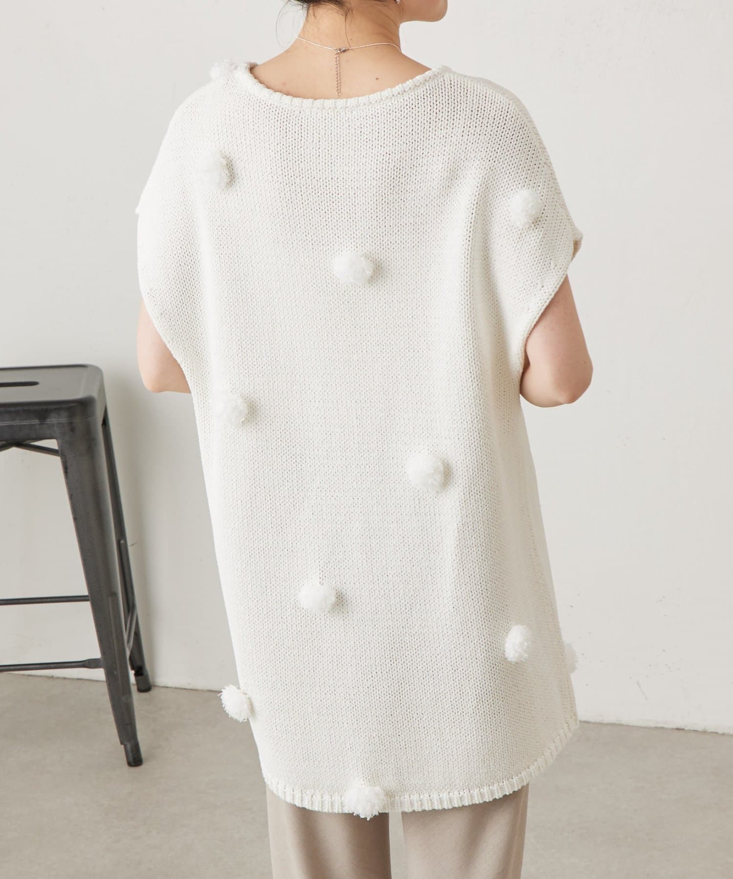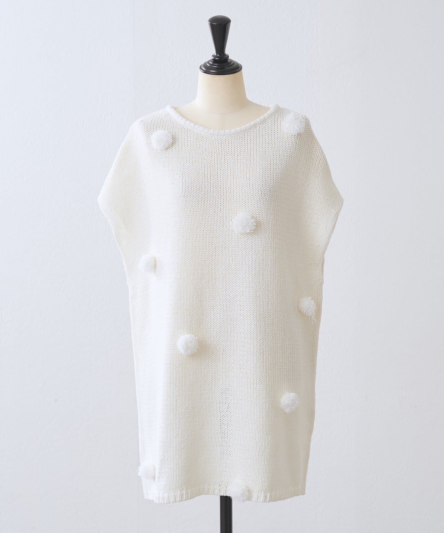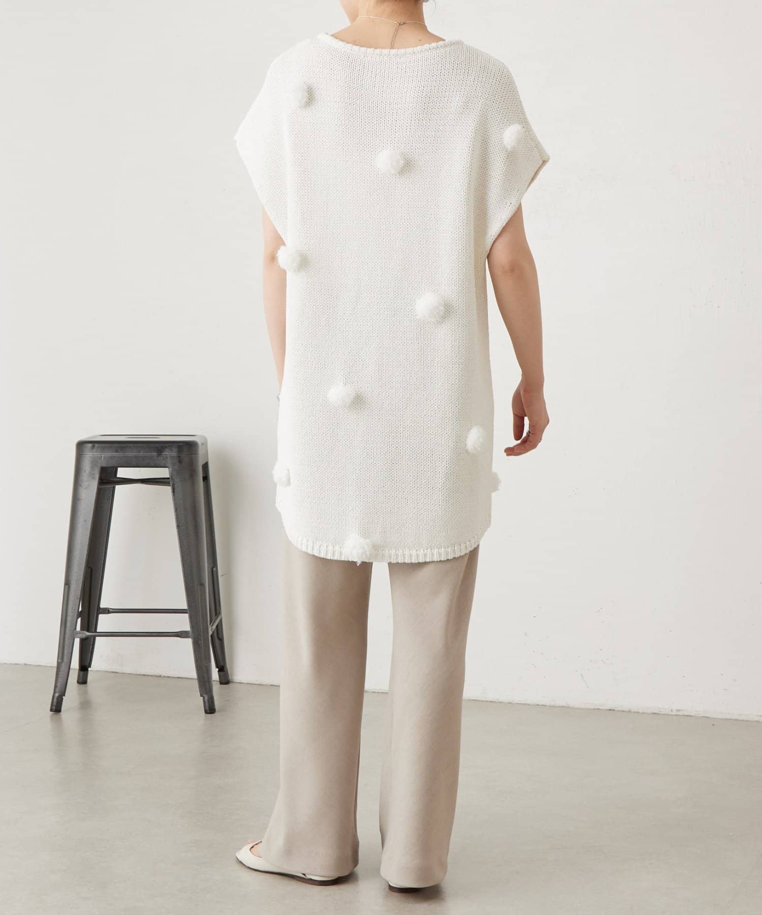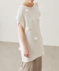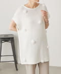 立体的なポンポンモチーフがついたフレンチスリーブニット。