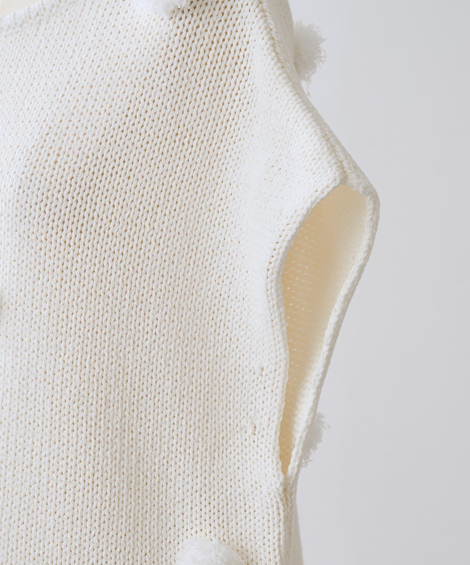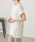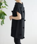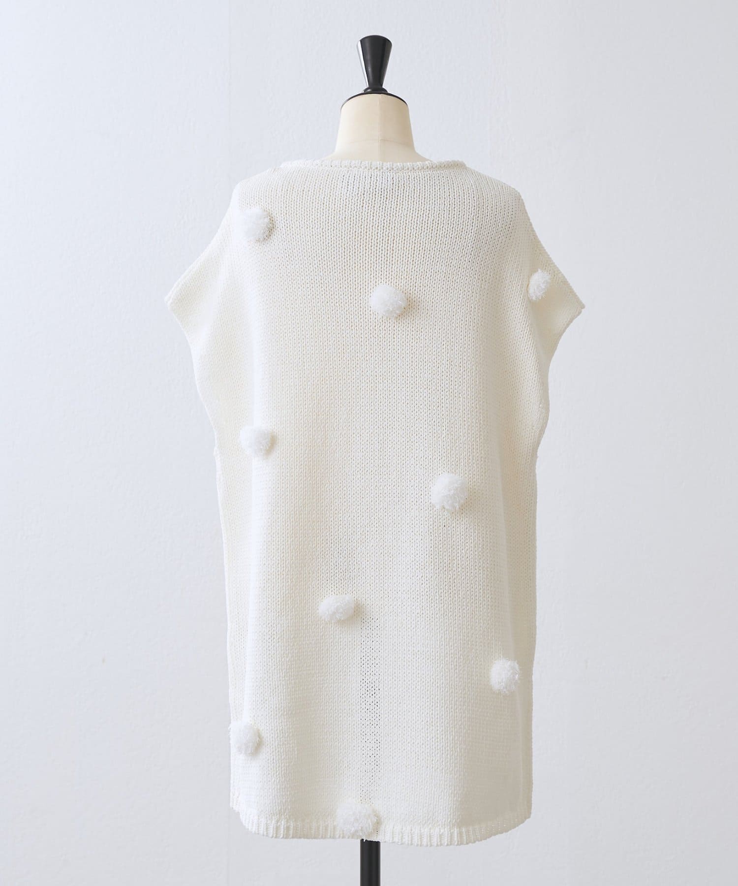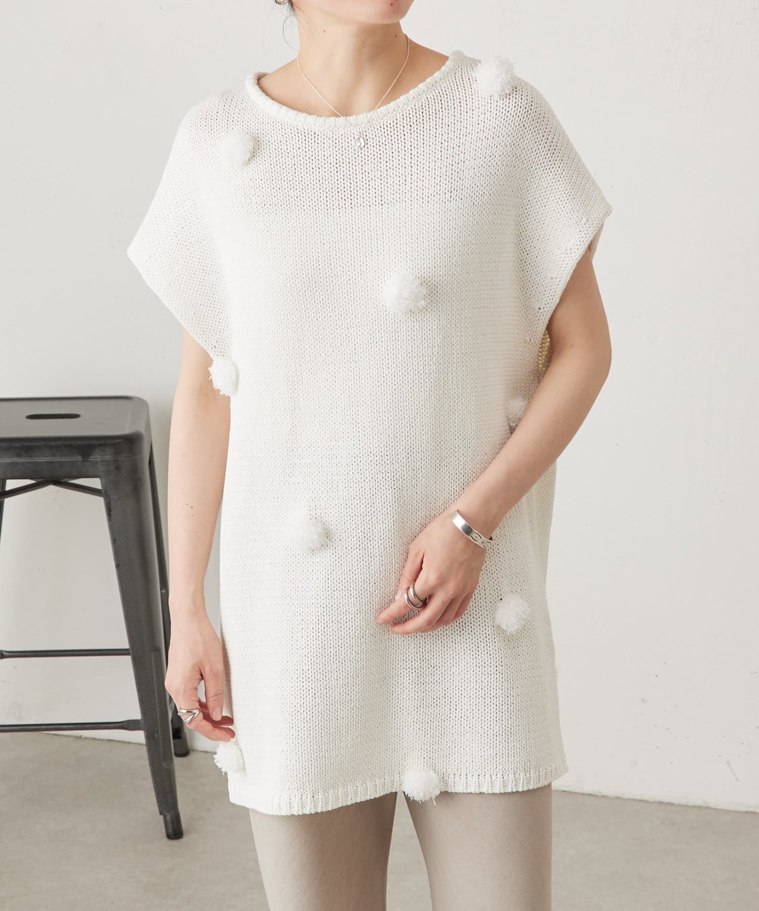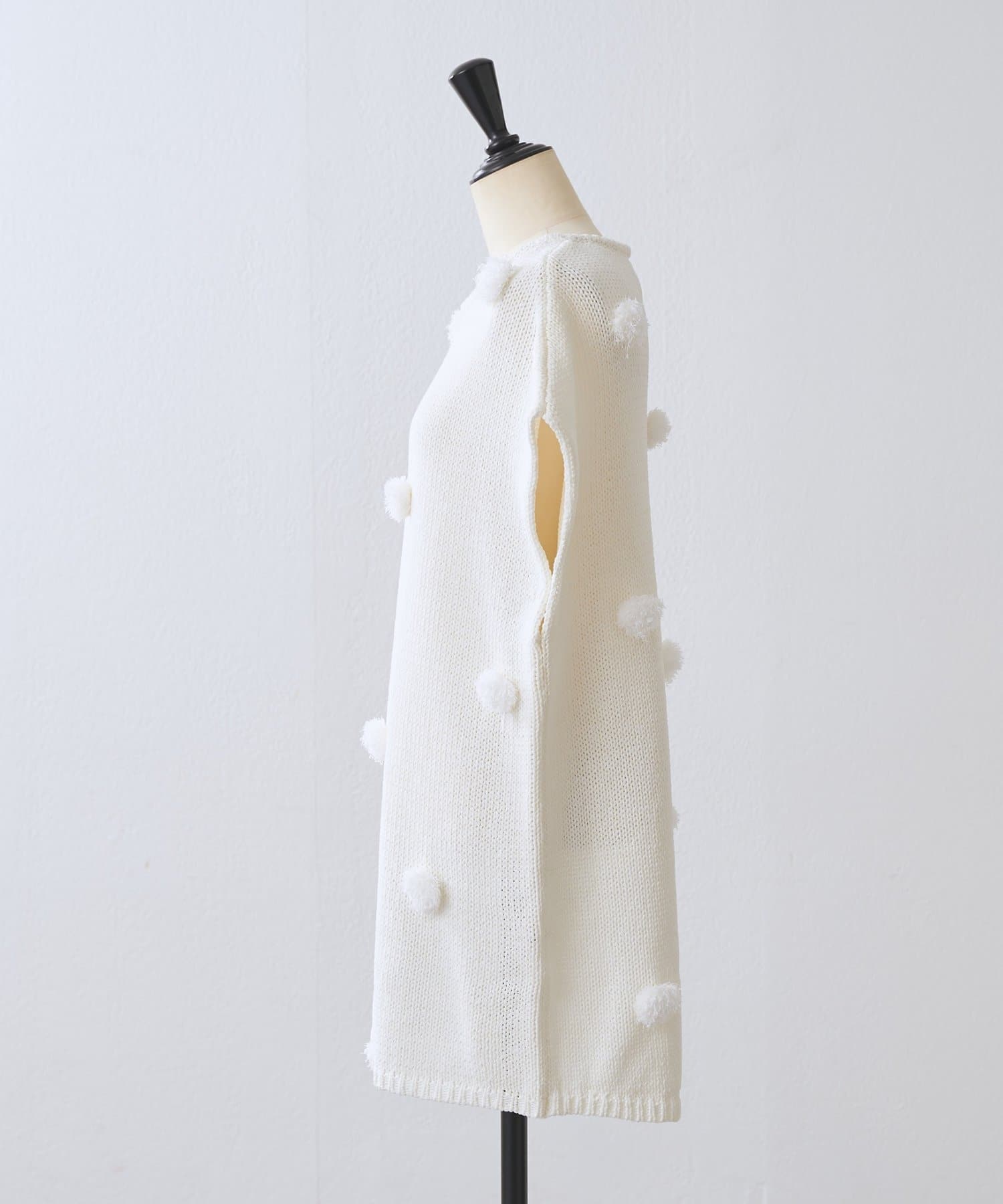 立体的なポンポンモチーフがついたフレンチスリーブニット。