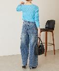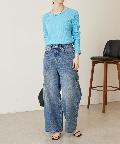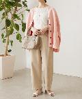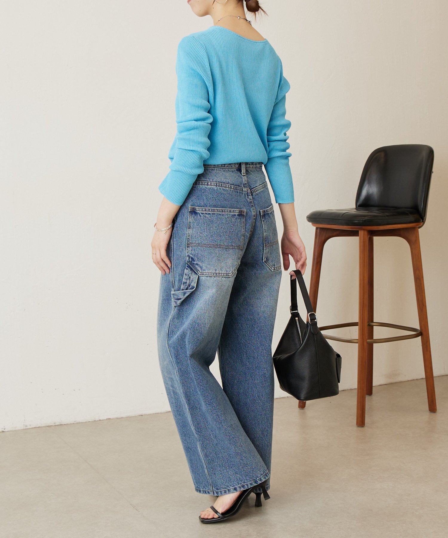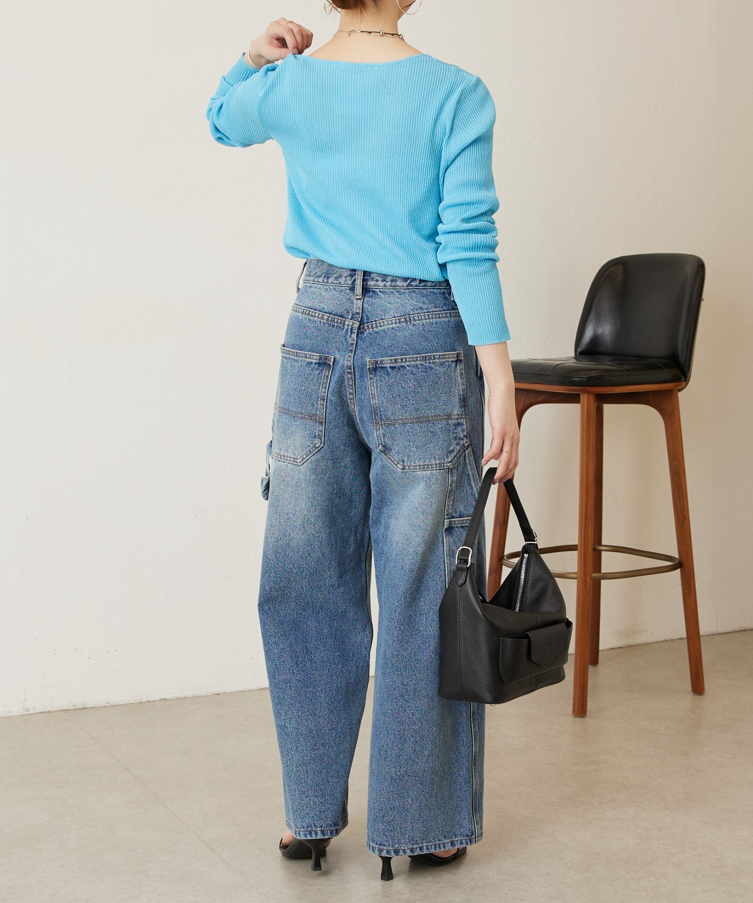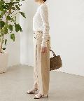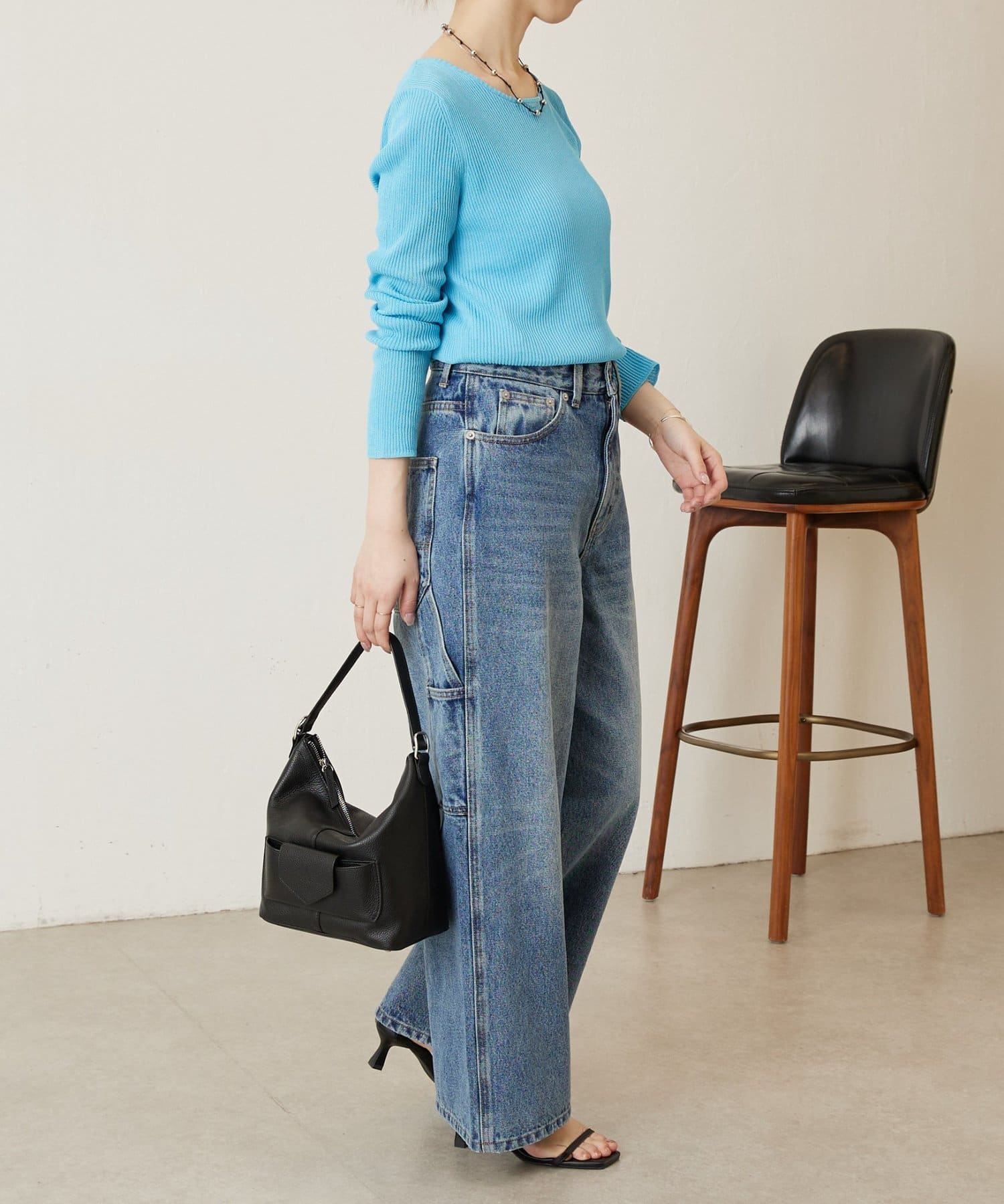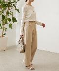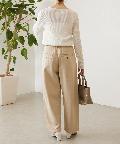 首周りは程よく開いたネックラインがデコルテまわりをすっきりと見せながら、抜け感のある着こなしを演出。