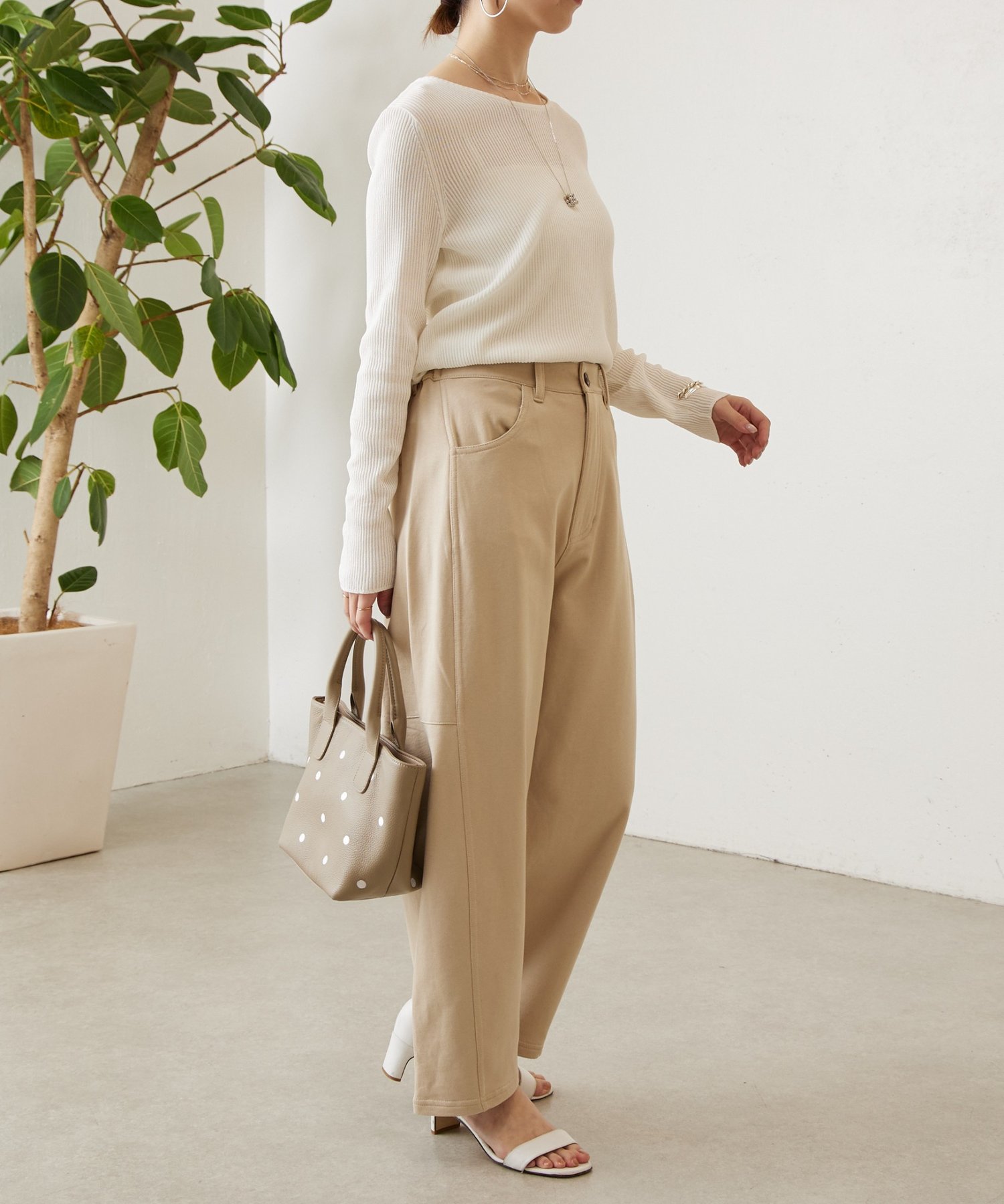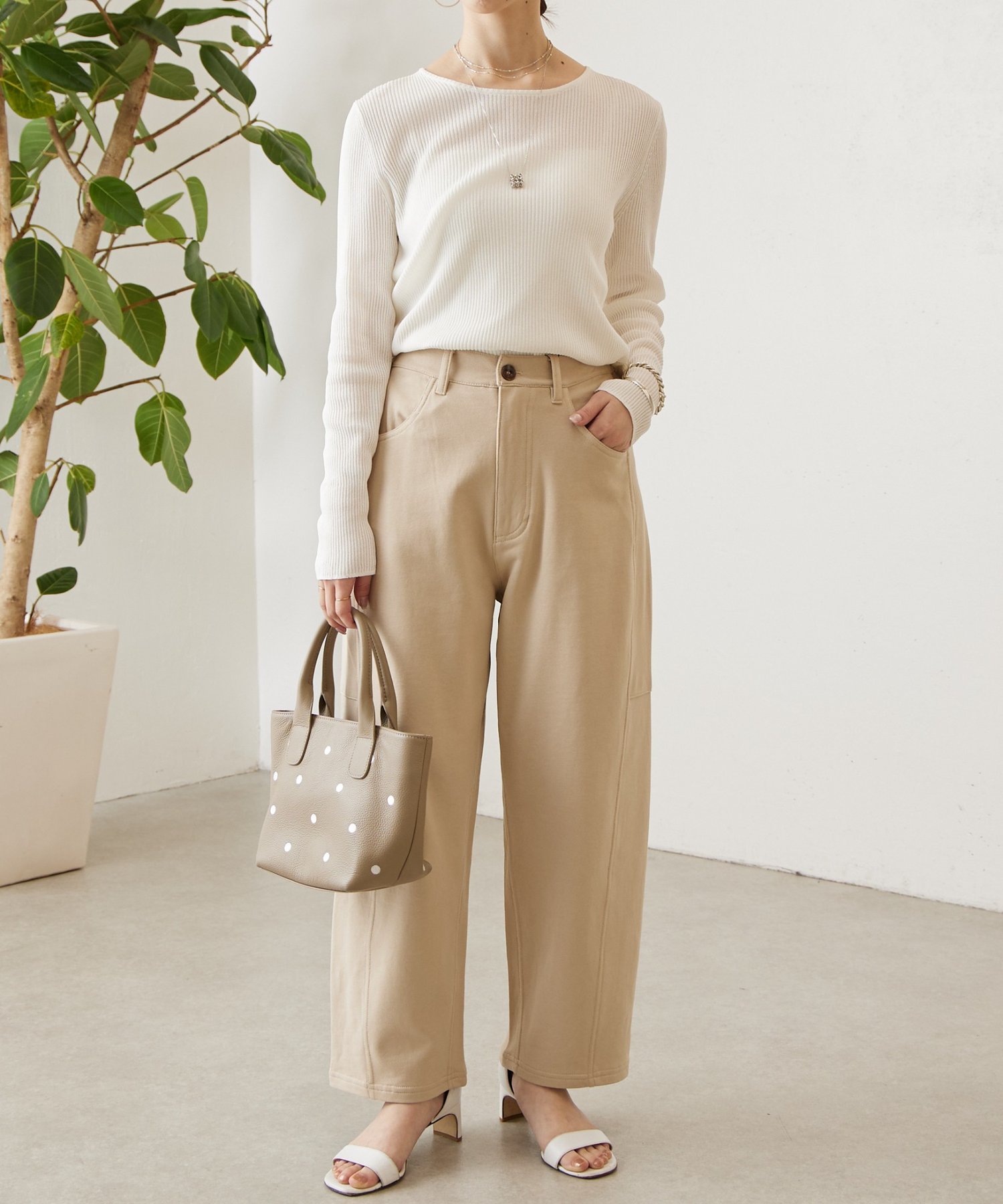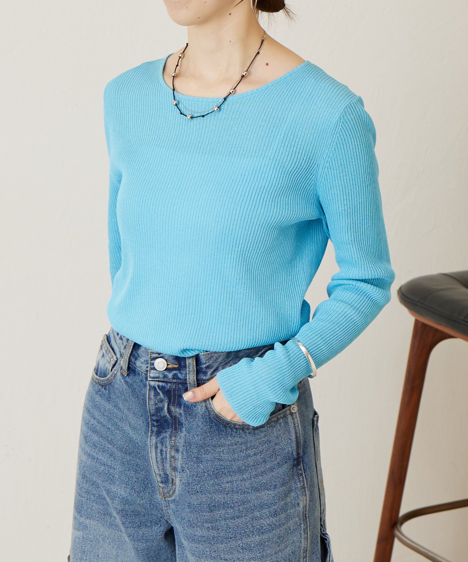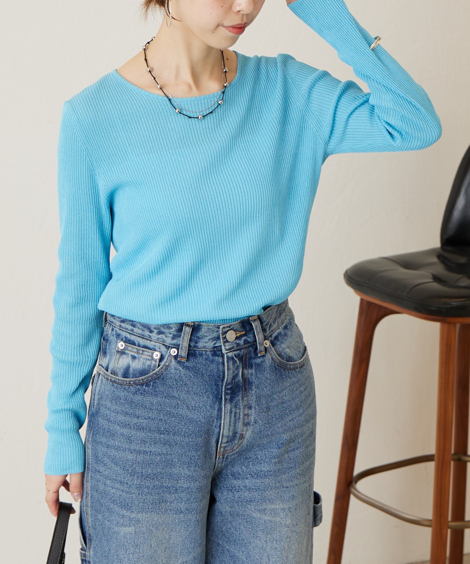 身体に沿いすぎないリブのフィット感と程よい伸縮性で、デイリーからきれいめまで幅広く活躍する一枚です。