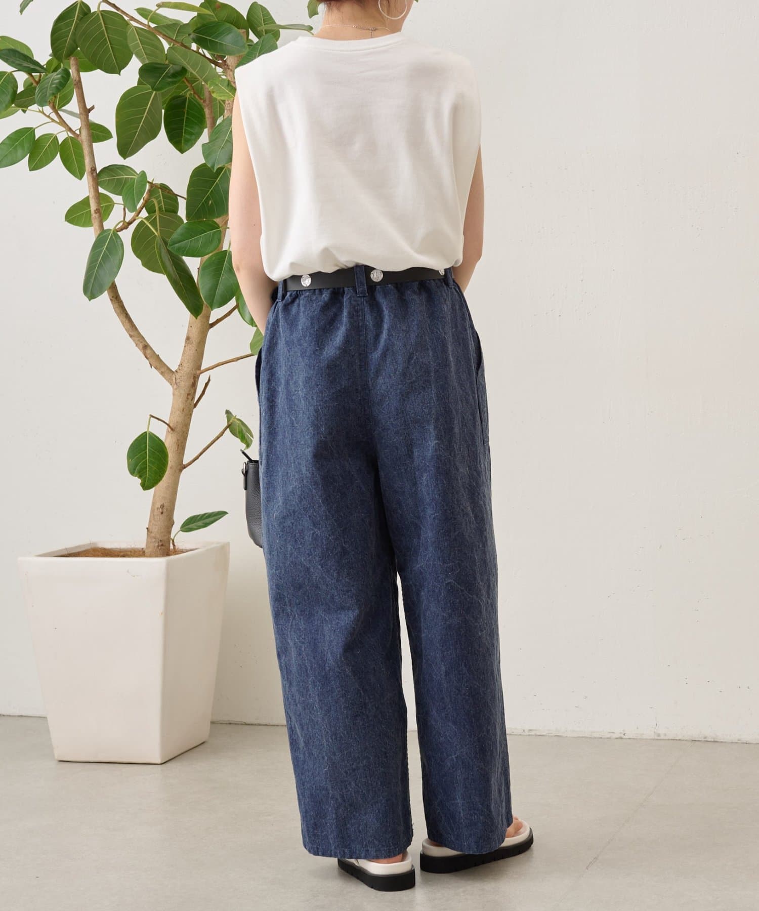 袖口は折り返し仕様ですっきりとした印象に仕上げ、ノースリーブでも肩まわりをきれいに演出。