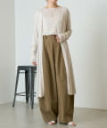 同素材のカーディガンと合わせたアンサンブルスタイルもおすすめです。