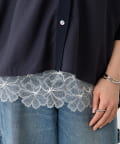 身頃はカットソー素材で伸縮性があり、身体に程よくフィットしながらも快適な着心地。