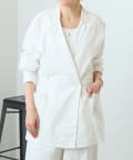 ダブルボタンデザインがカジュアルになりすぎず大人の装いに馴染む一着。