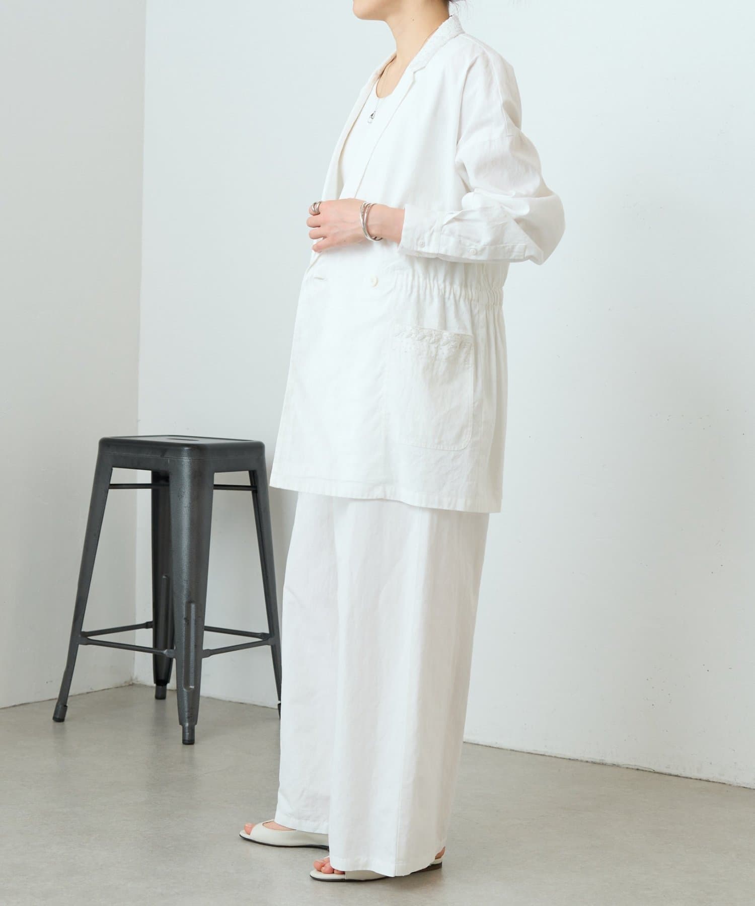 綿麻素材を使用し、軽やかでナチュラルな風合いが魅力です。