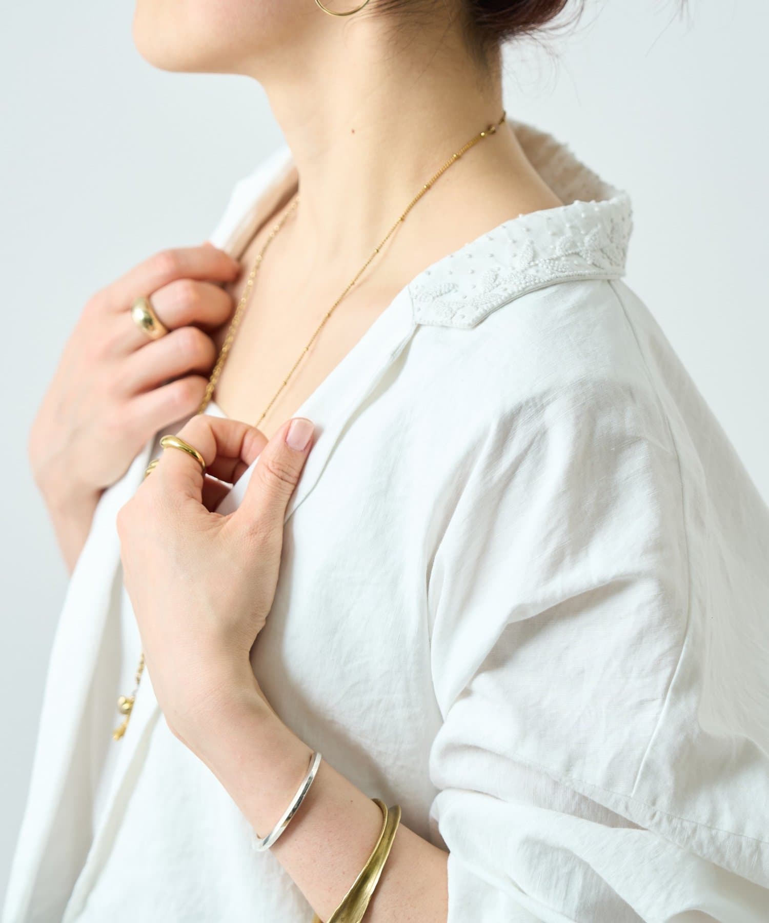 インドの職人によりハンドワークで刺繍された特別感のある一着。