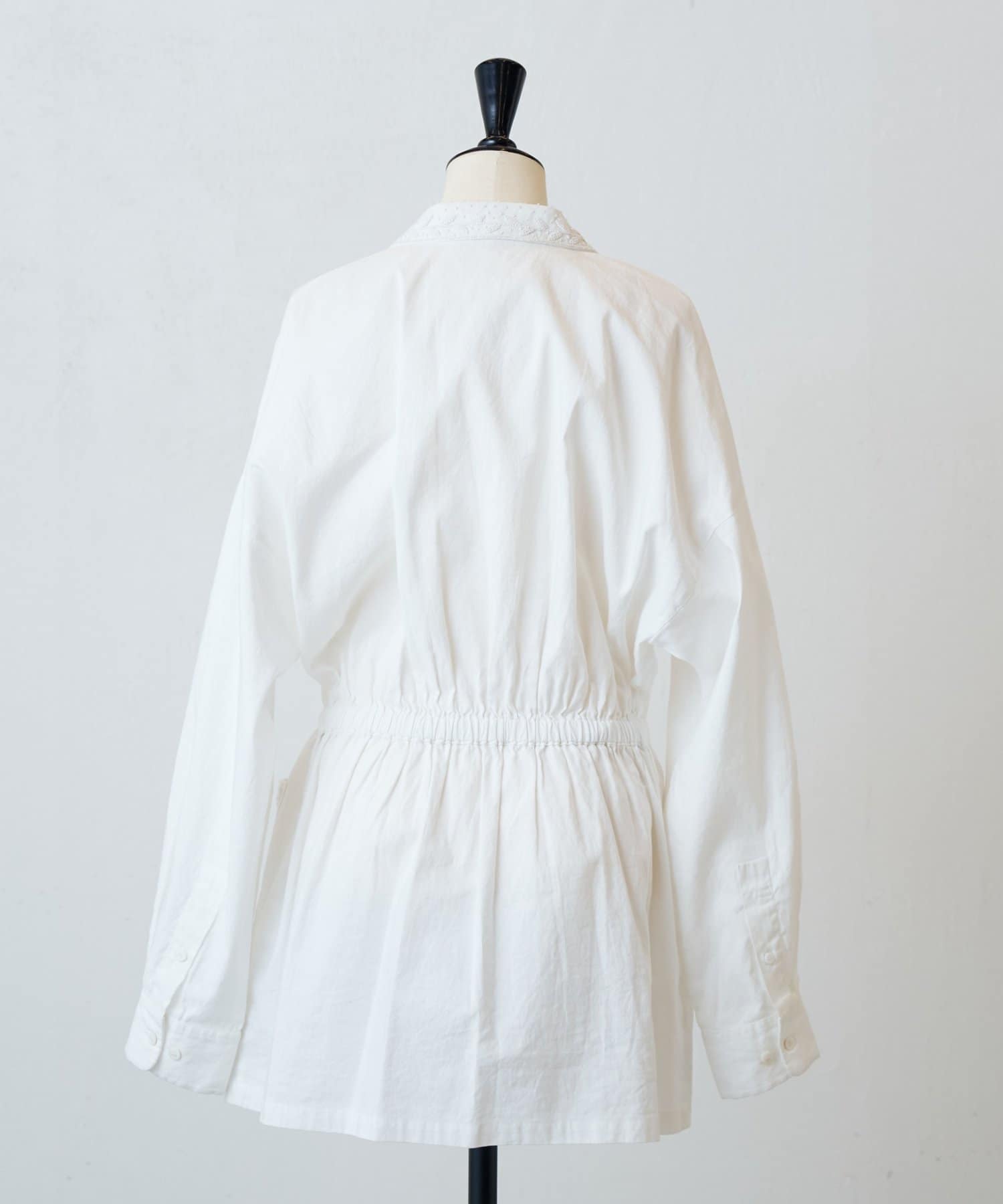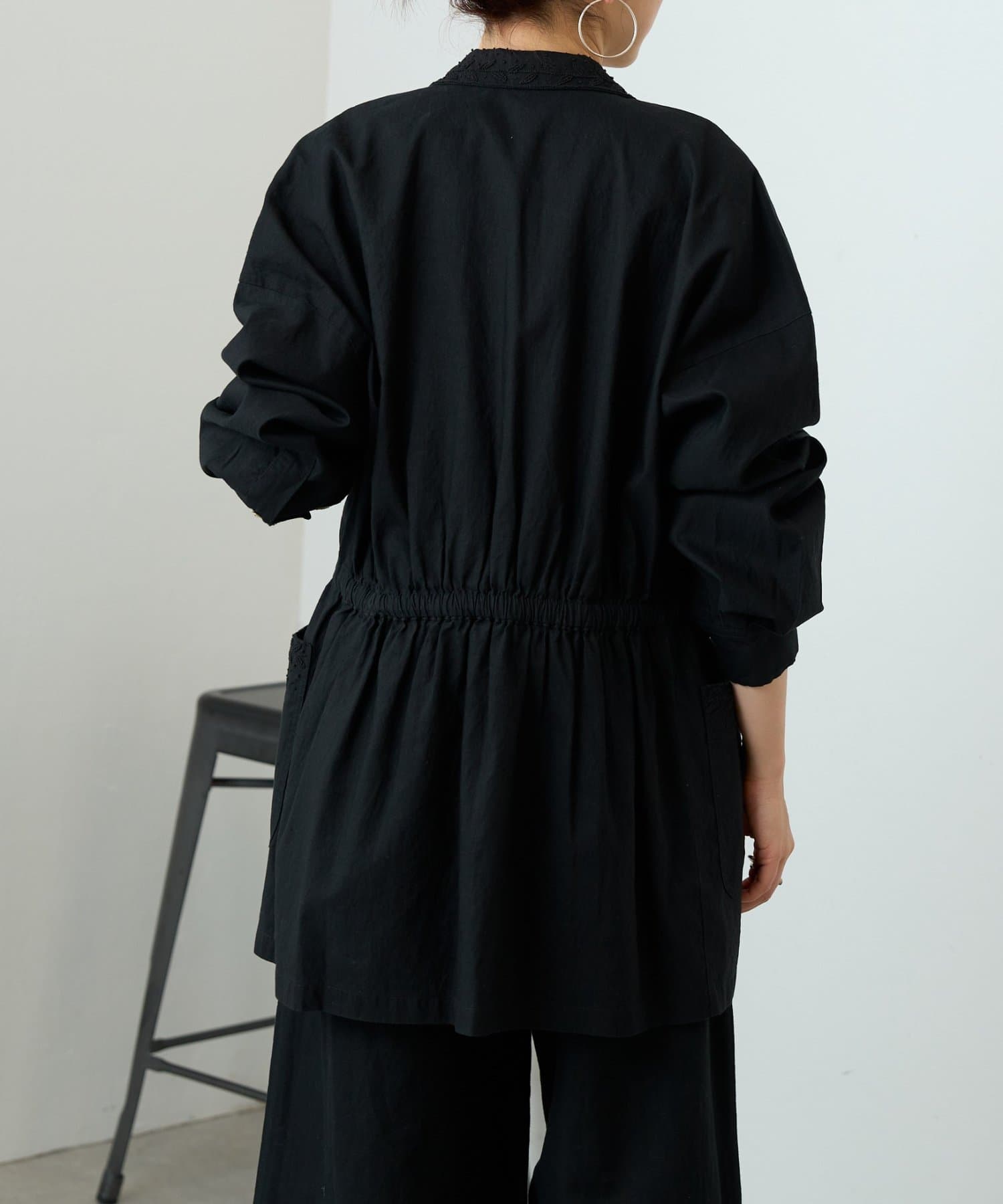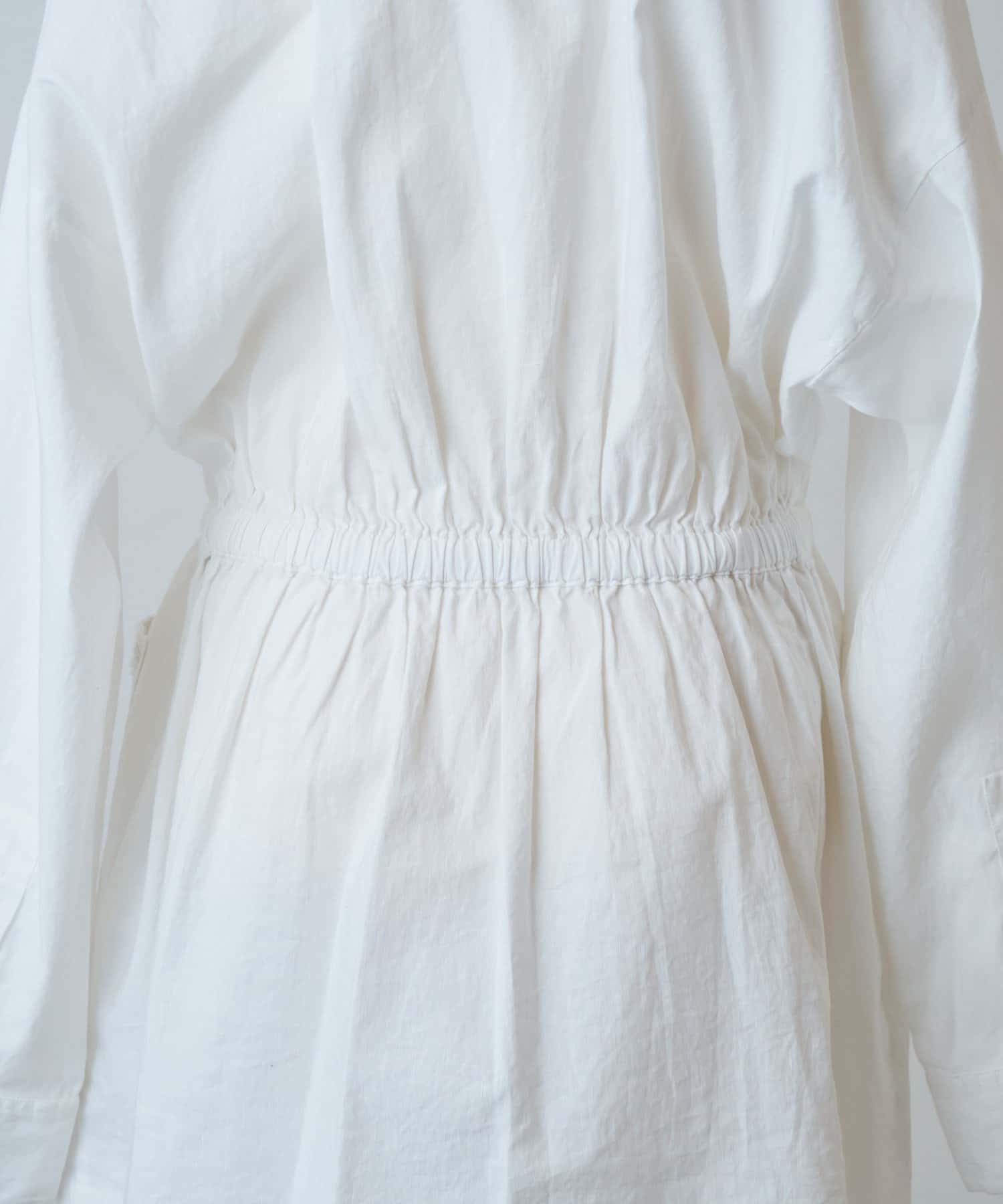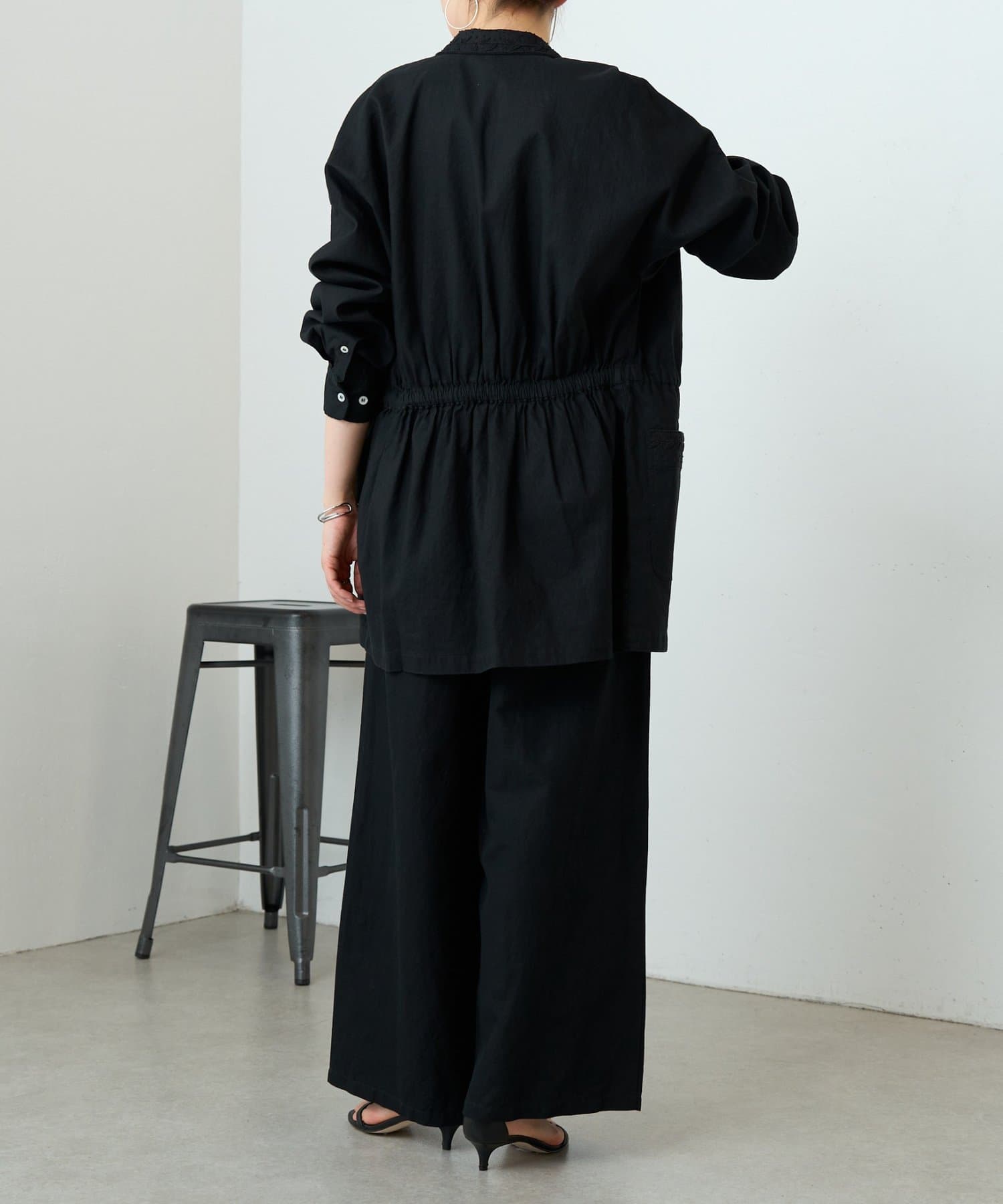 ウエストには紐を通しており、シルエットの変化を楽しめます。