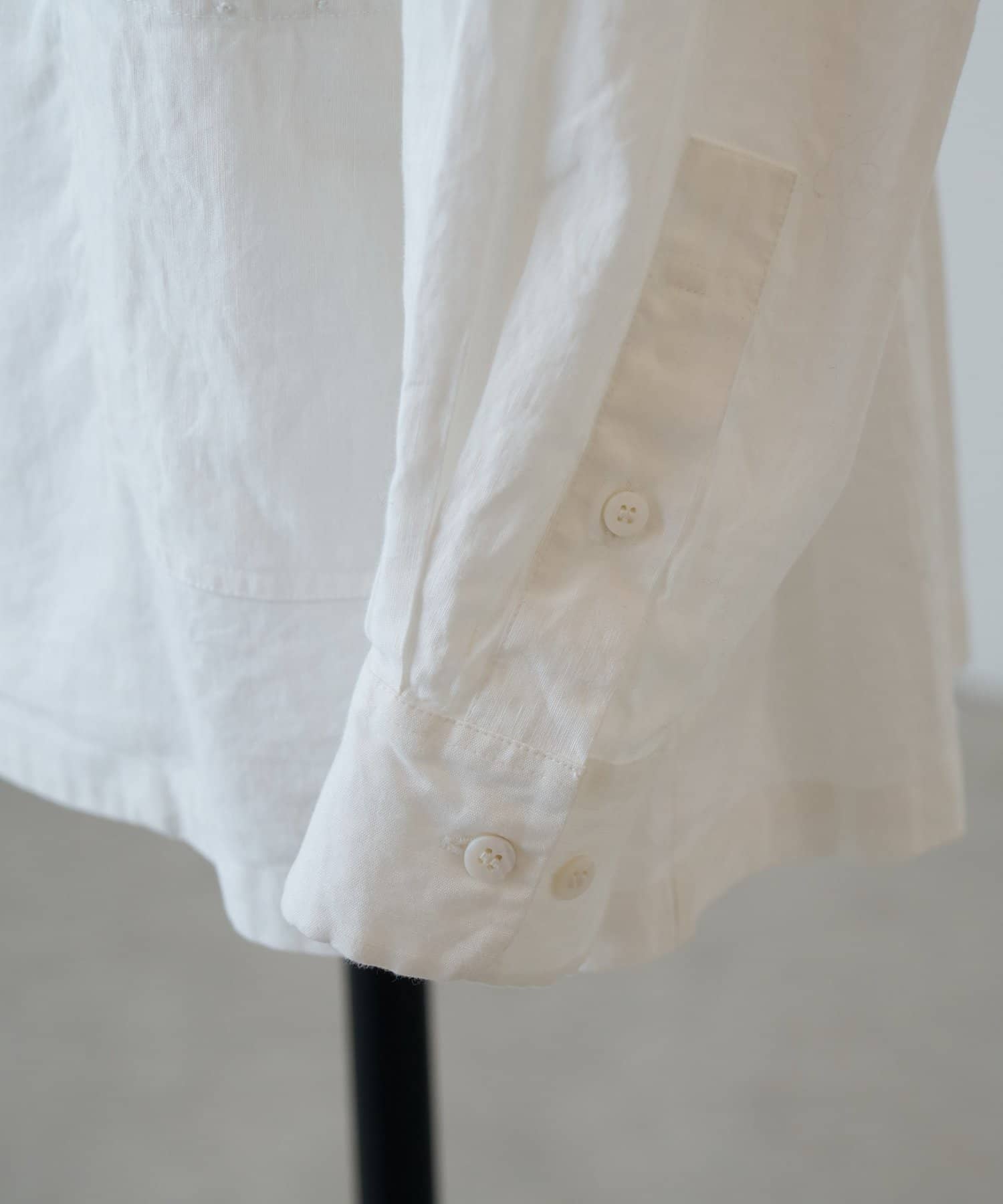 袖口はカフス仕様でタックを施すことで自然とすぼまるすっきりとしたラインに。