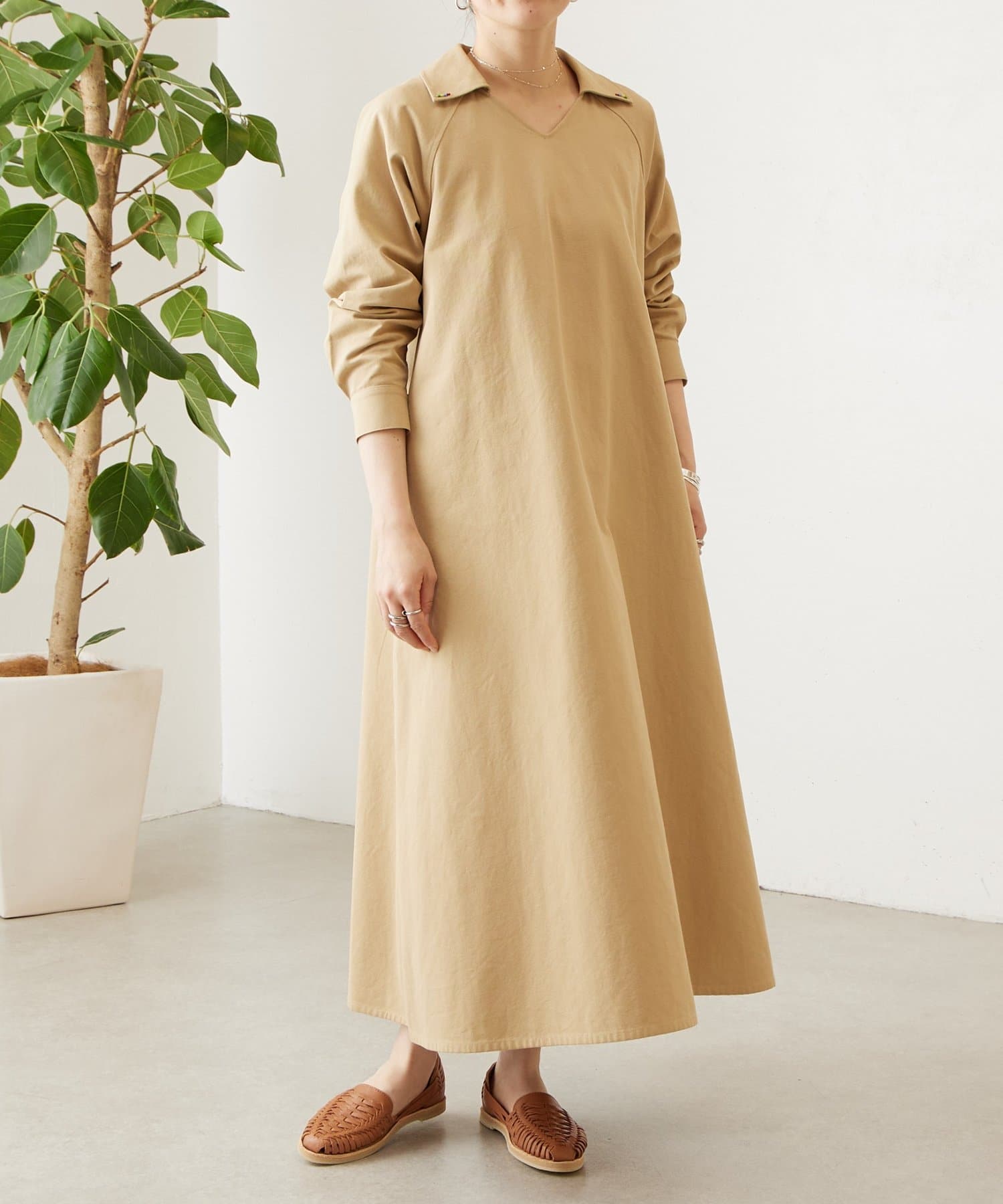 身体のラインを拾いにくいAラインシルエットで、1枚でこなれた印象のスタイルが完成します。