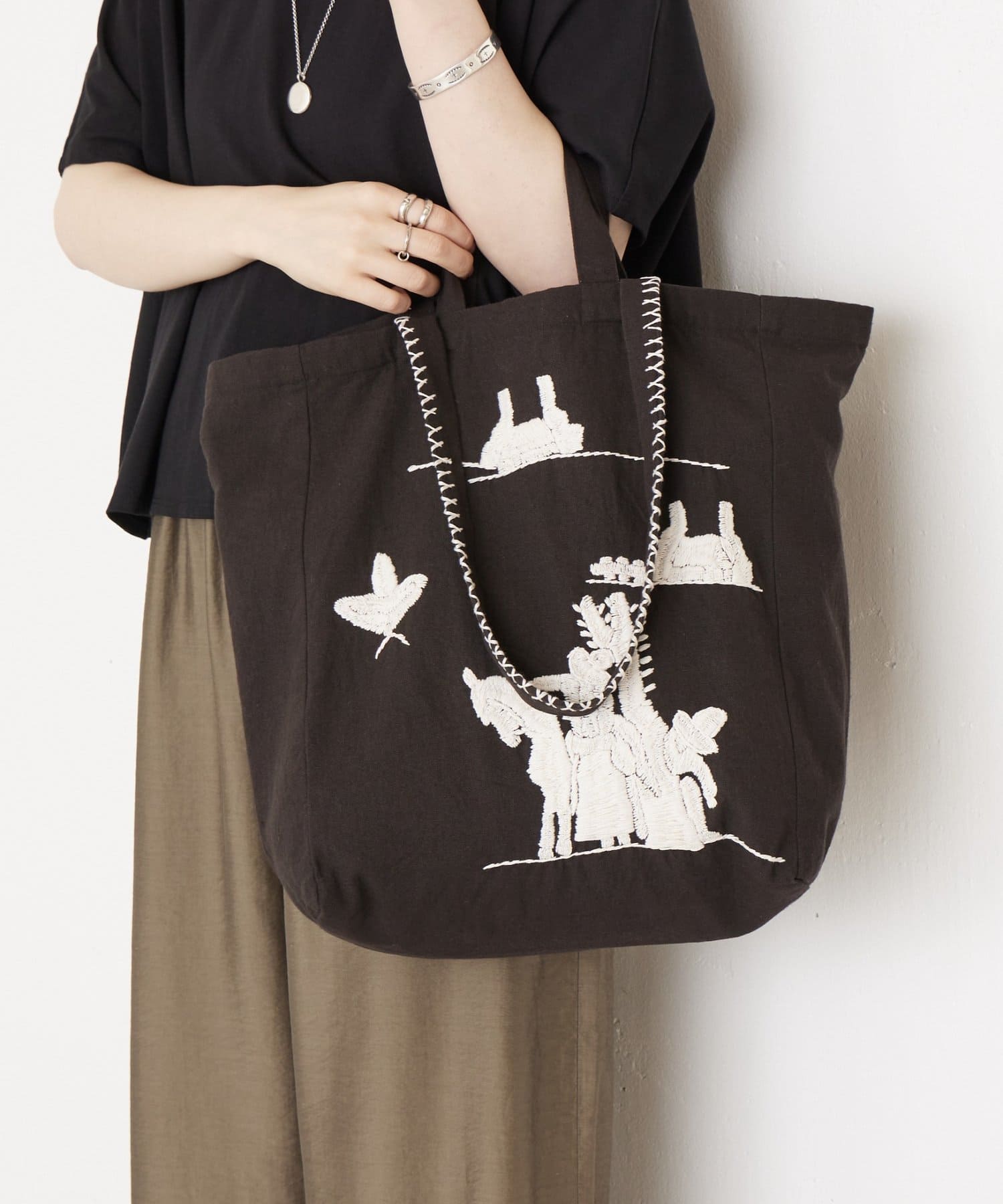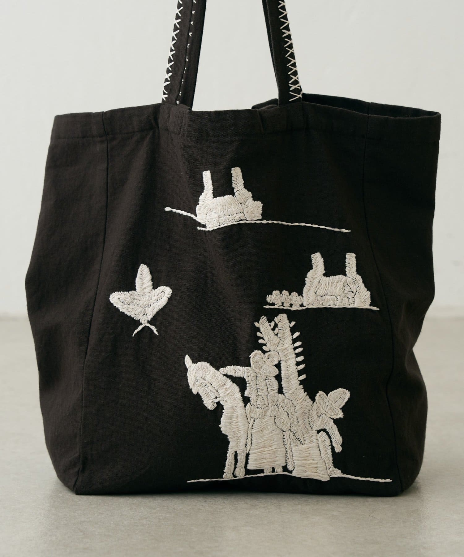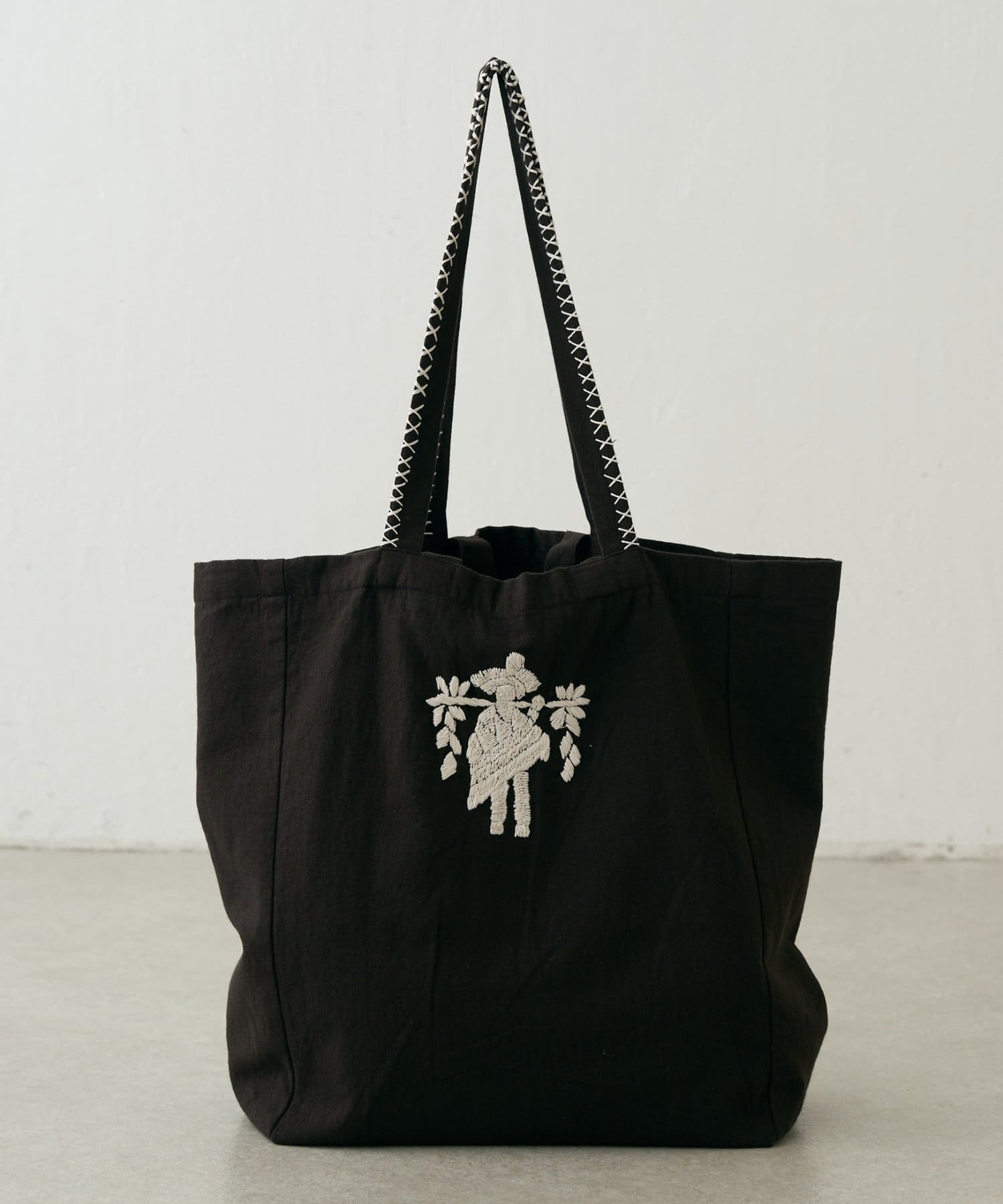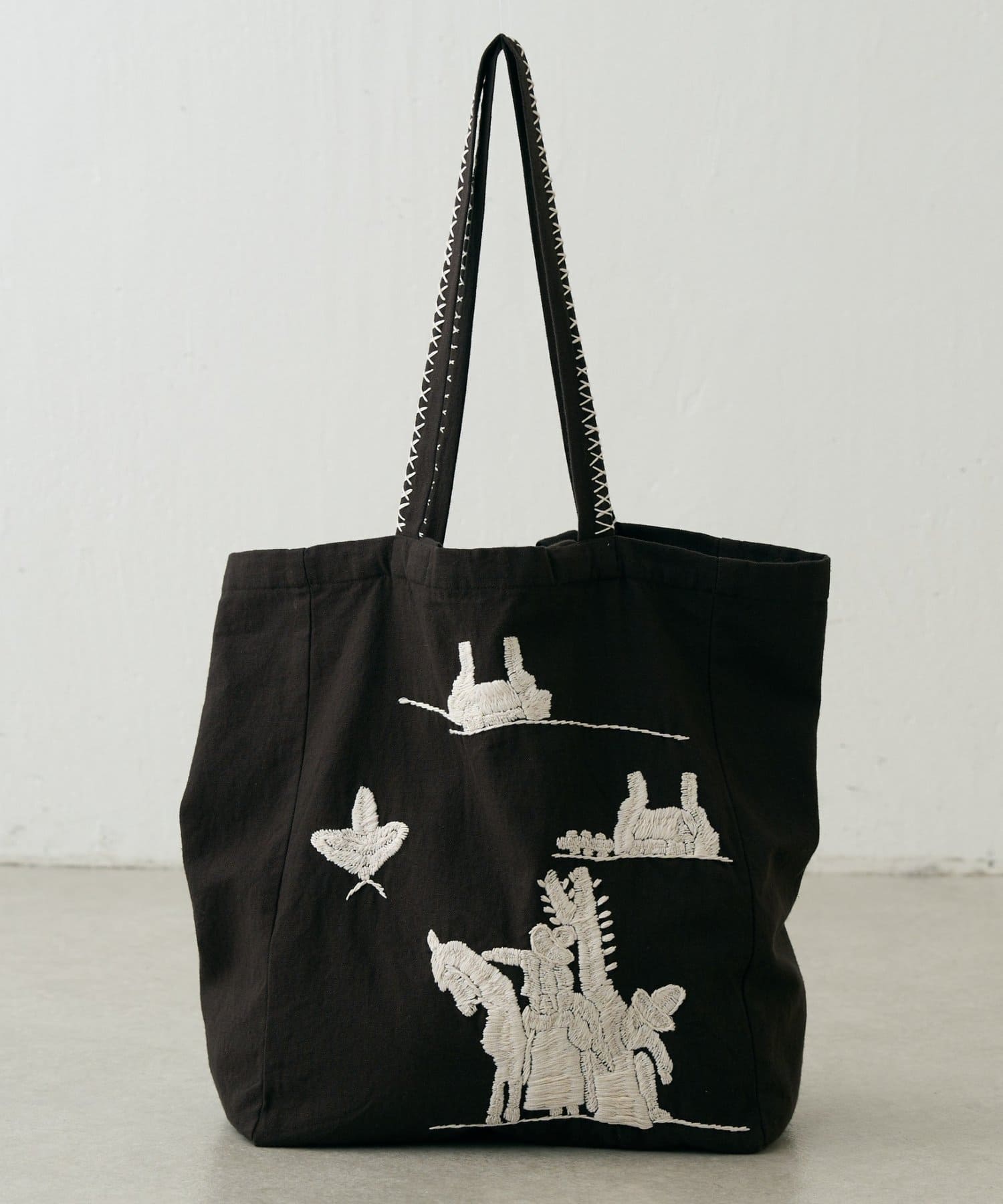 ハンドクラフトの温もりが感じられるトートバッグ。