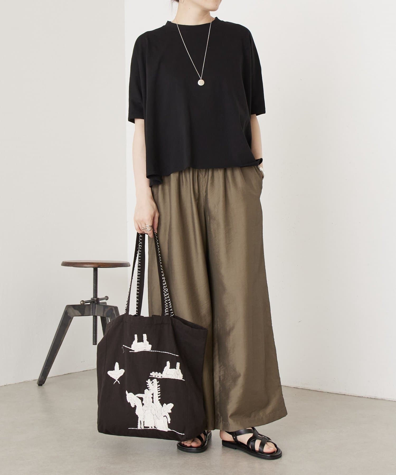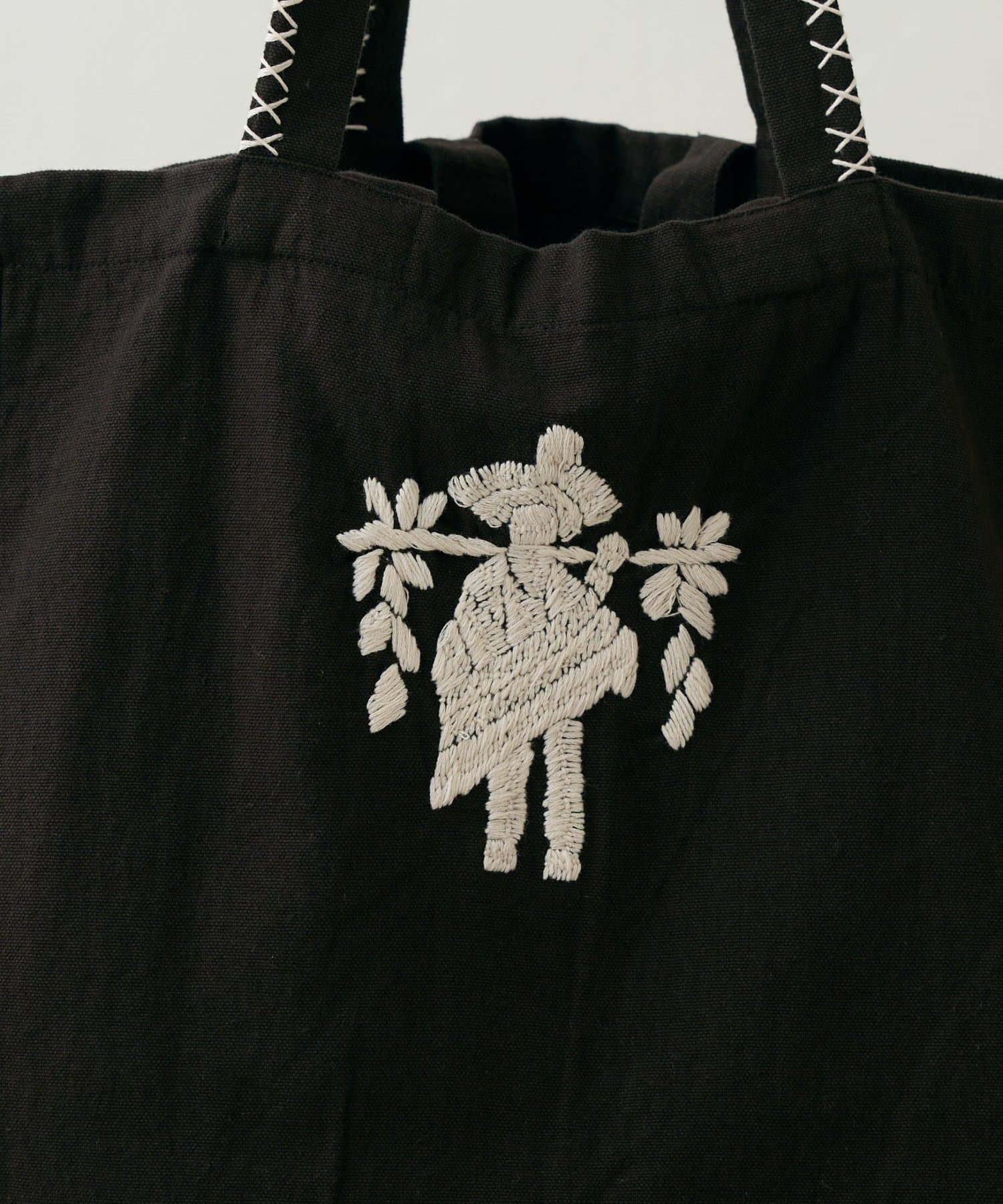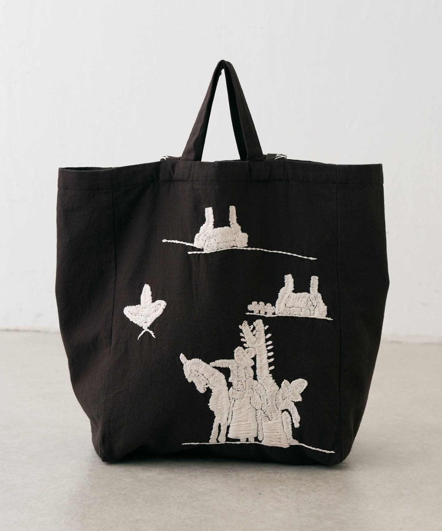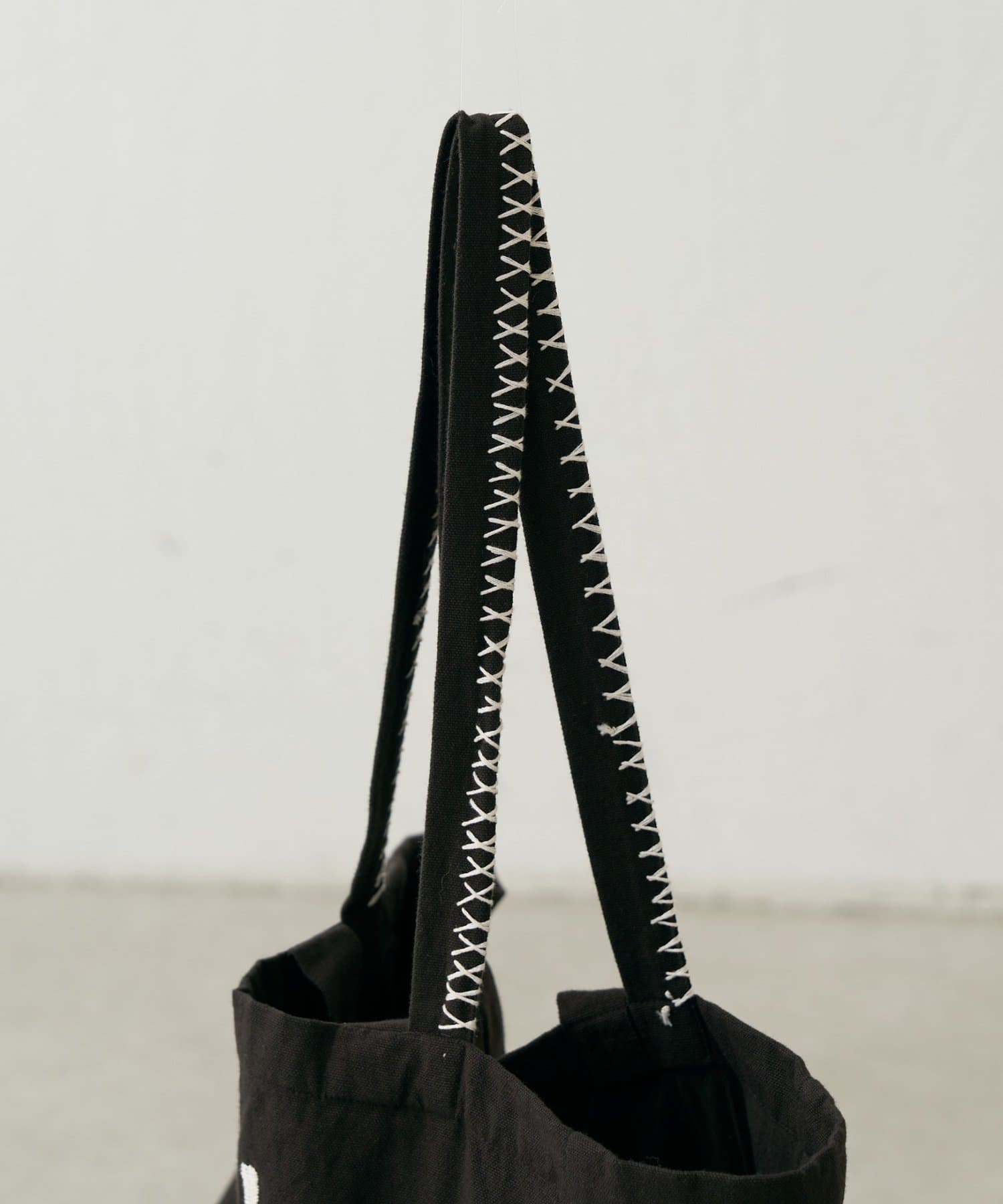 ハンドクラフトの温もりが感じられるトートバッグ。