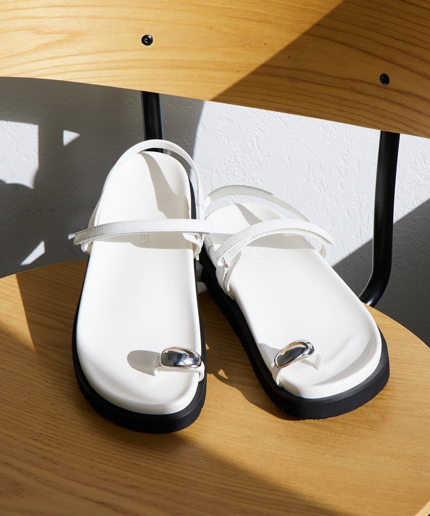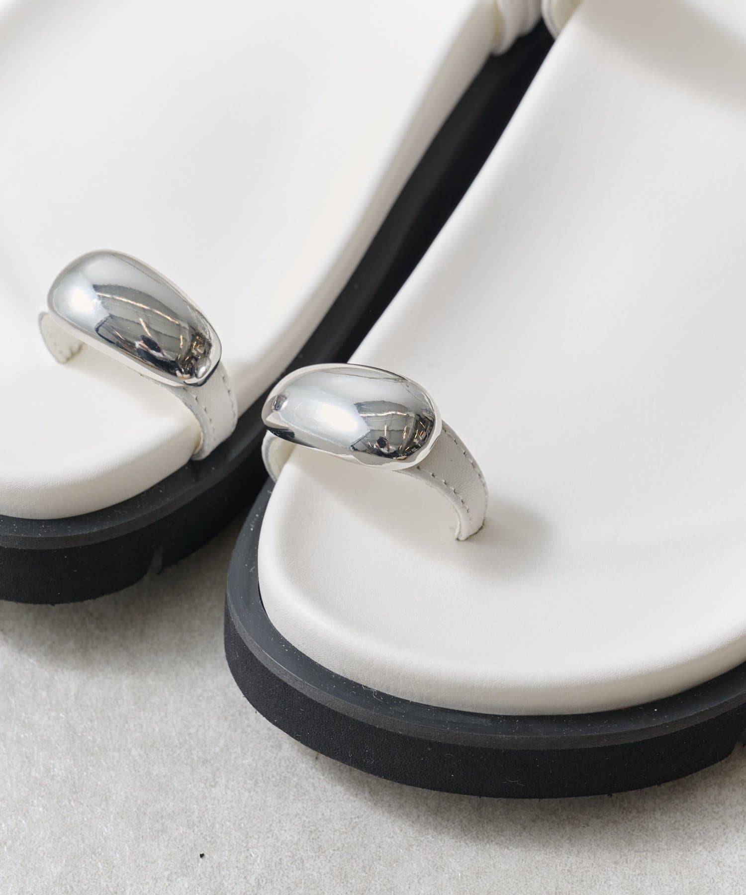 親指部分をリングデザインで軽やかに支える、ミニマルなトゥリングサンダル。
