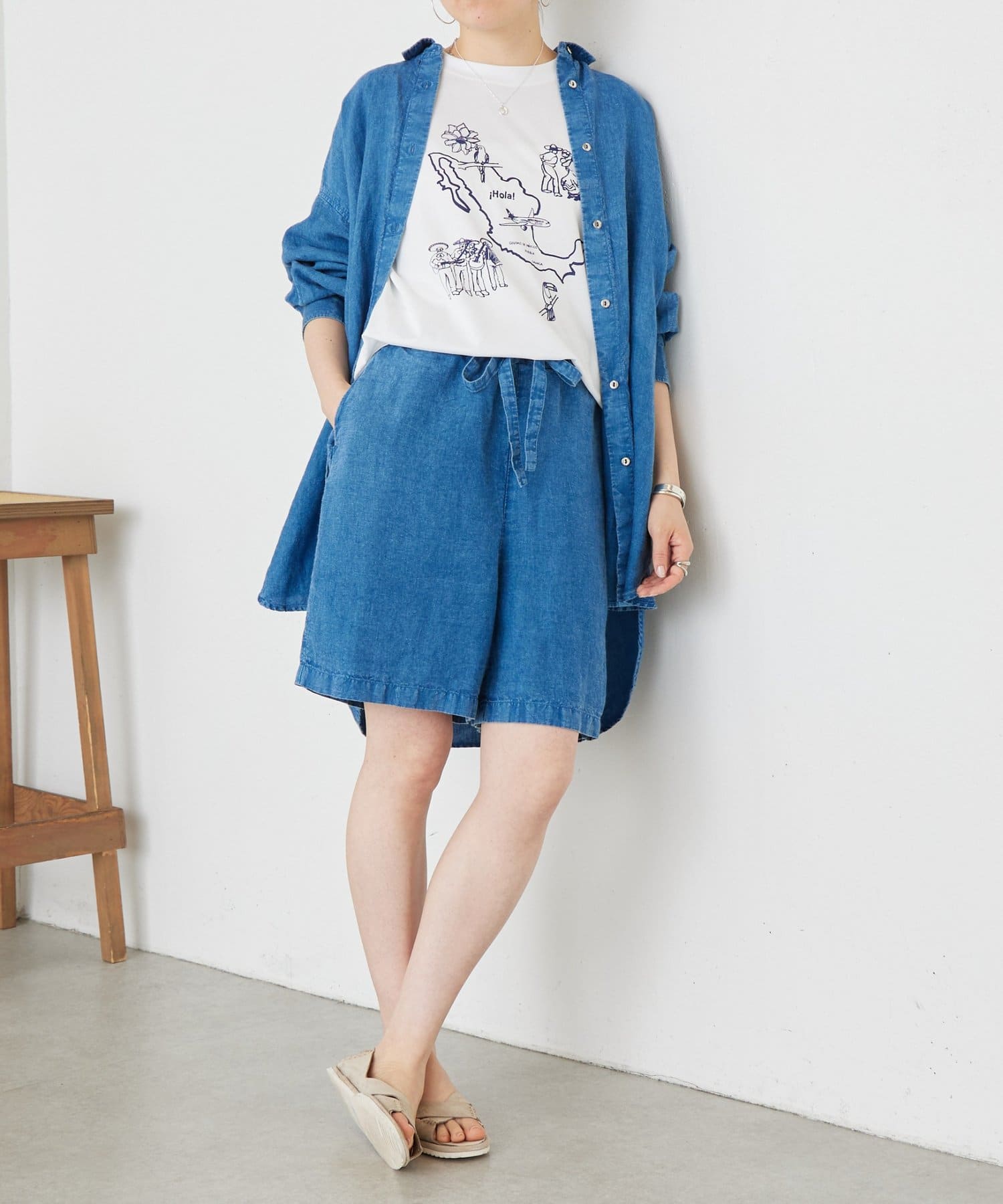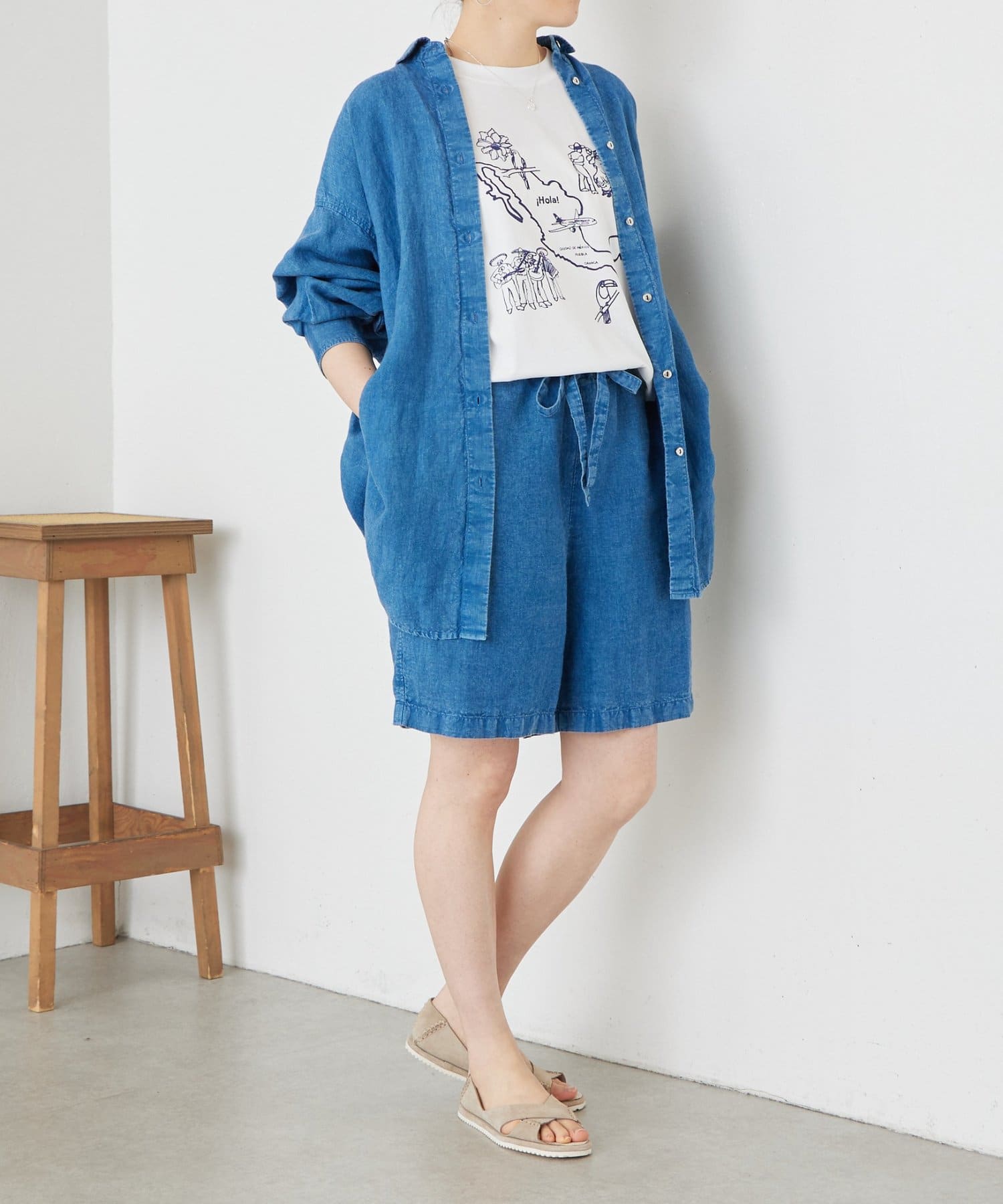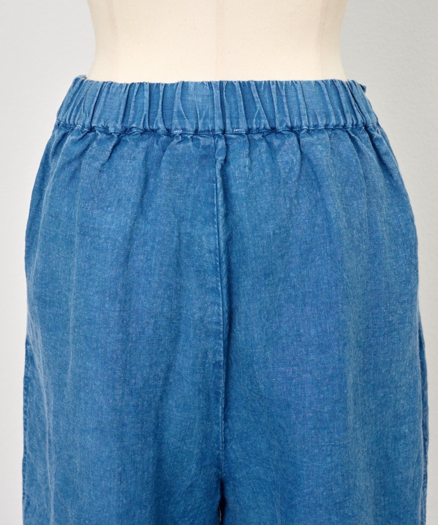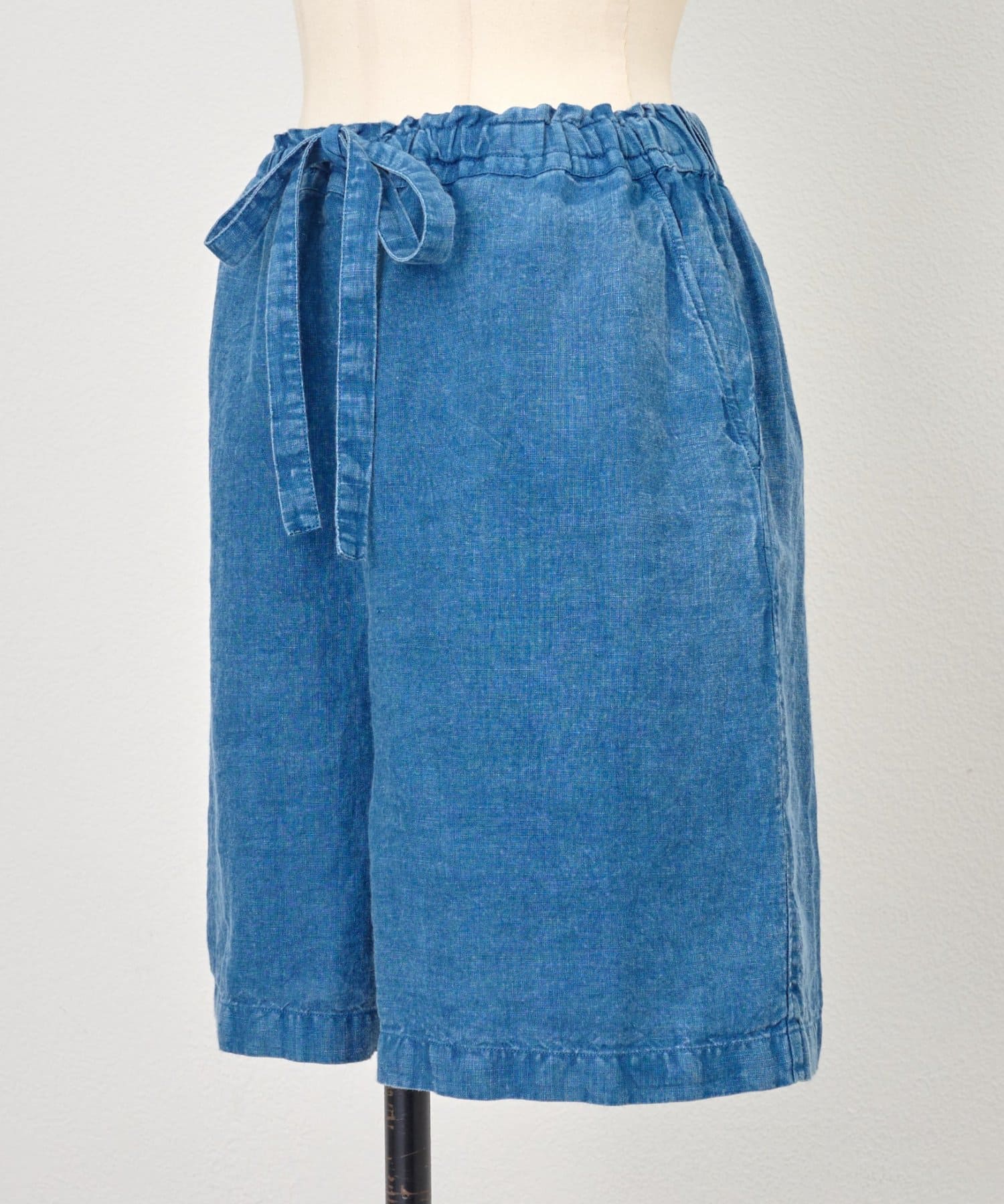 インディゴ製品染めならではの奥行きのある色合いとリネンのナチュラルな風合いが魅力の一枚。