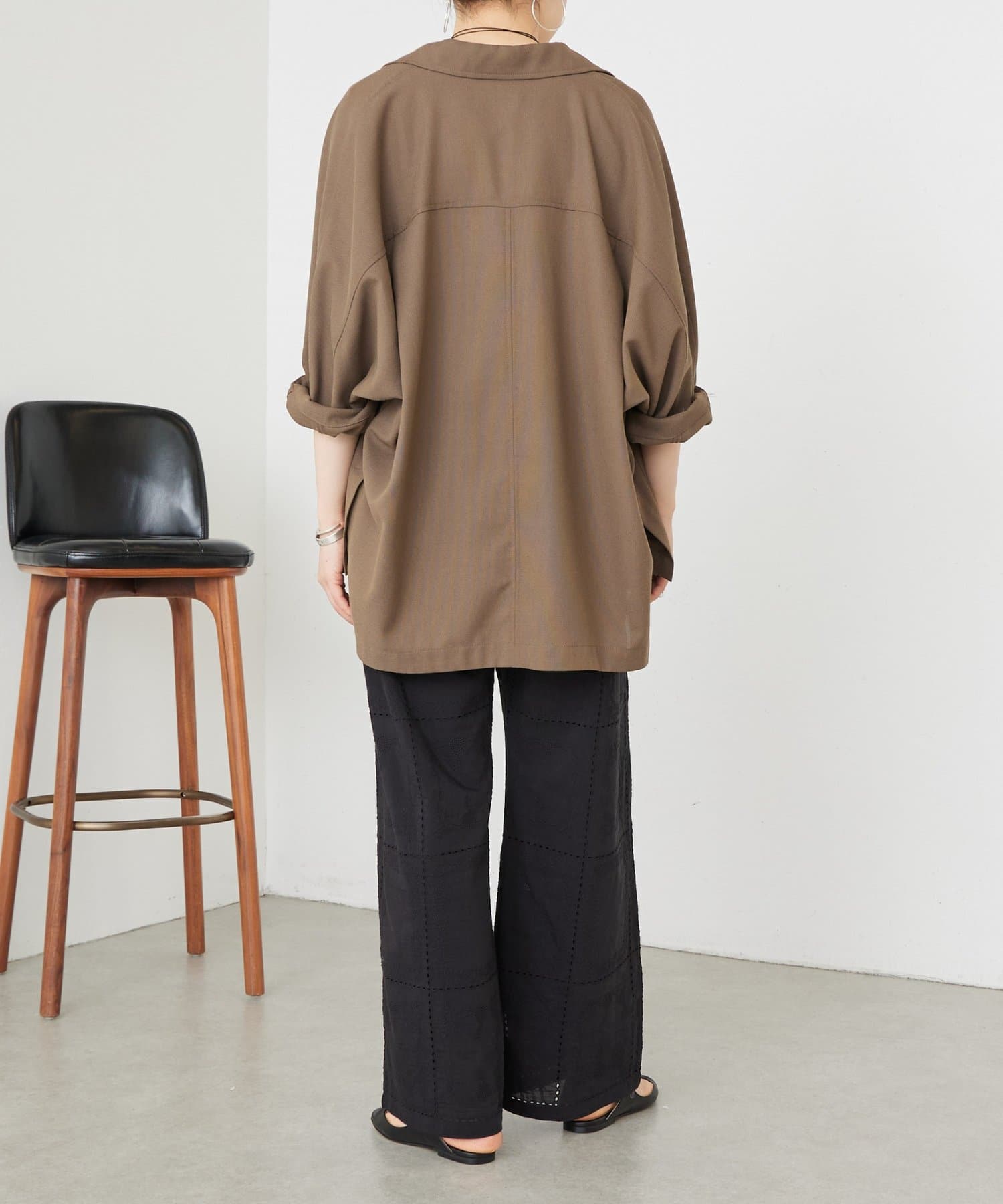 足元にほんのり透け感が出ることでブラックでも重たく見えない印象に仕上げています。