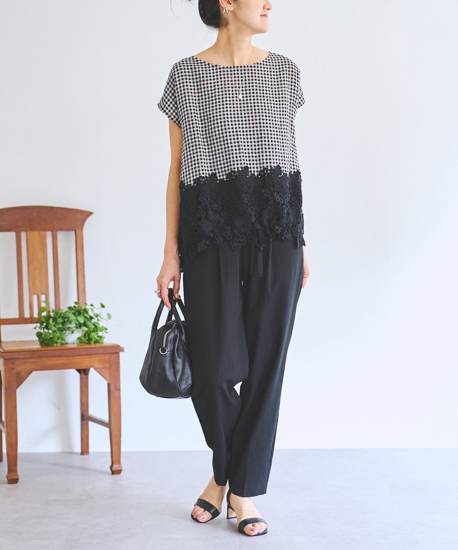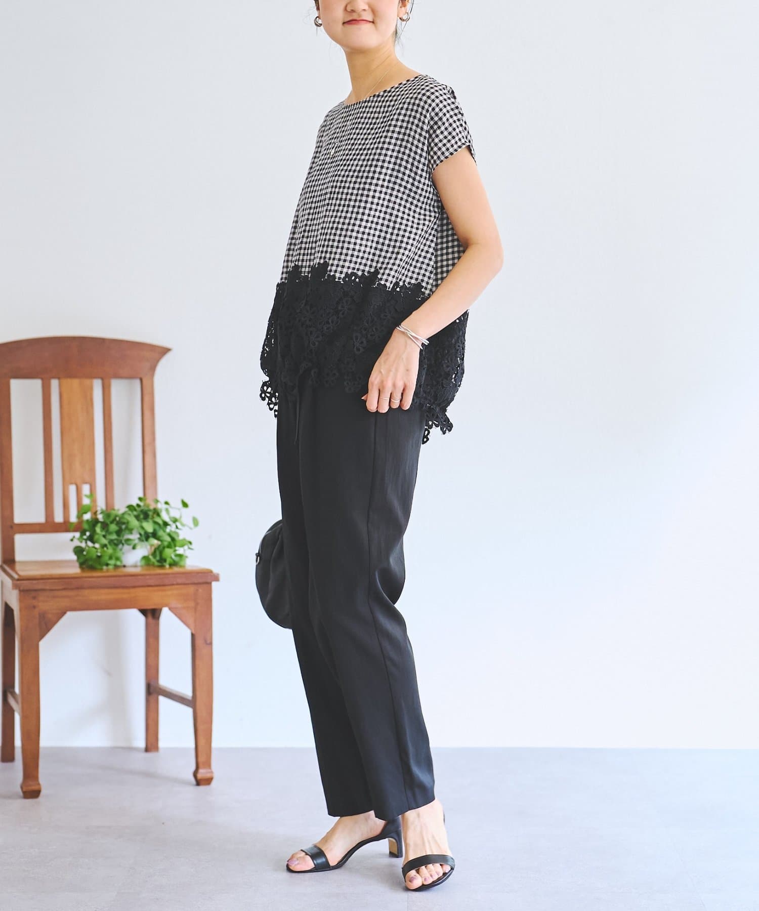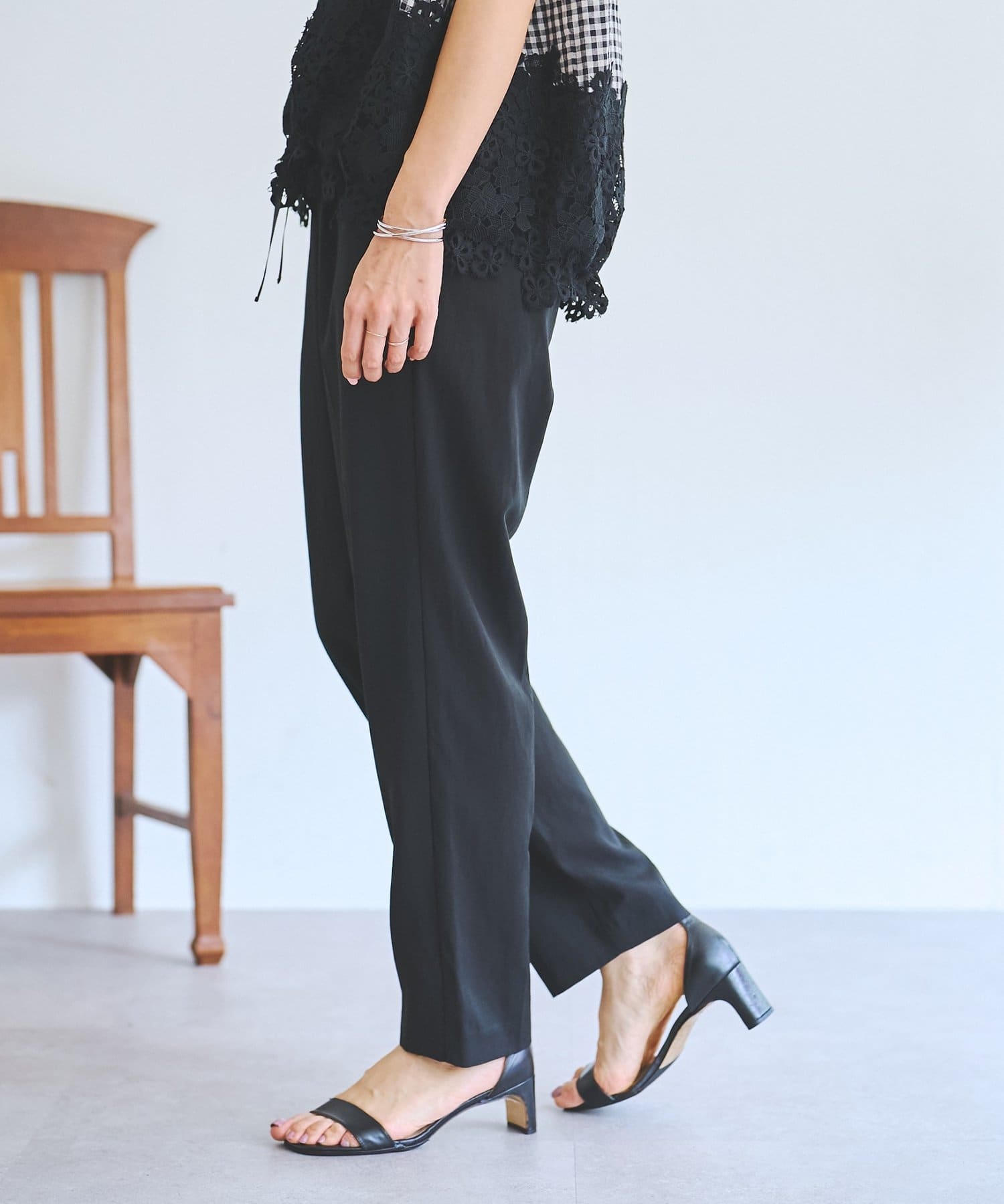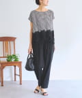 ポリエステル×レーヨンにリネンをブレンドした、さらっとした肌触りと軽やかな穿き心地を叶えます。