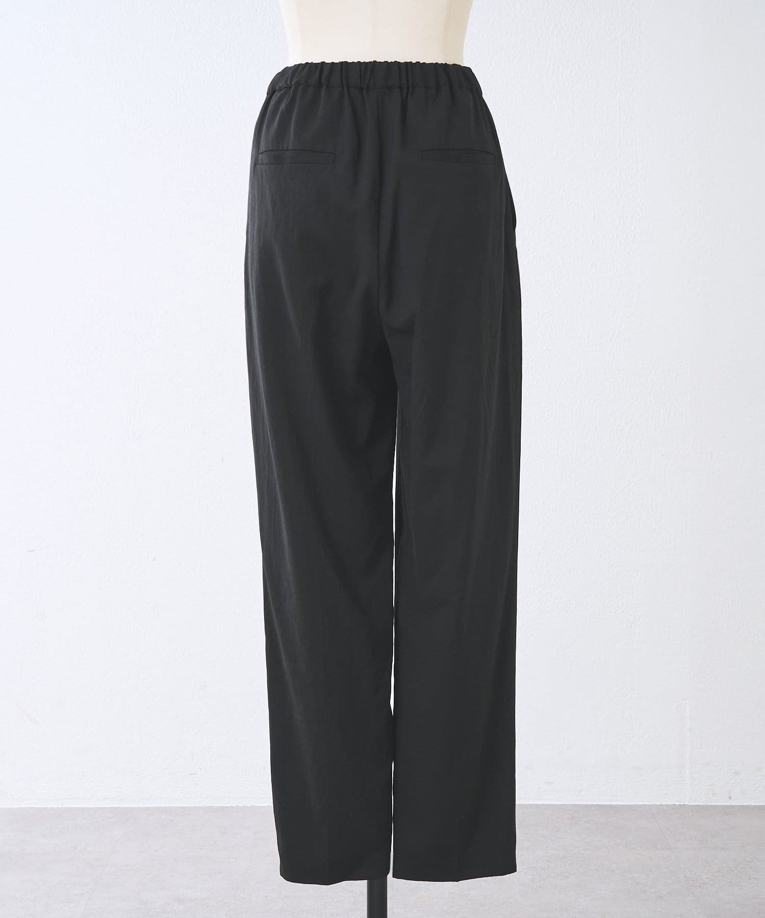 フロントタックが入ることで腰まわりには程よいゆとりをもたせ、ウエストはゴム仕様とストレスフリー履き心地です。