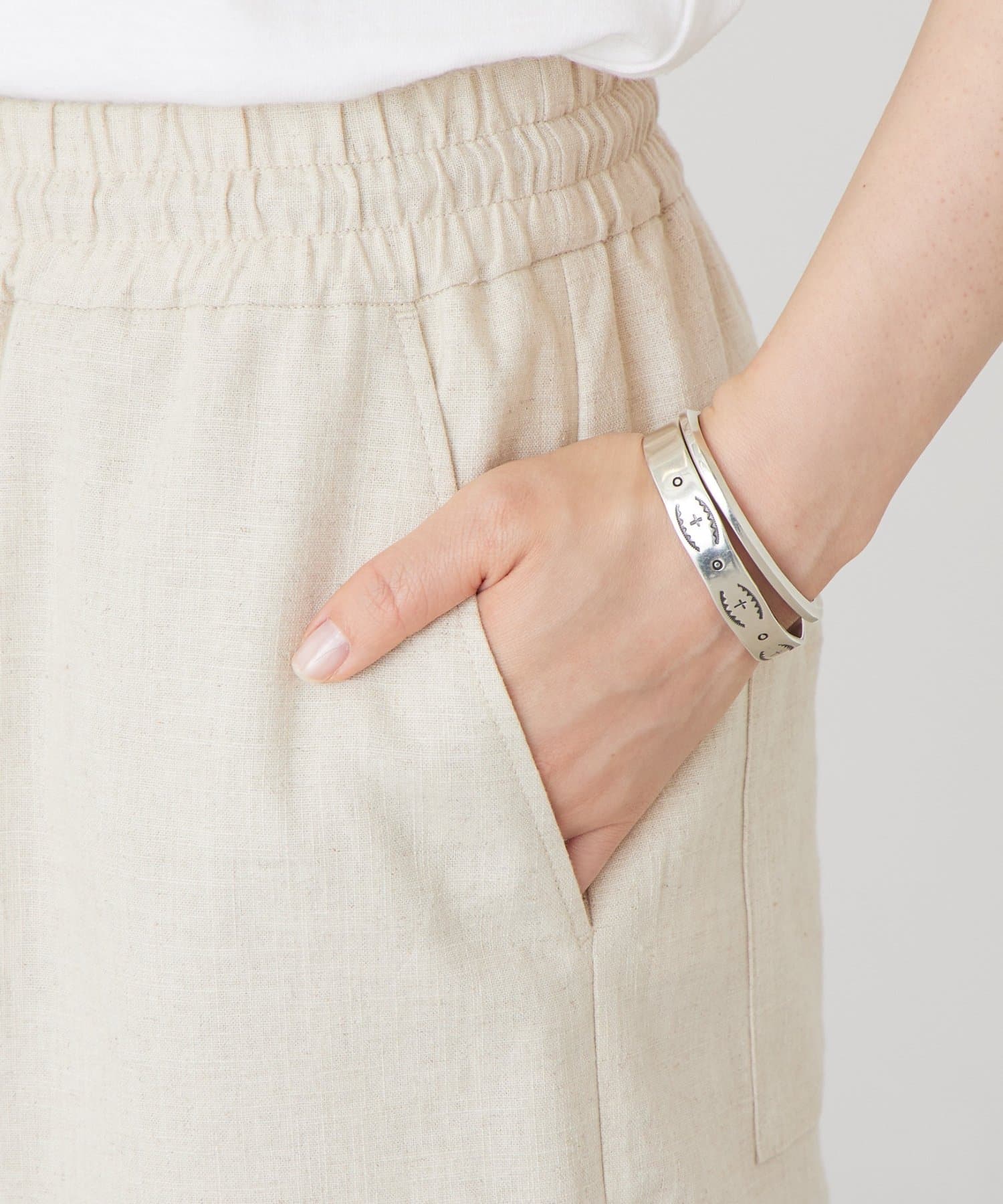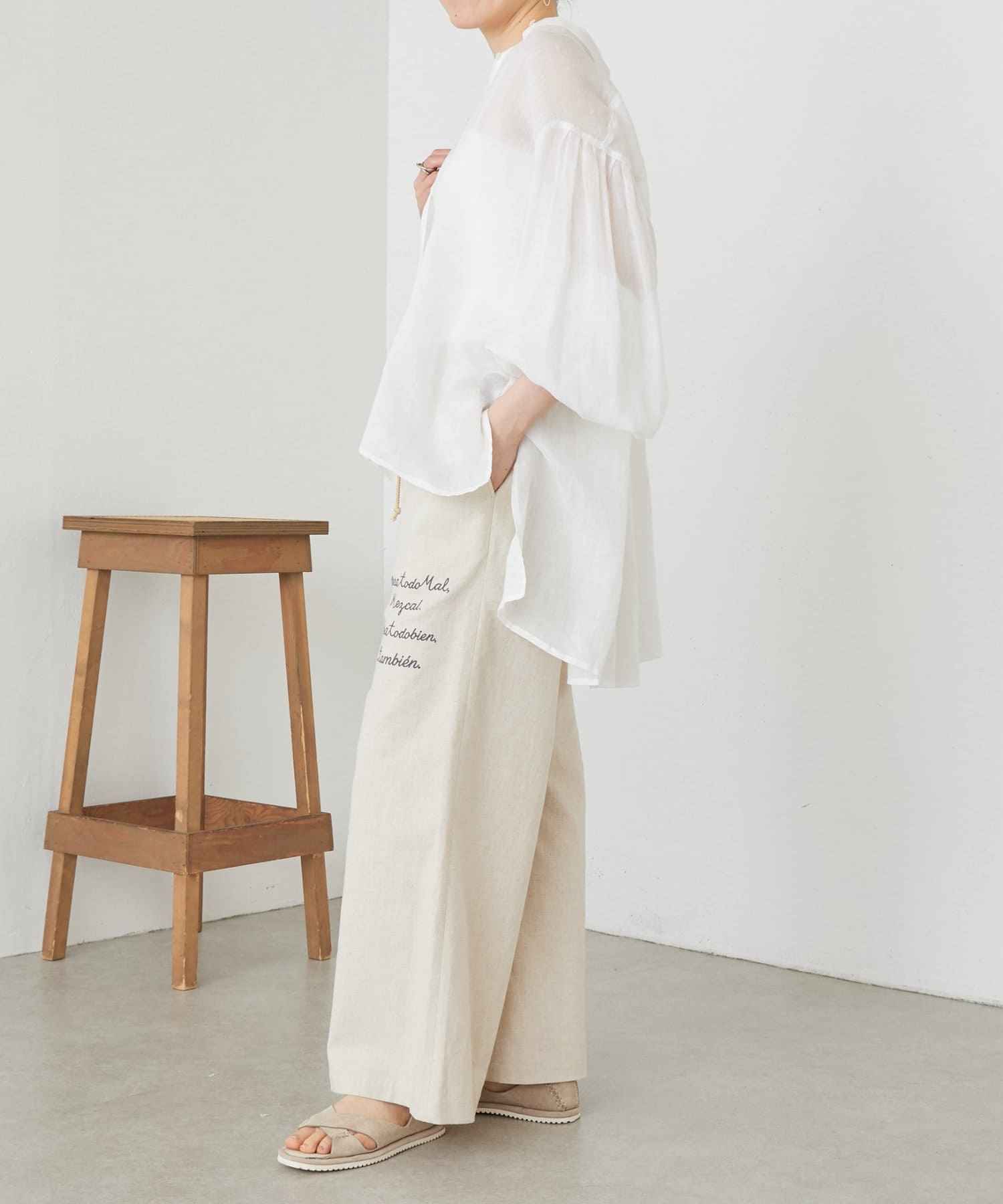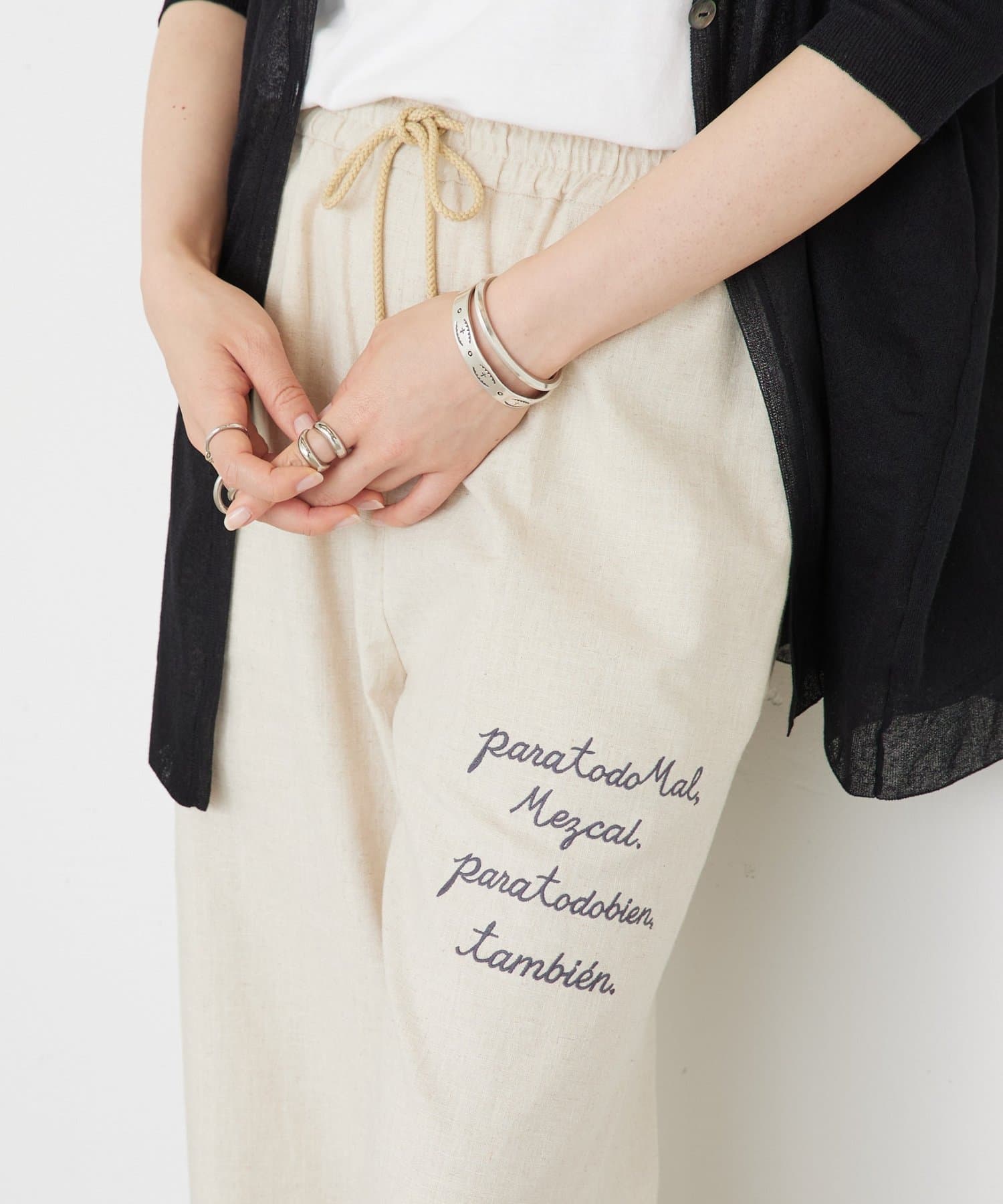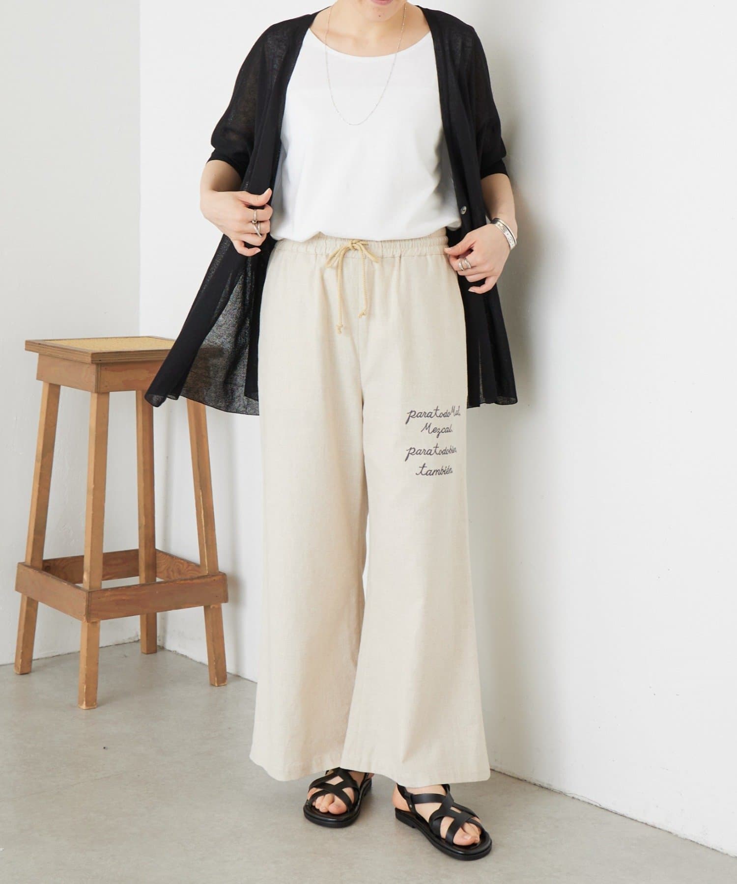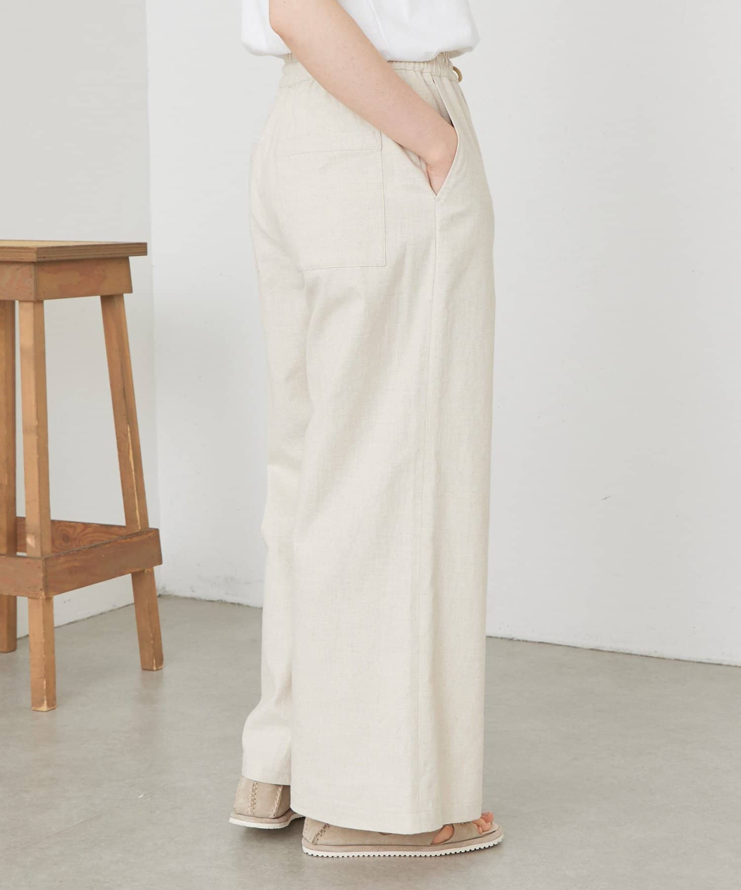 綿麻素材で汗ばむ季節も軽やかで快適な穿き心地をキープします。