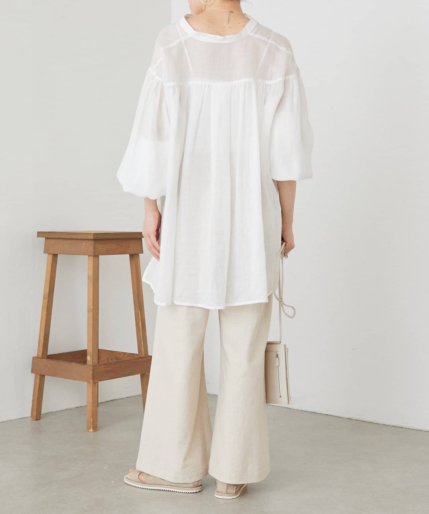 足のラインを拾わず、すとんと落ちるストレートシルエット。
