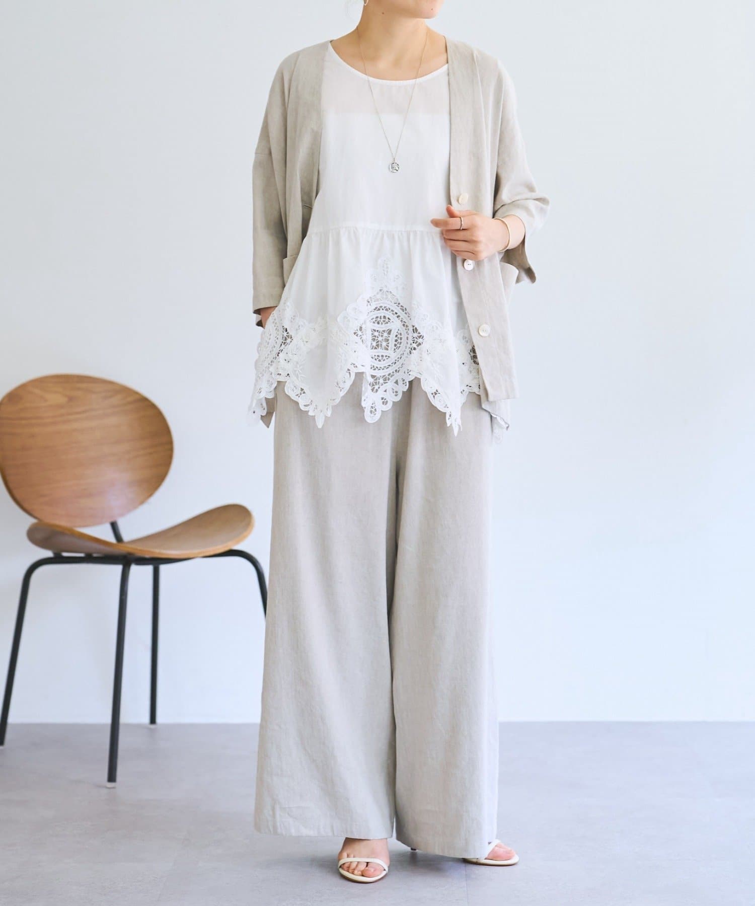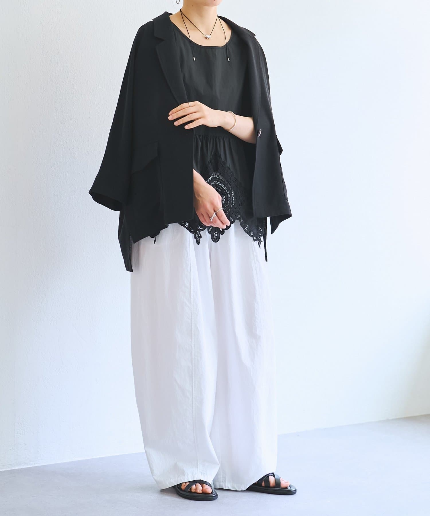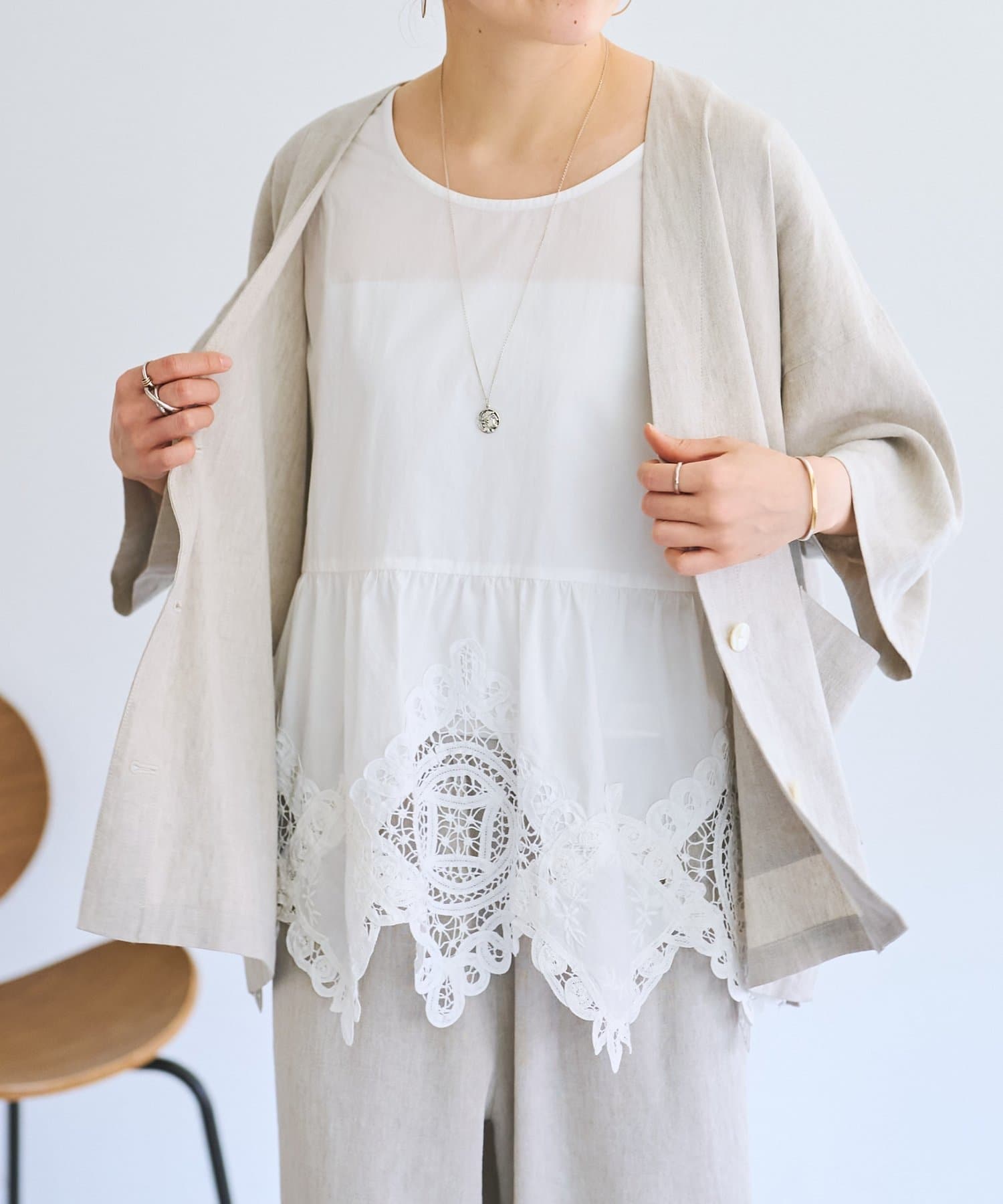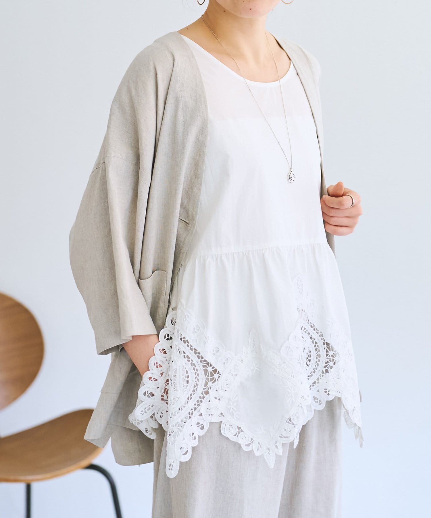 一枚で着るのはもちろん、レースを覗かせたレイヤードスタイルも楽しめます。