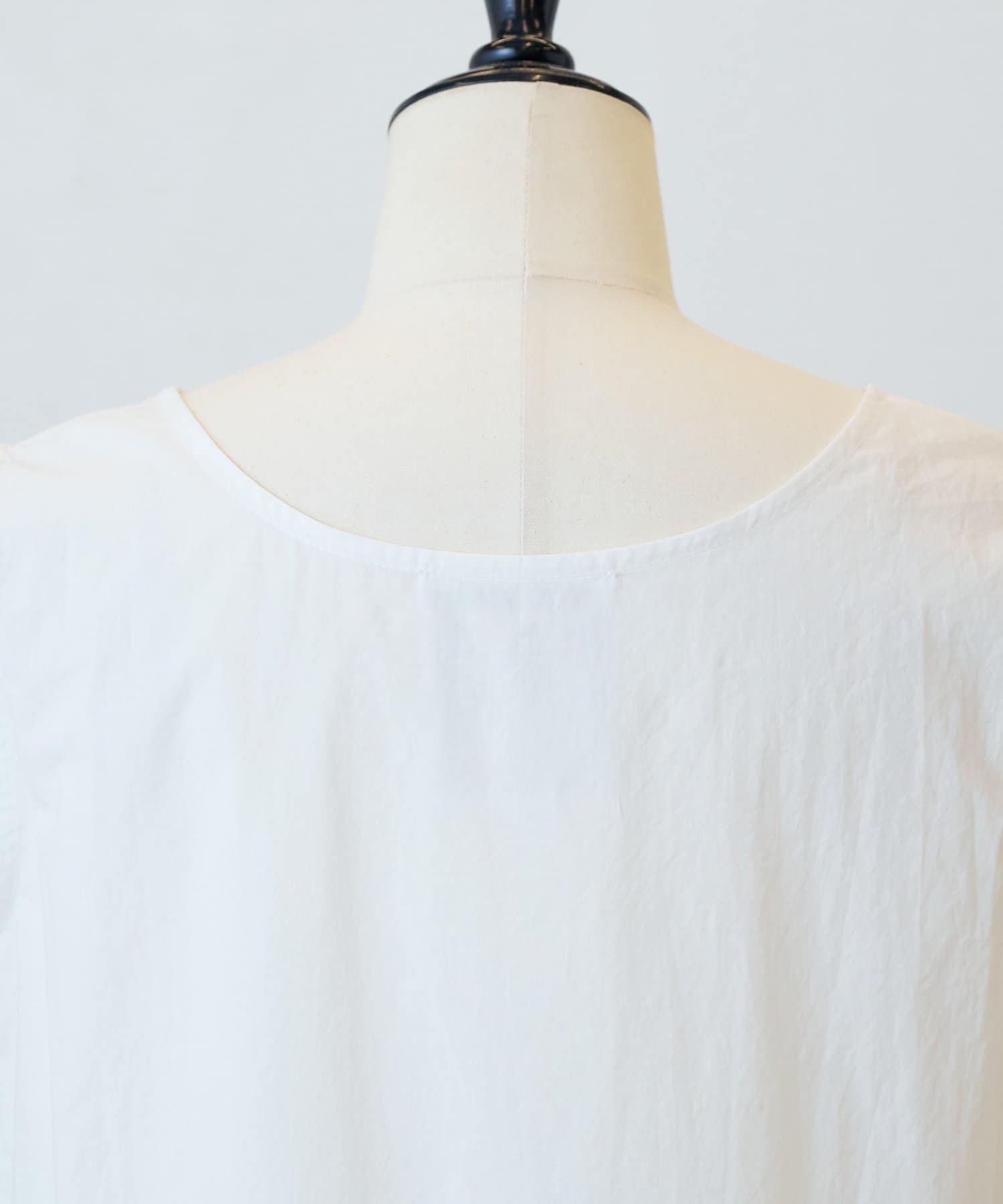 襟元はすっきりとしたボートネックで、デコルテをきれいに見せてくれるのもポイント。