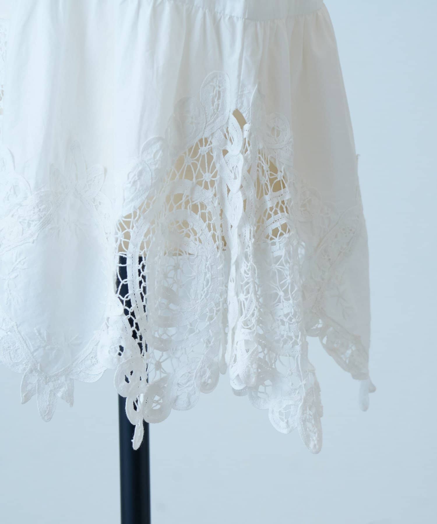 裾のレースがより引き立ち、女性らしい柔らかな印象を演出します。