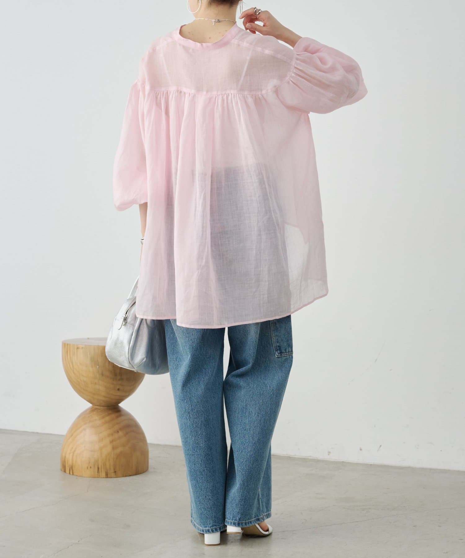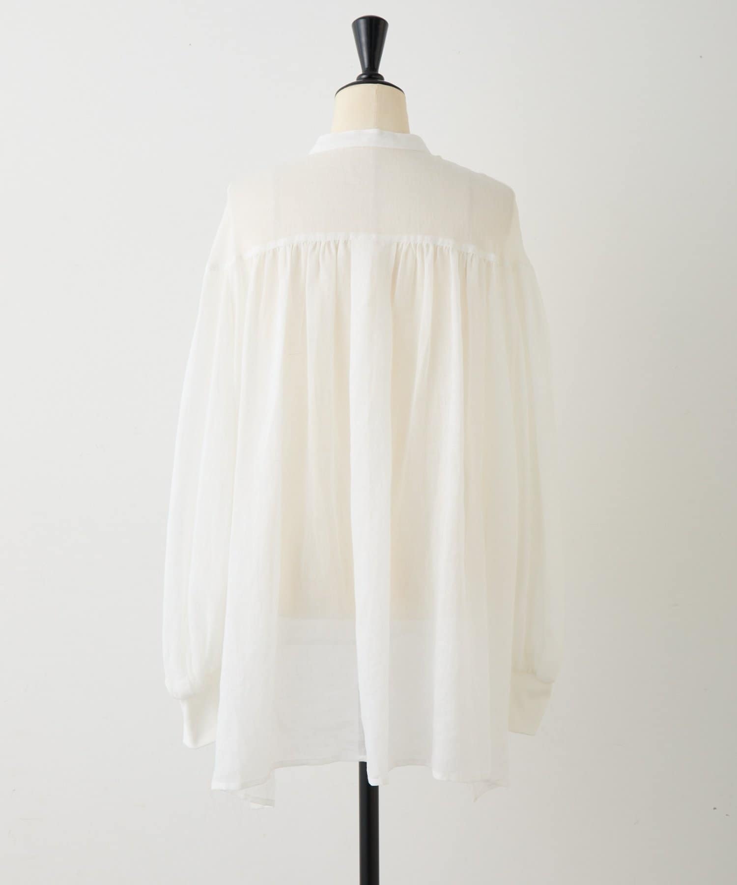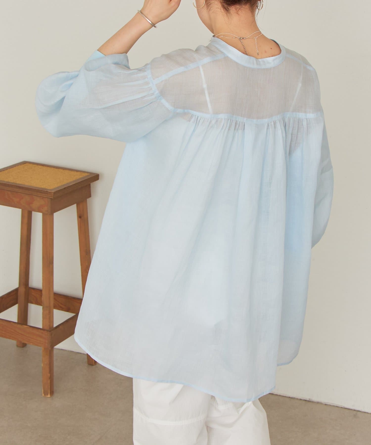ドロップショルダーと背中にはギャザーをたっぷりと寄せ、さらりと着るだけで様になる一枚です。