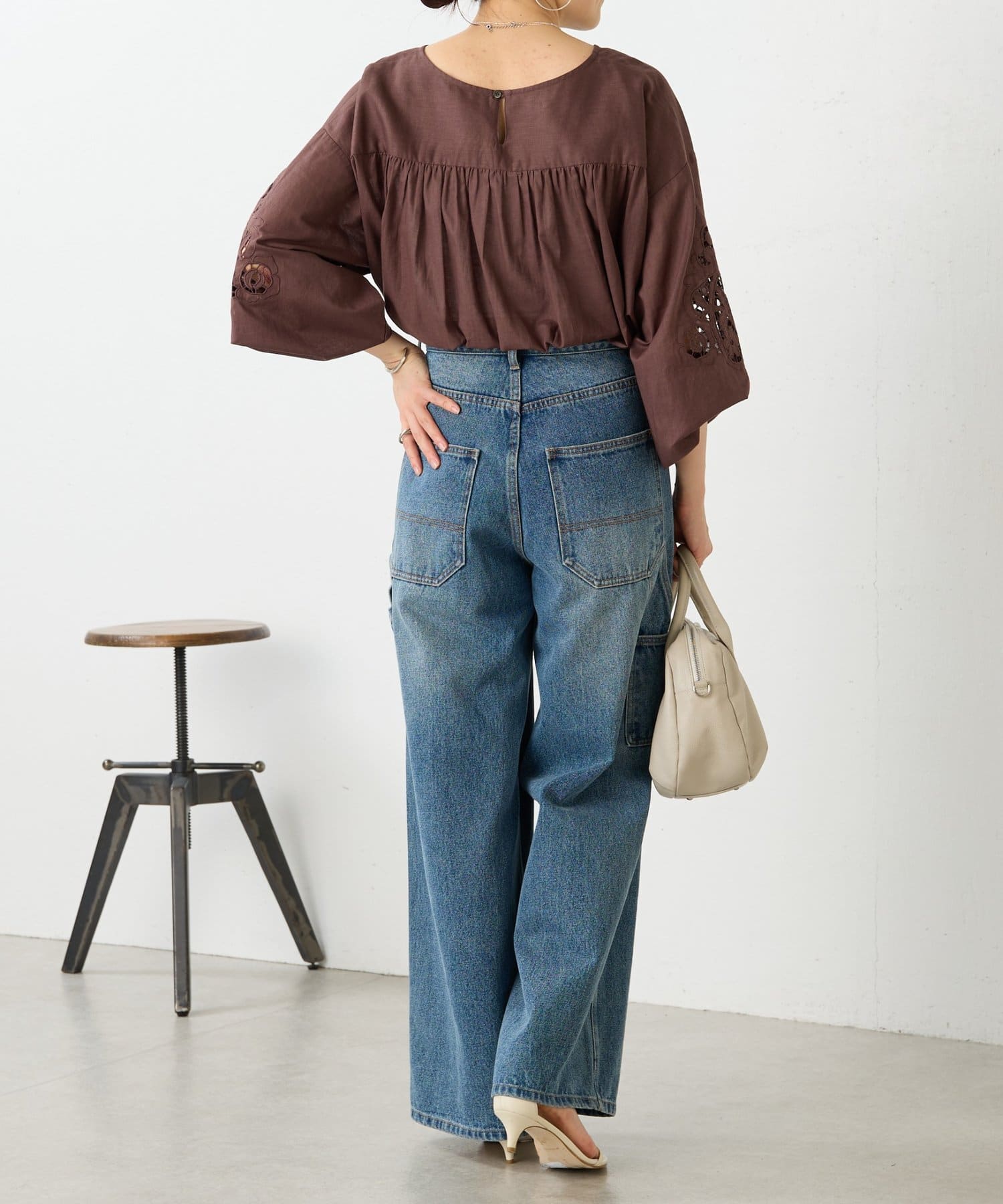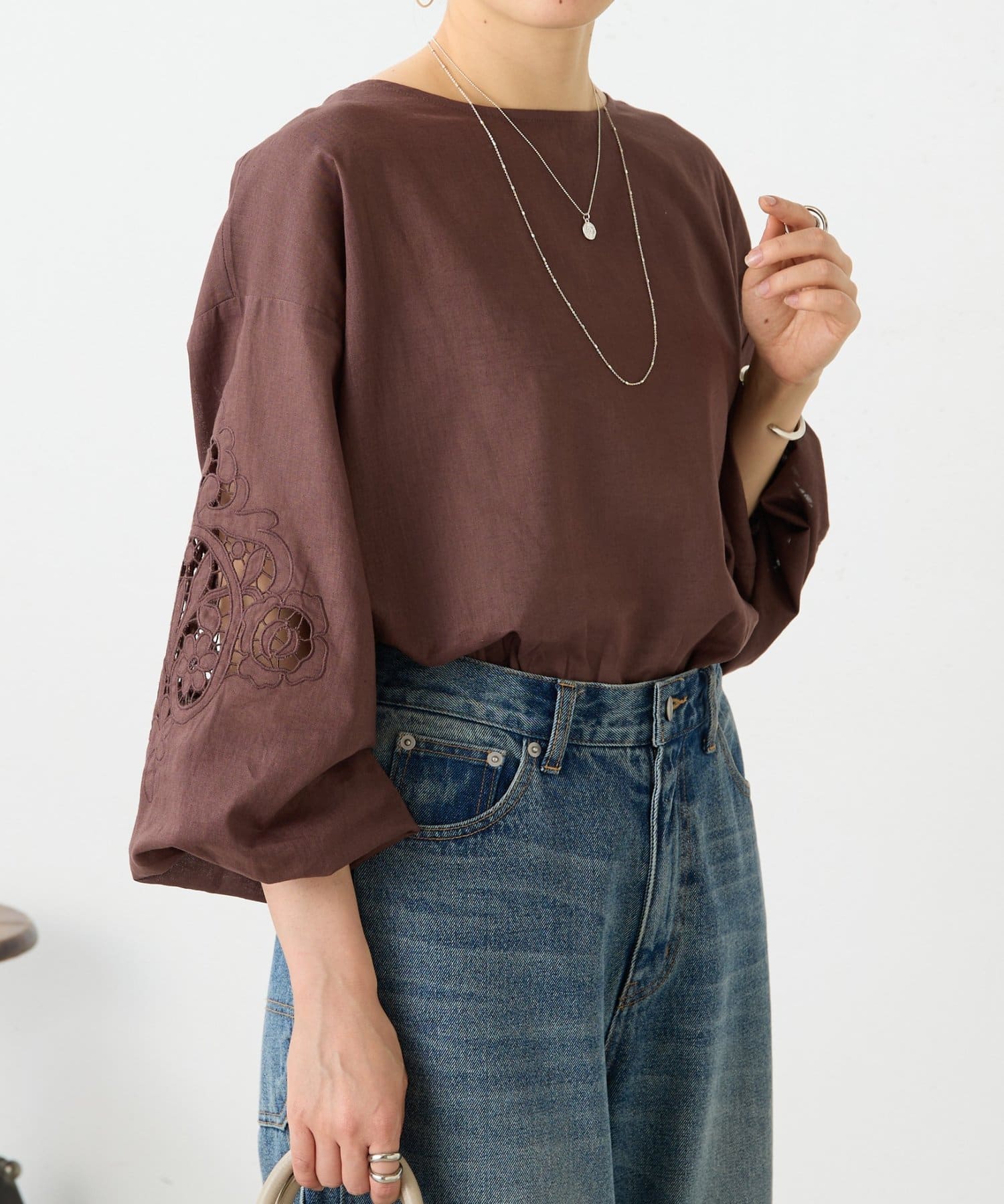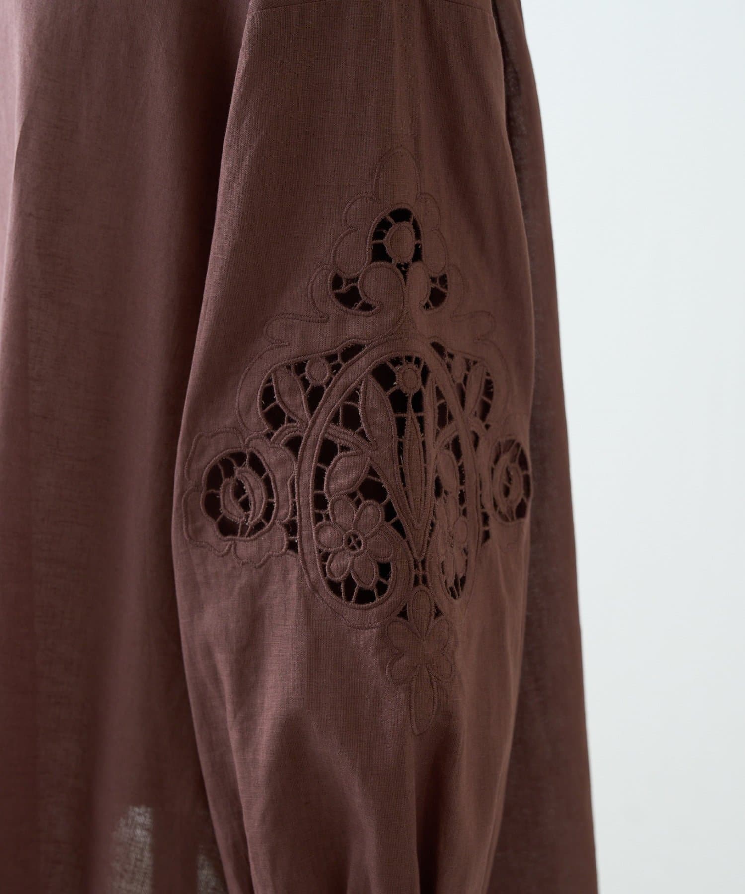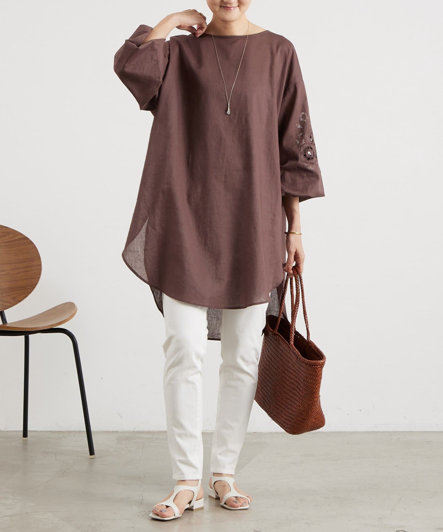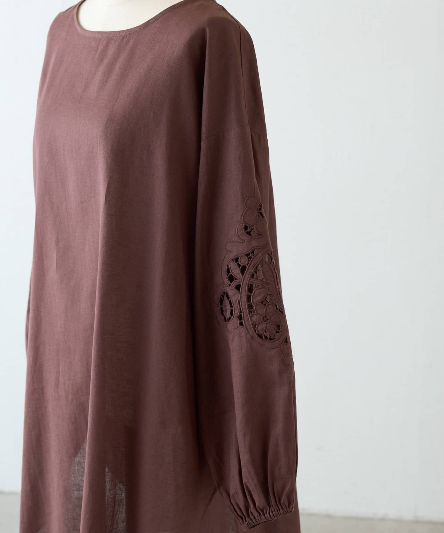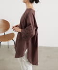 袖に施したカットワークデザインがアクセントになったシャツチュニック。