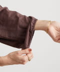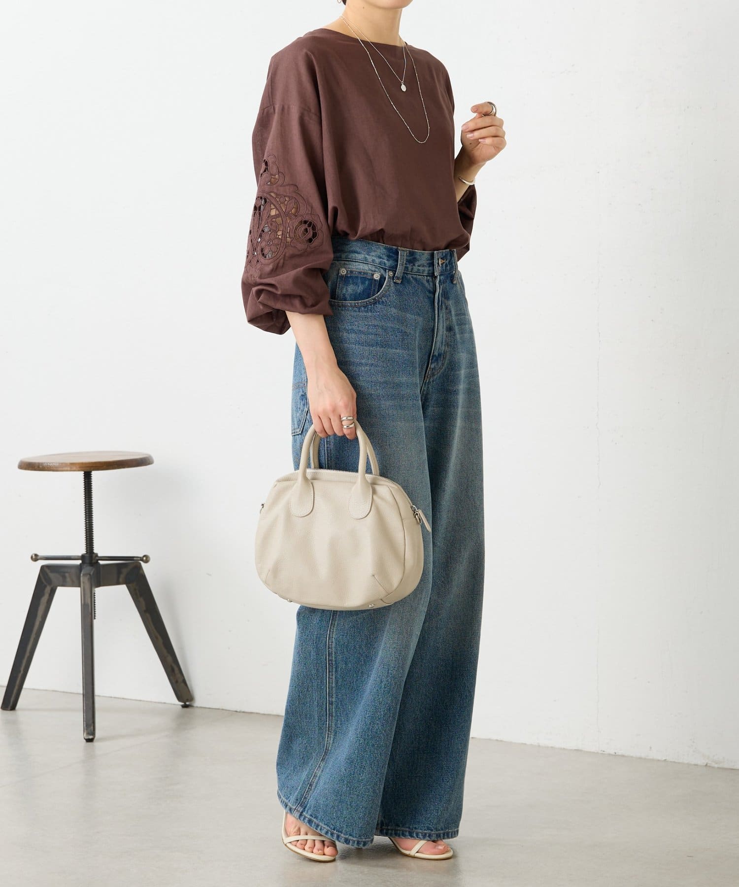 袖口ゴム仕様でたくしあげやすく、パフスリーブにしてシルエットの変化も楽しめるのもポイント。