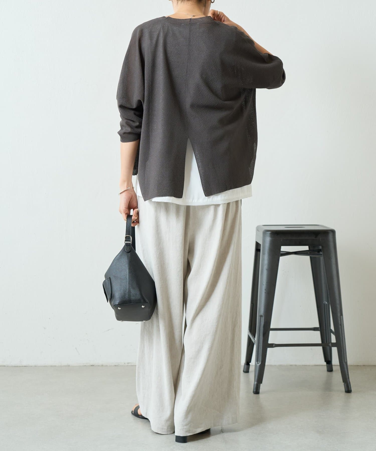 肩の位置を下げたゆったりシルエットなのでリラックスして着られます。