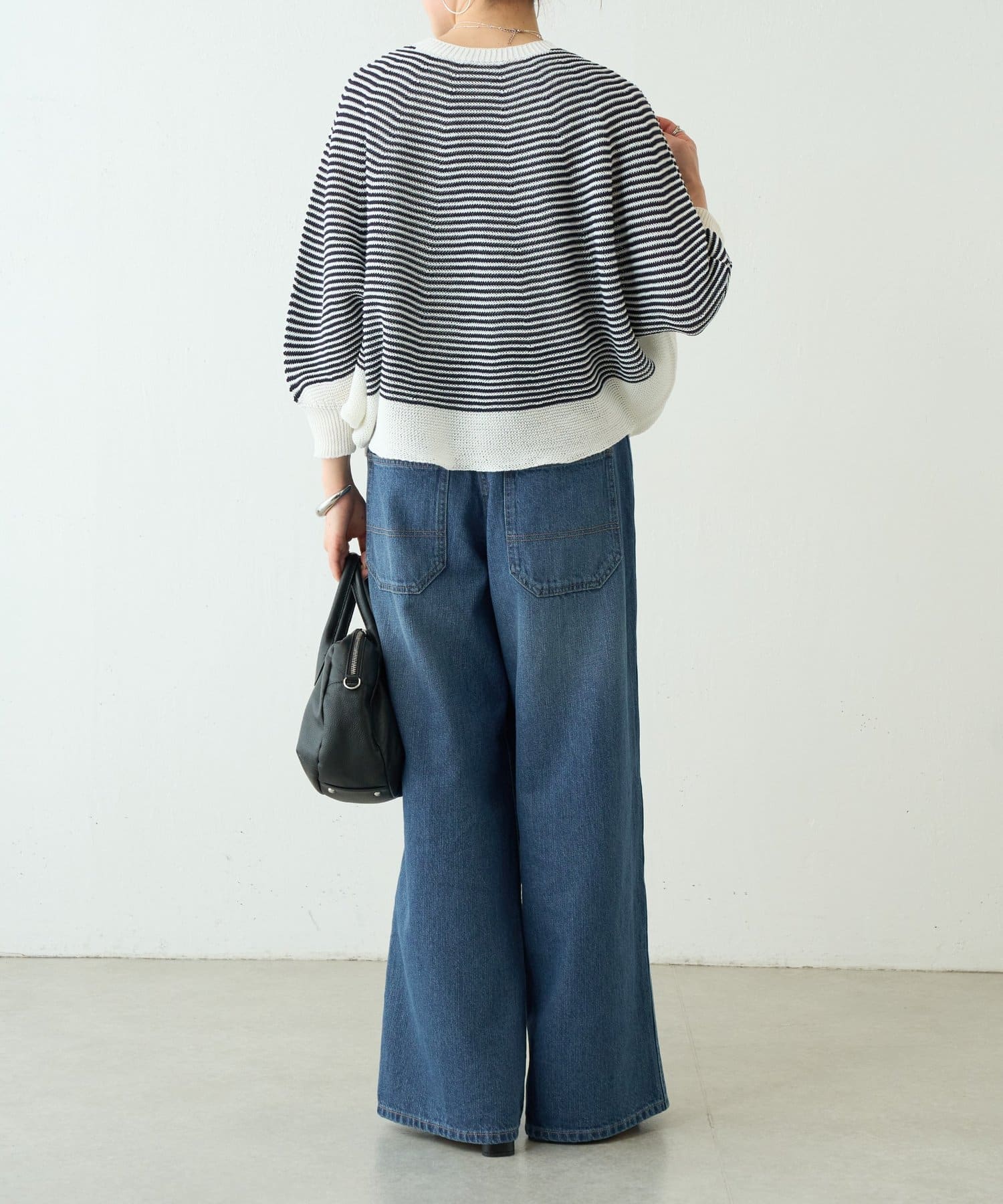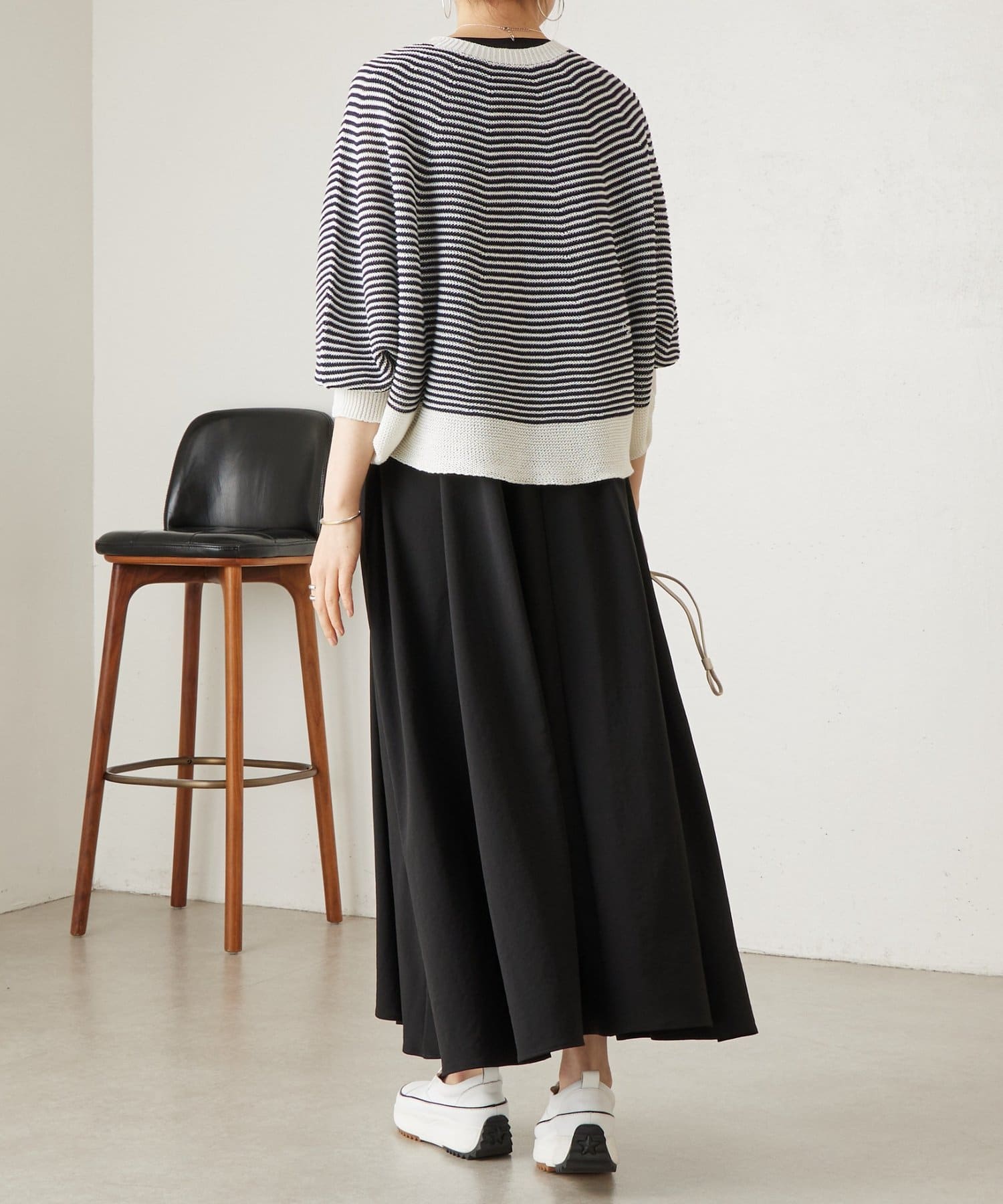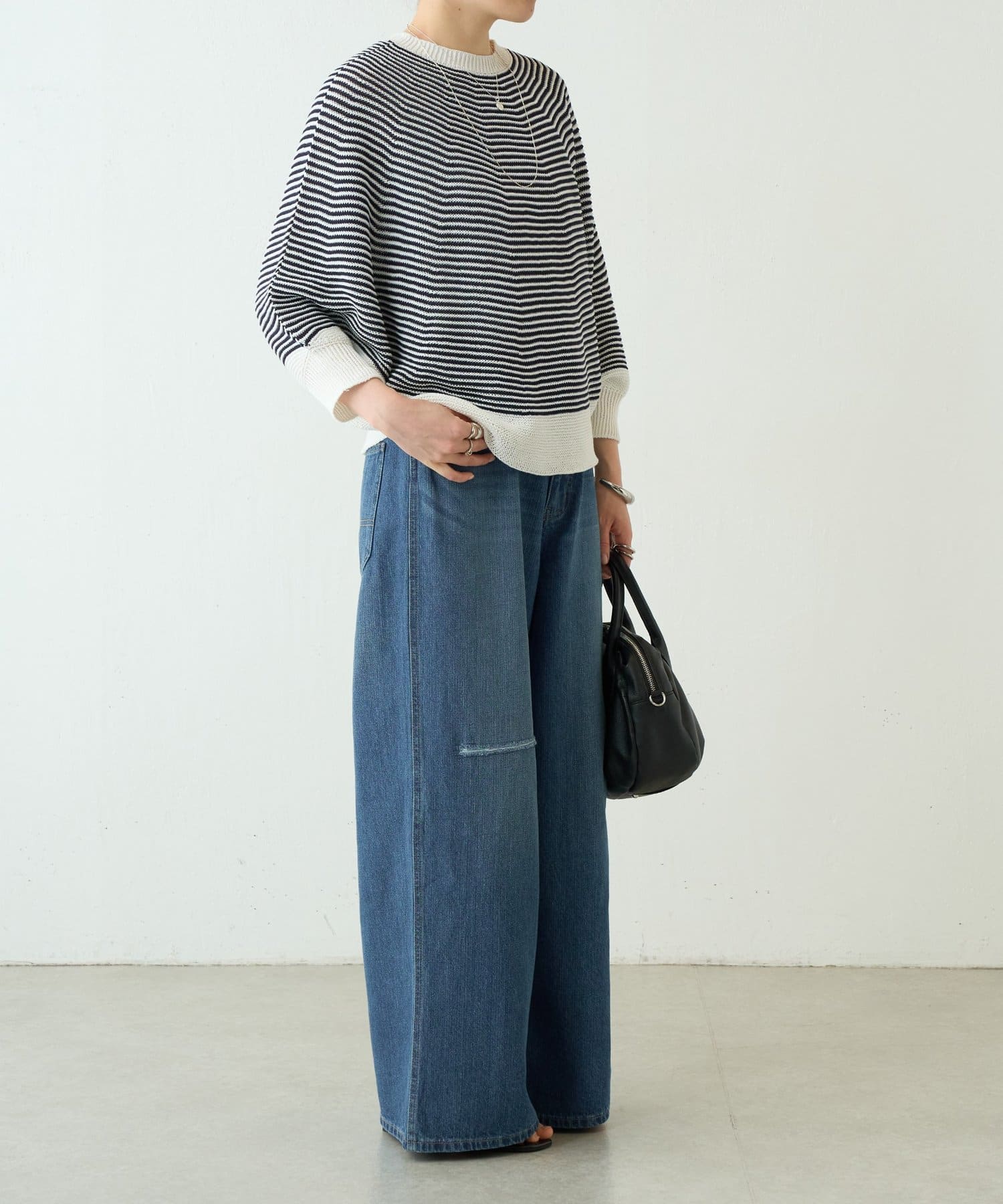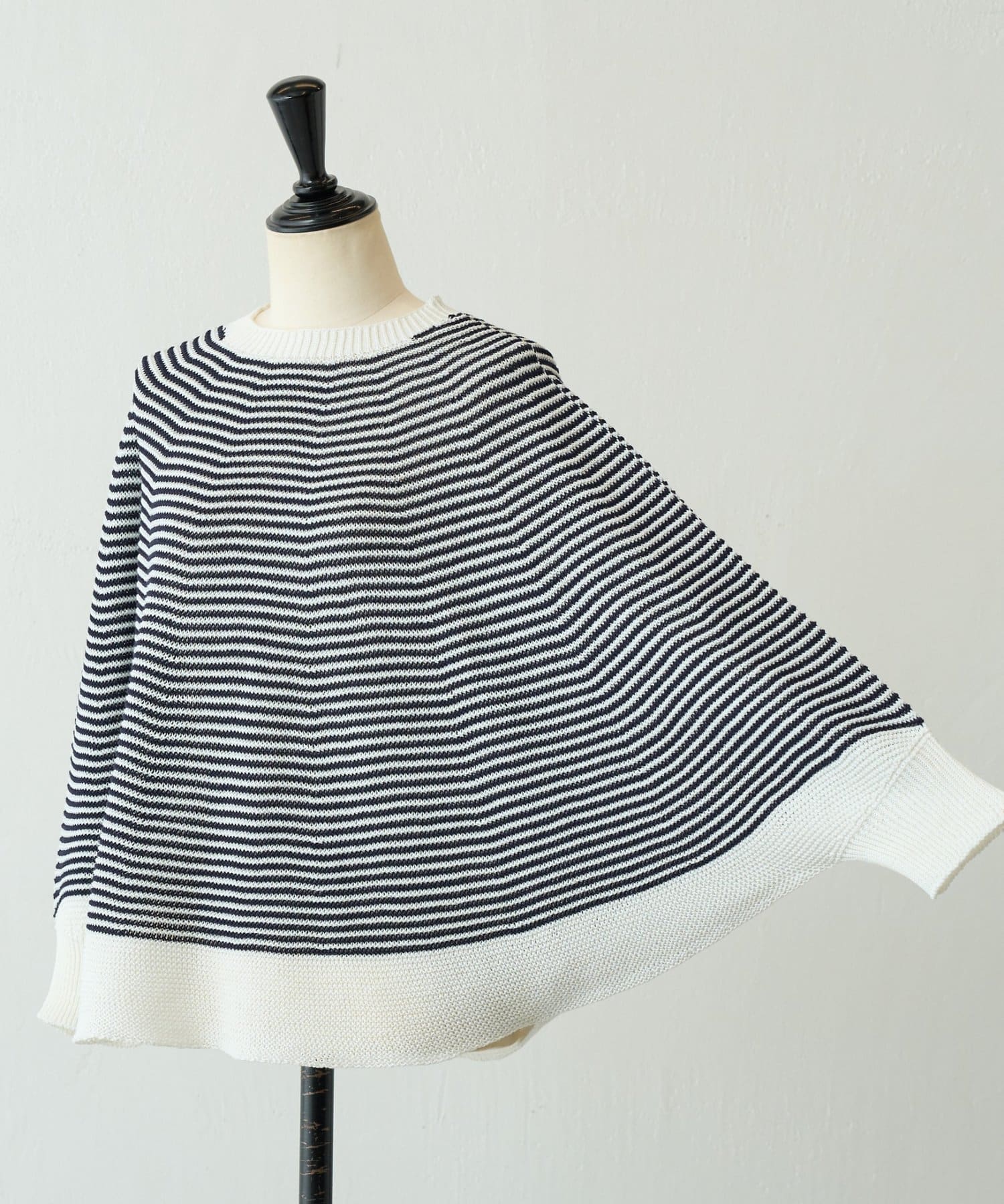 広げると円を描くような、丸みのあるフォルムが印象的なニット。