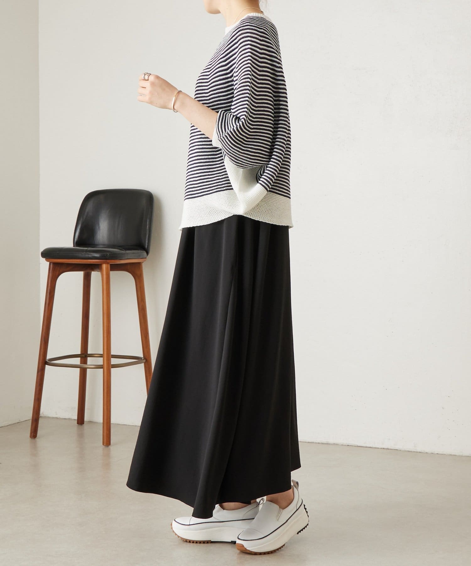 裾がラウンドカットになっているため、着るだけでバランスよく着こなせます。