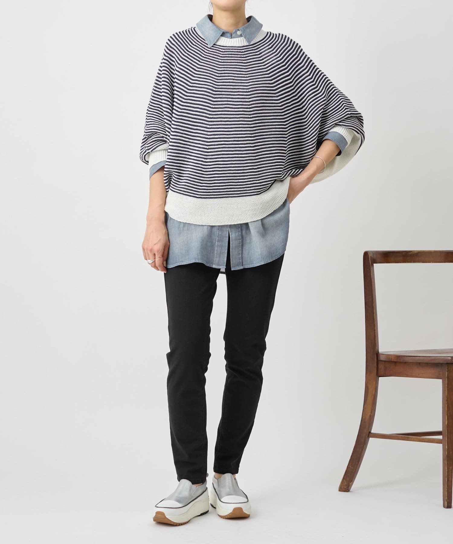 袖付きのデザインで、ポンチョ感覚でラフに着られるのも魅力。