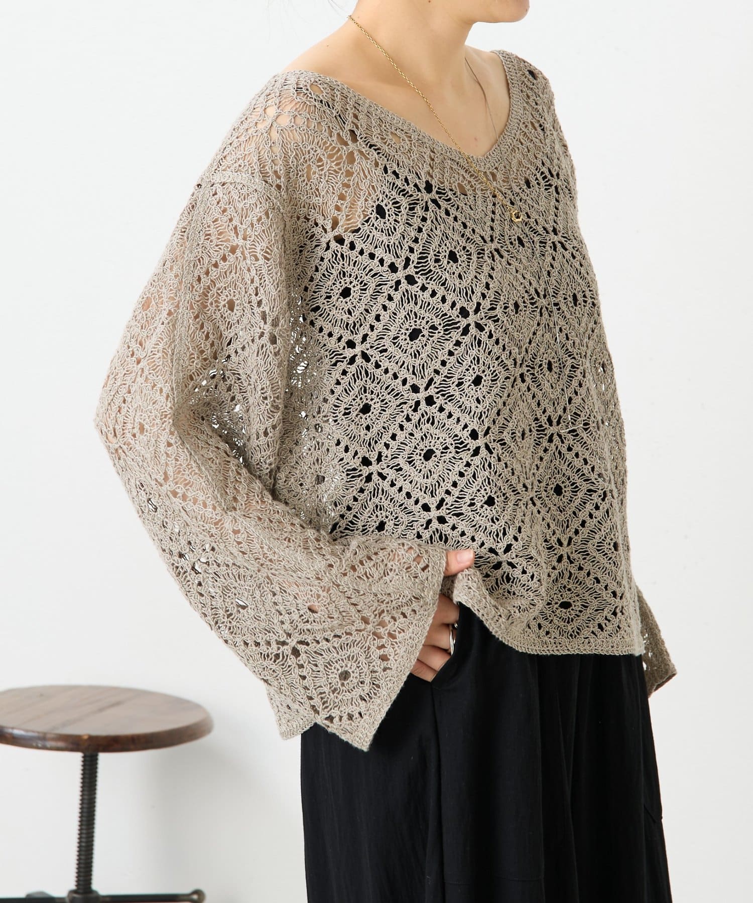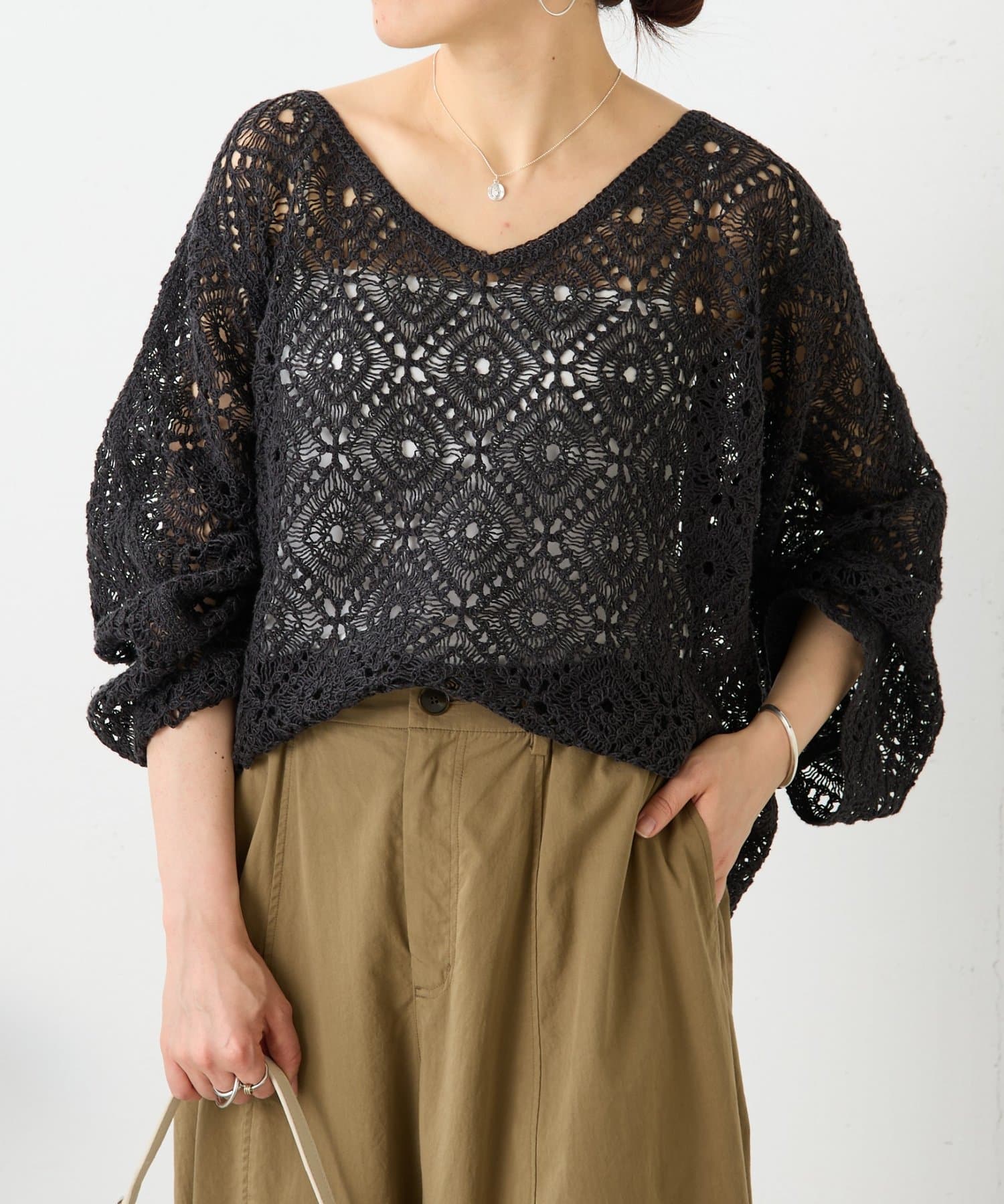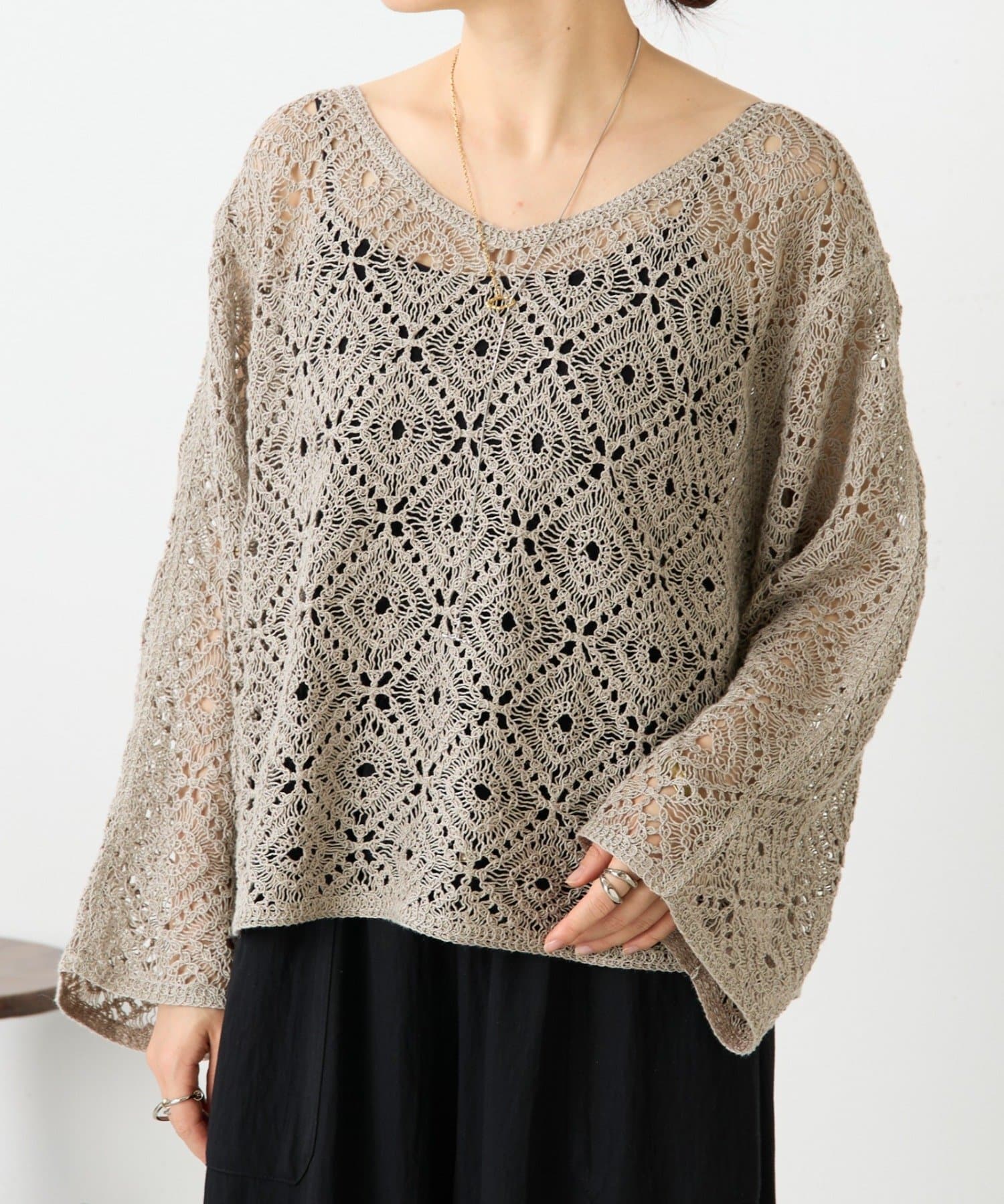 リネンレース編みニット