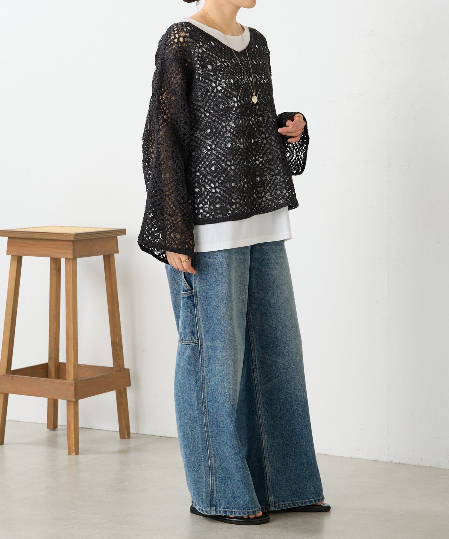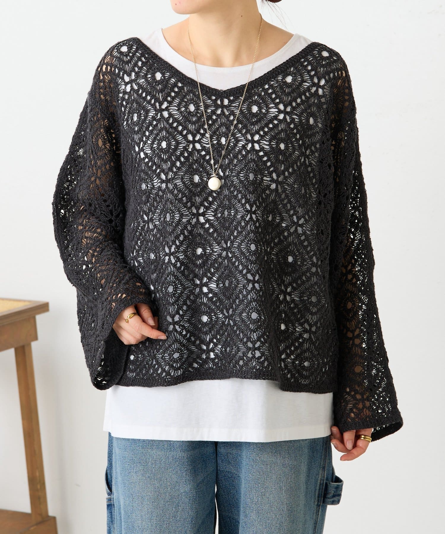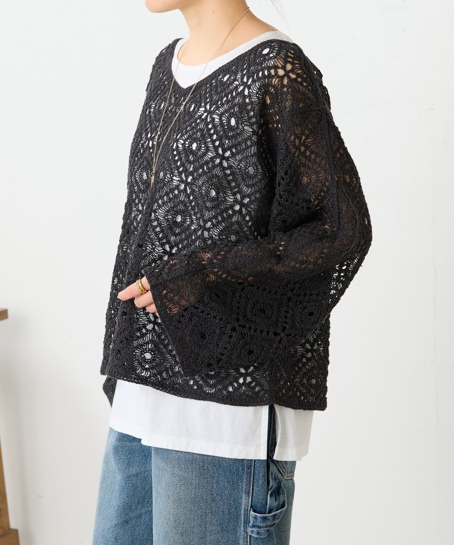 リネンレース編みニット