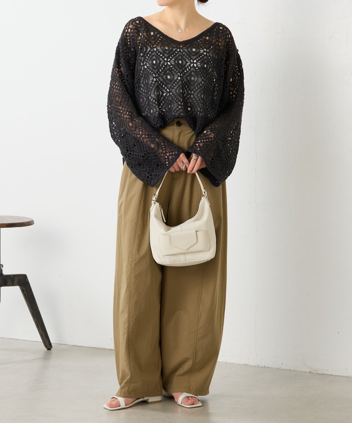 ゆったりとしたシルエットとボリュームのある袖が、リラックス感の中にもこなれた雰囲気を演出します。