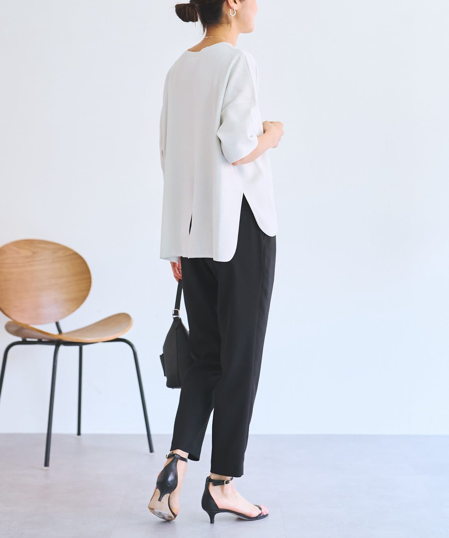 開きすぎないネックラインと程よくゆったりとしたシルエット。