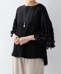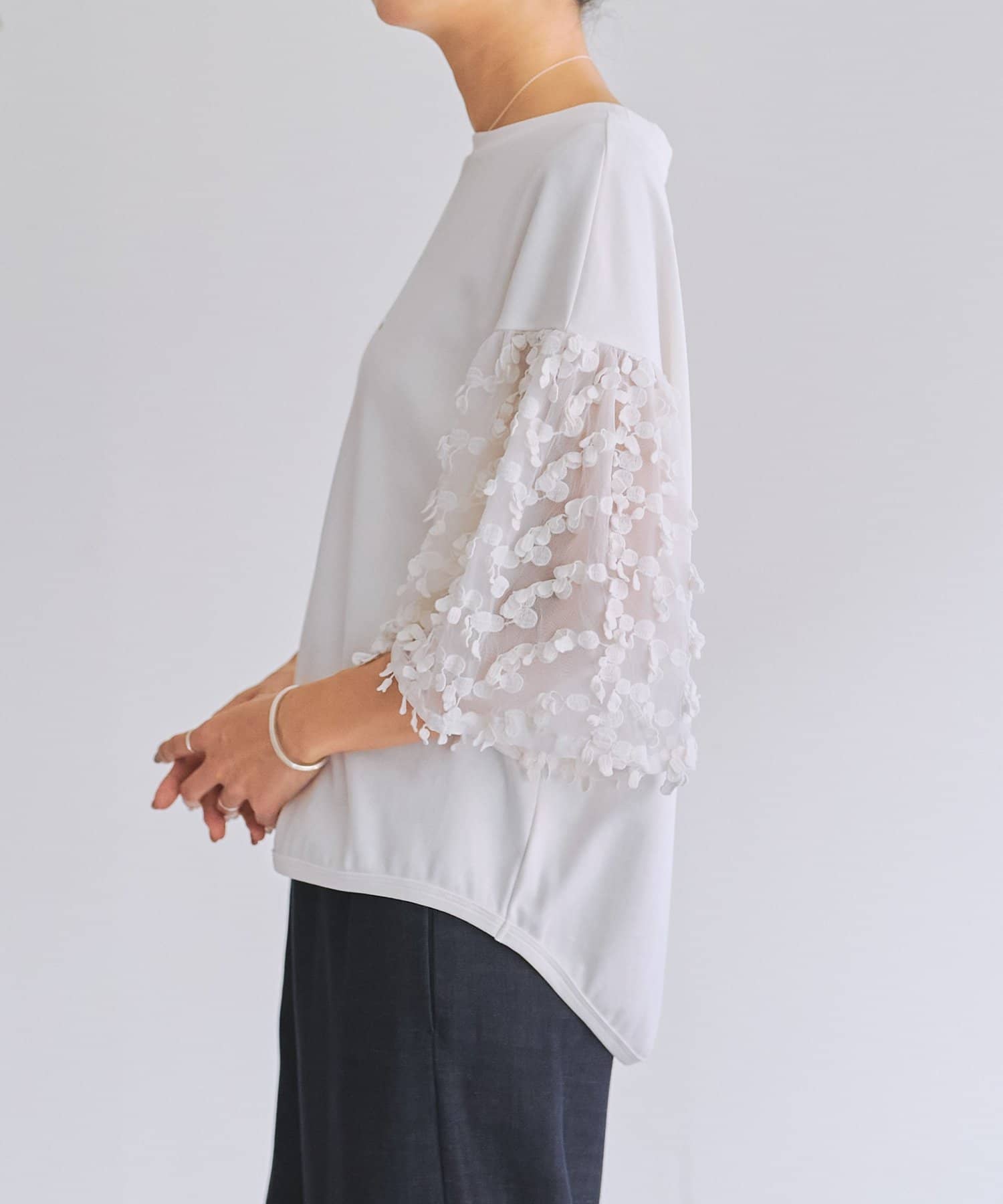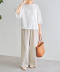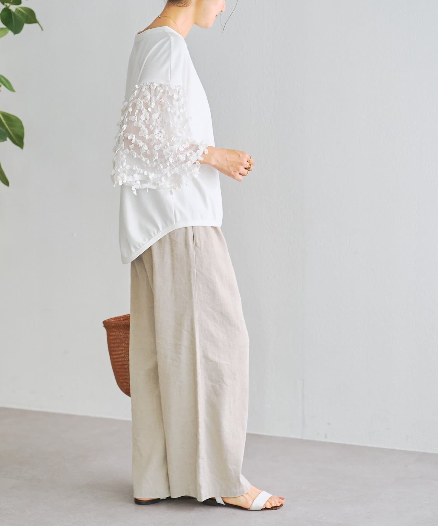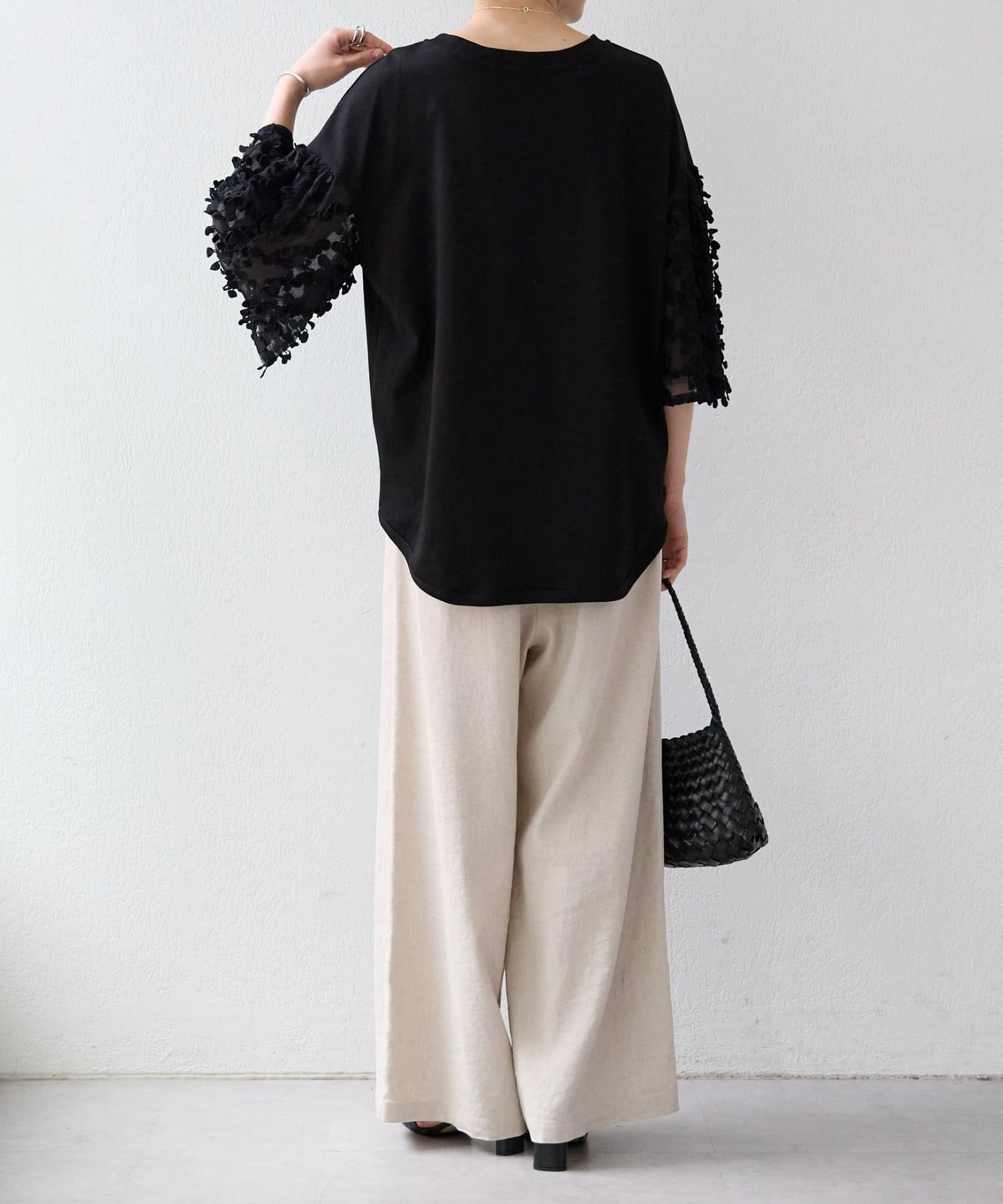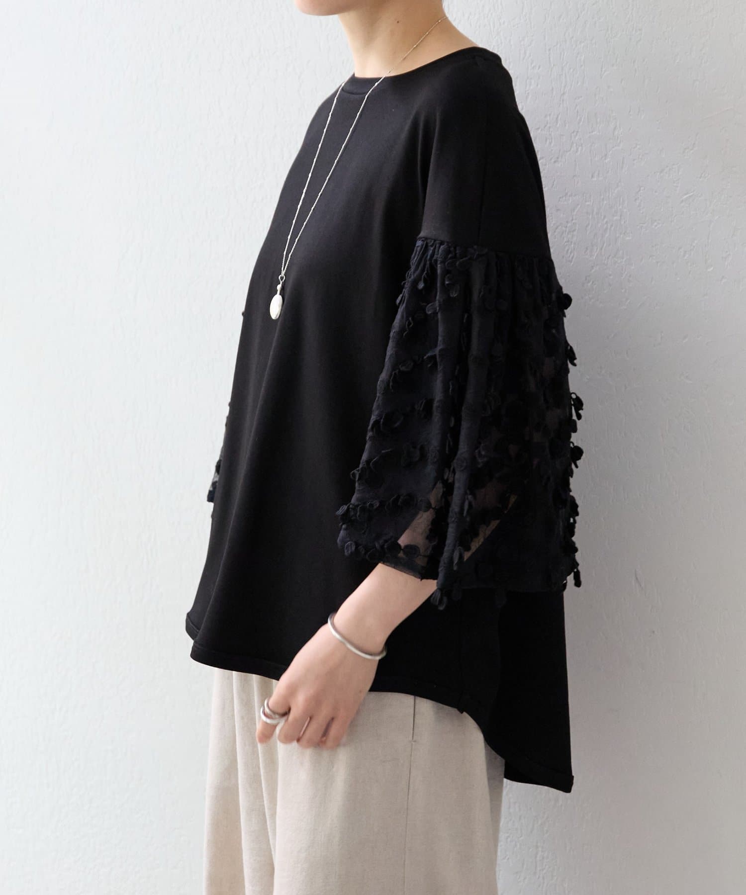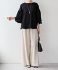 ベルスリーブのように広がる袖は、肘が隠れる安心感のある丈感で、さりげなく腕まわりをカバー。