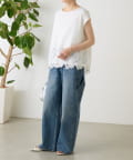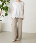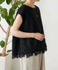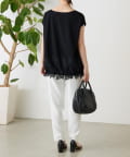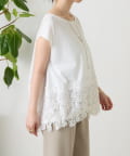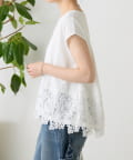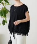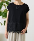 シンプルなトップスに、裾のレースがさりげなく映える一枚。