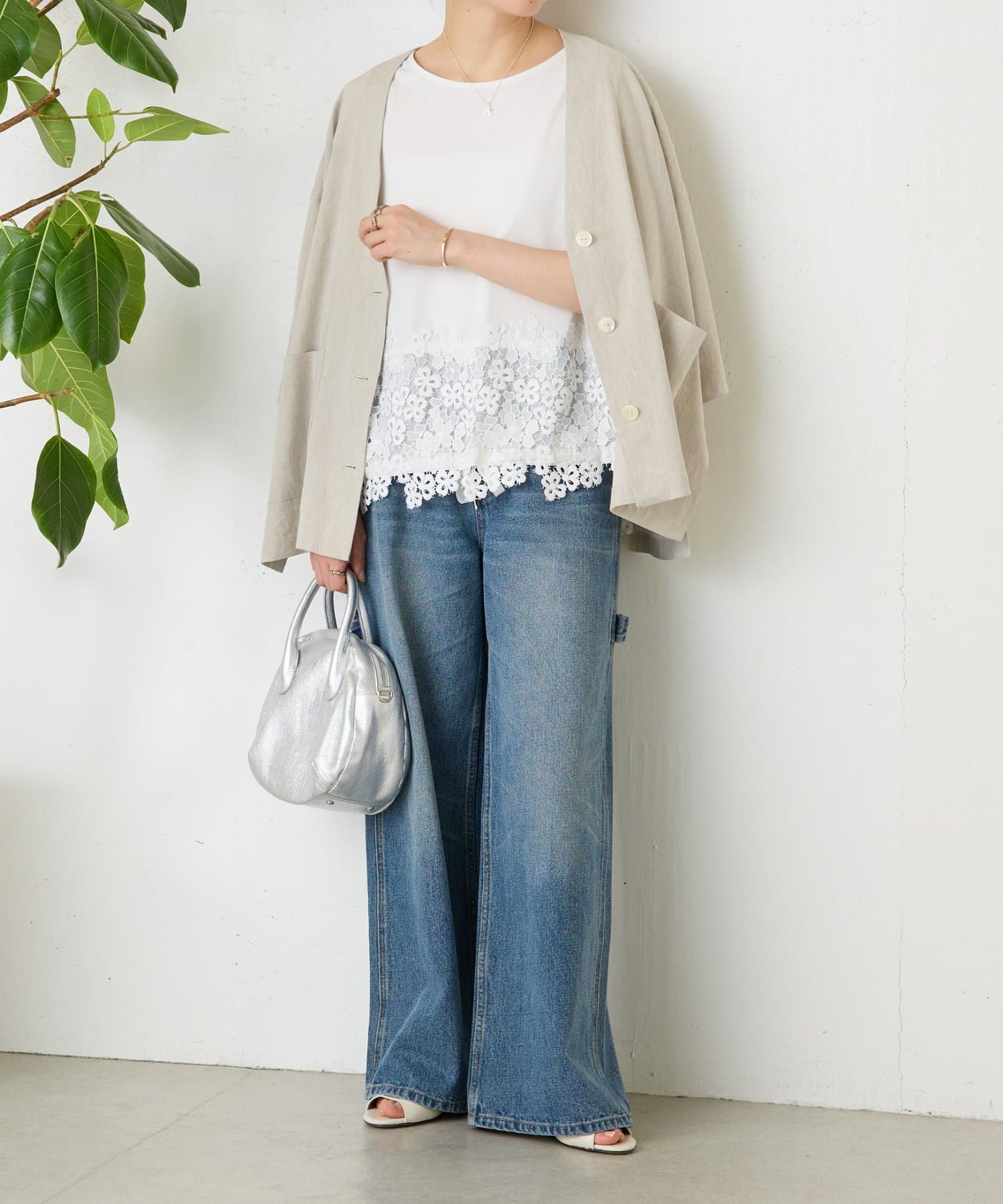 シンプルなトップスに、裾のレースがさりげなく映える一枚。