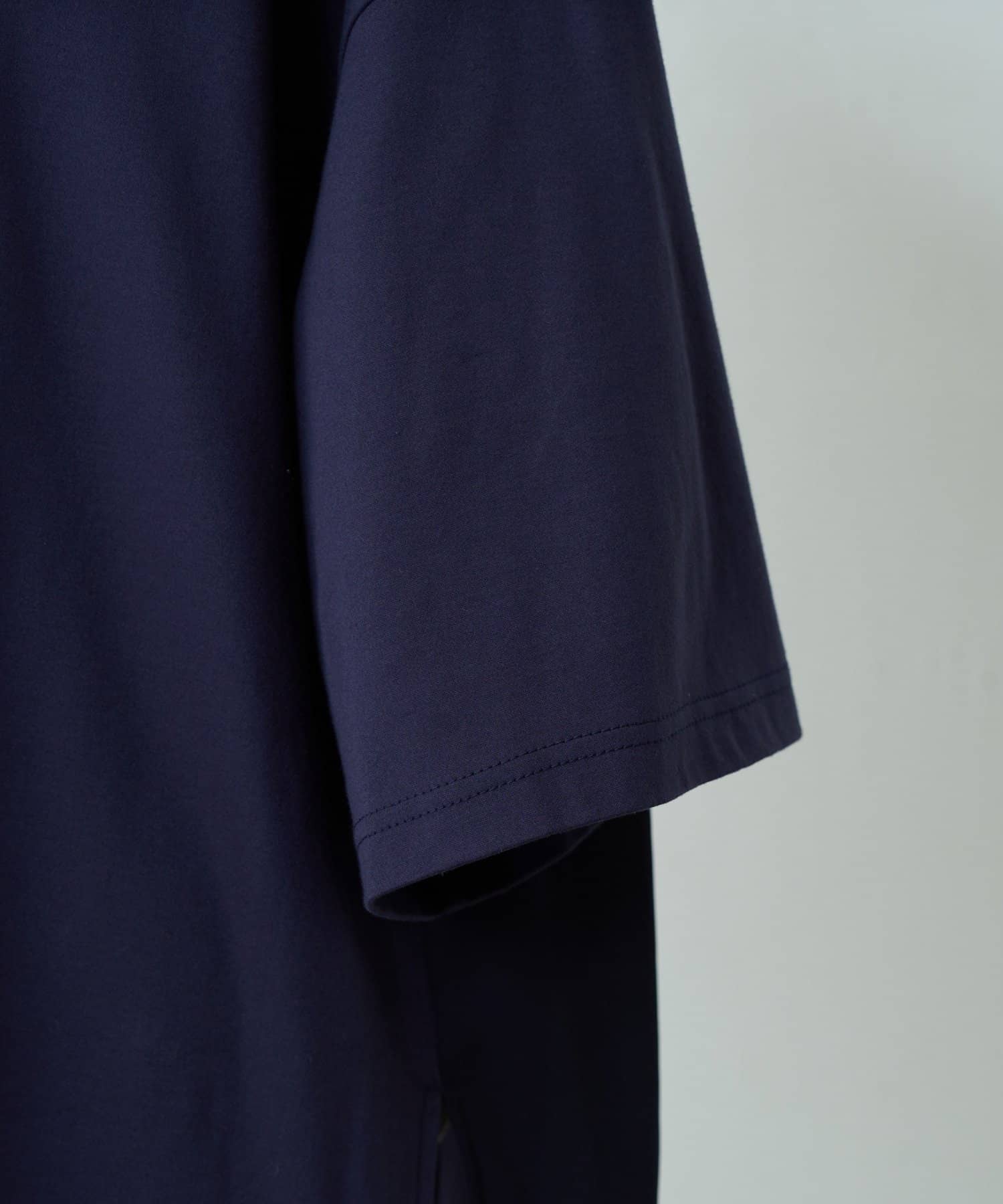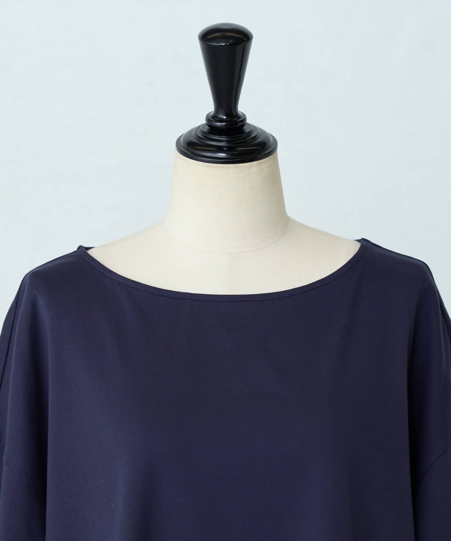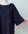 ドロップショルダーのゆったりとしたサイジングに、肘までしっかり隠れる五分袖で安心。