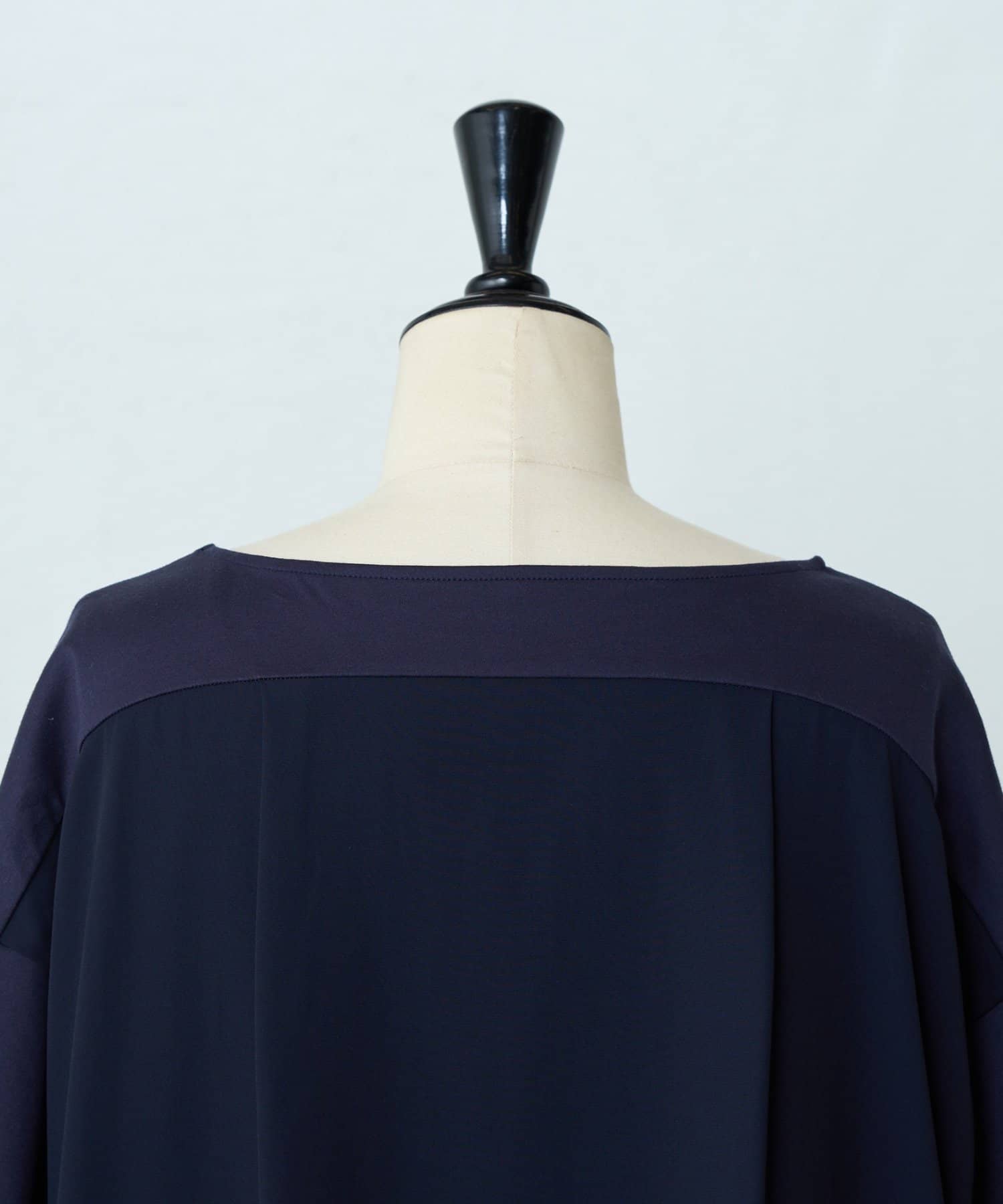 ボトルネックの襟元は、首周りをすっきりと華奢に見せてくれます。