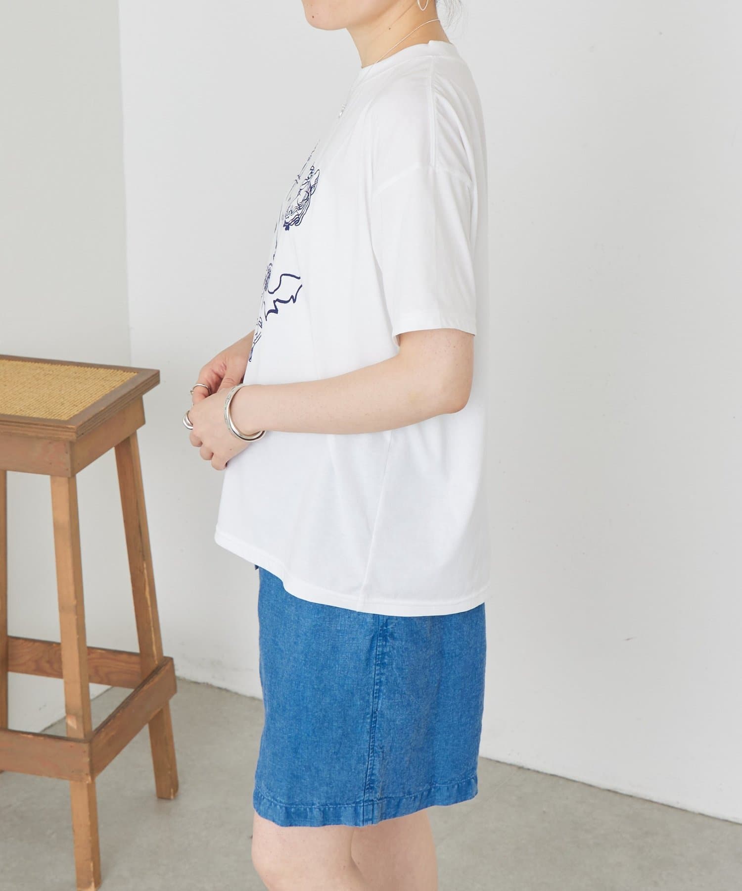 ジャケットやカーディガンのインナーとして合わせ、チラリとイラストを覗かせるのもおすすめです。